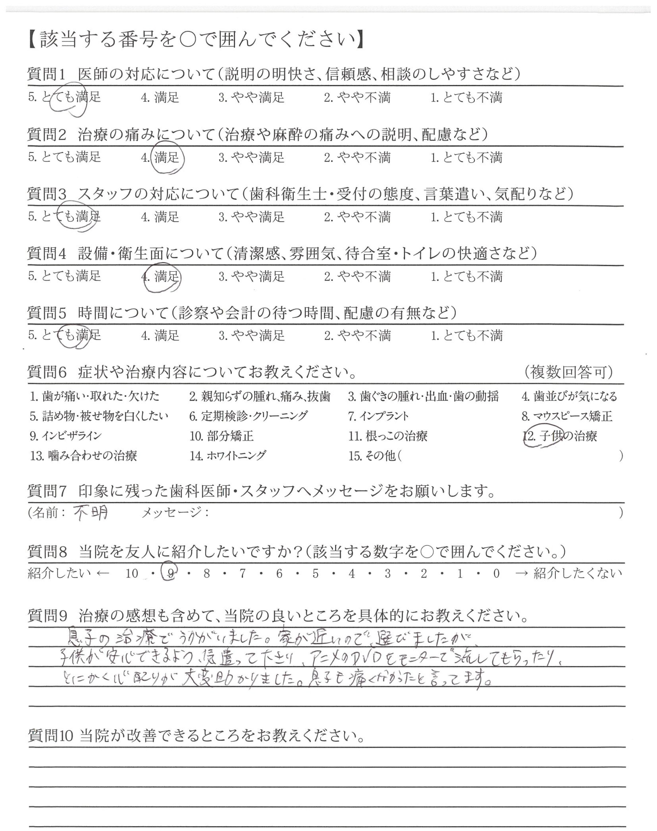 息子の治療でうかがいました。家が近いので選びましたが、子供が安心できるよう気遣って下さり、アニメのDVDをモニターで流してもらったり、とにかく心配りが大変助かりました。息子も痛くなかったと言ってます。