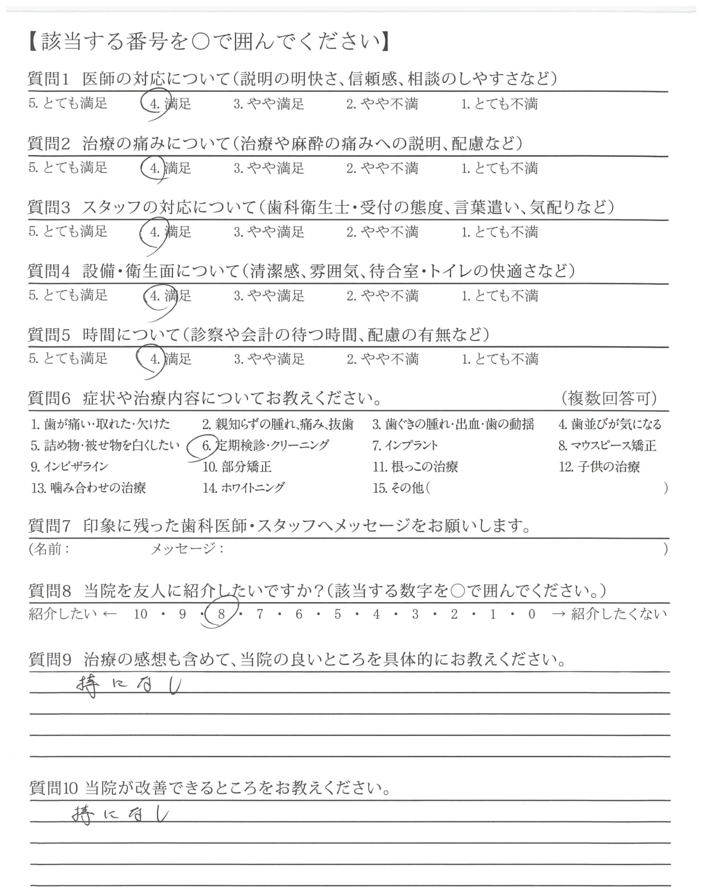 | 治療の痛みへの配慮 | ![]() ![]() ![]() ![]() 4.67 |