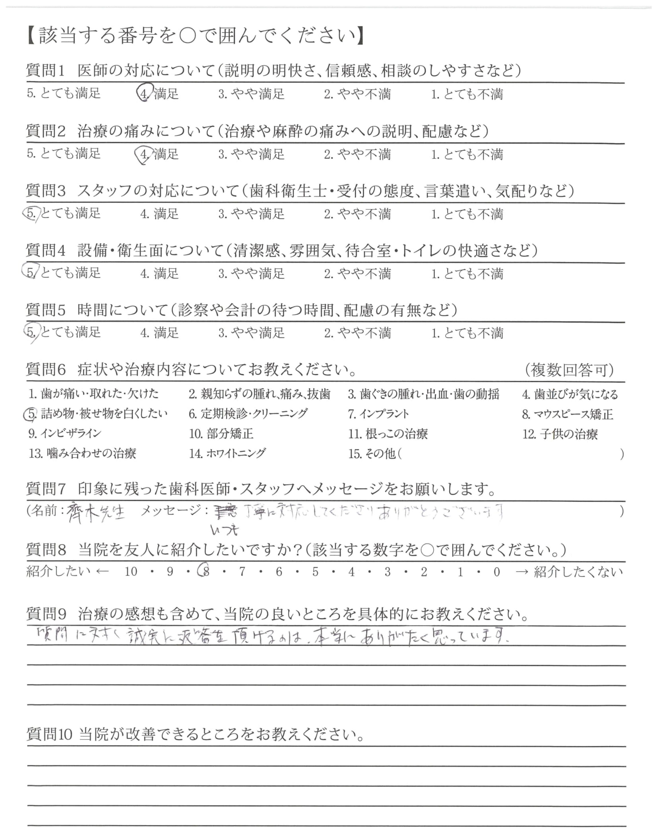 | 治療の痛みへの配慮 | ![]() ![]() ![]() ![]() 4.67 |