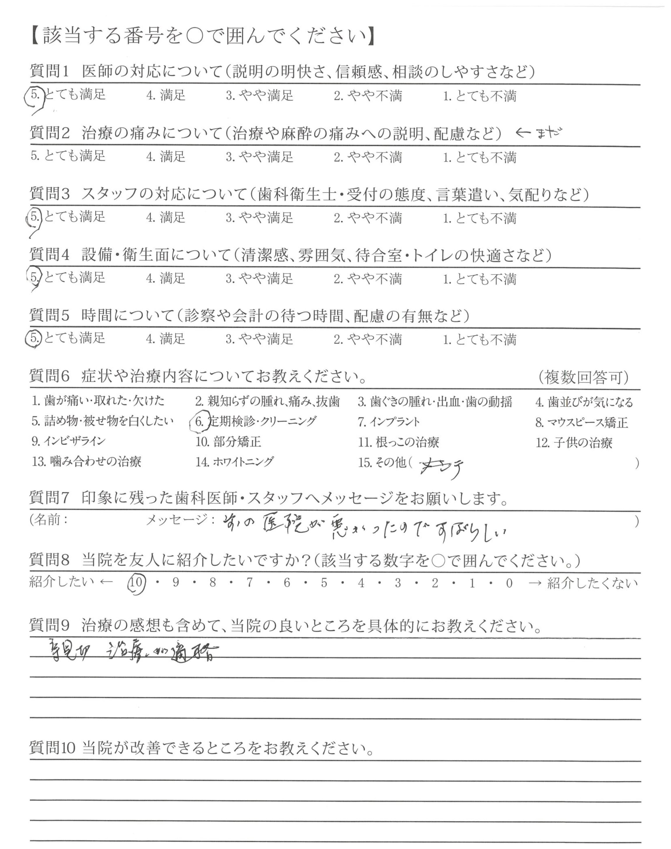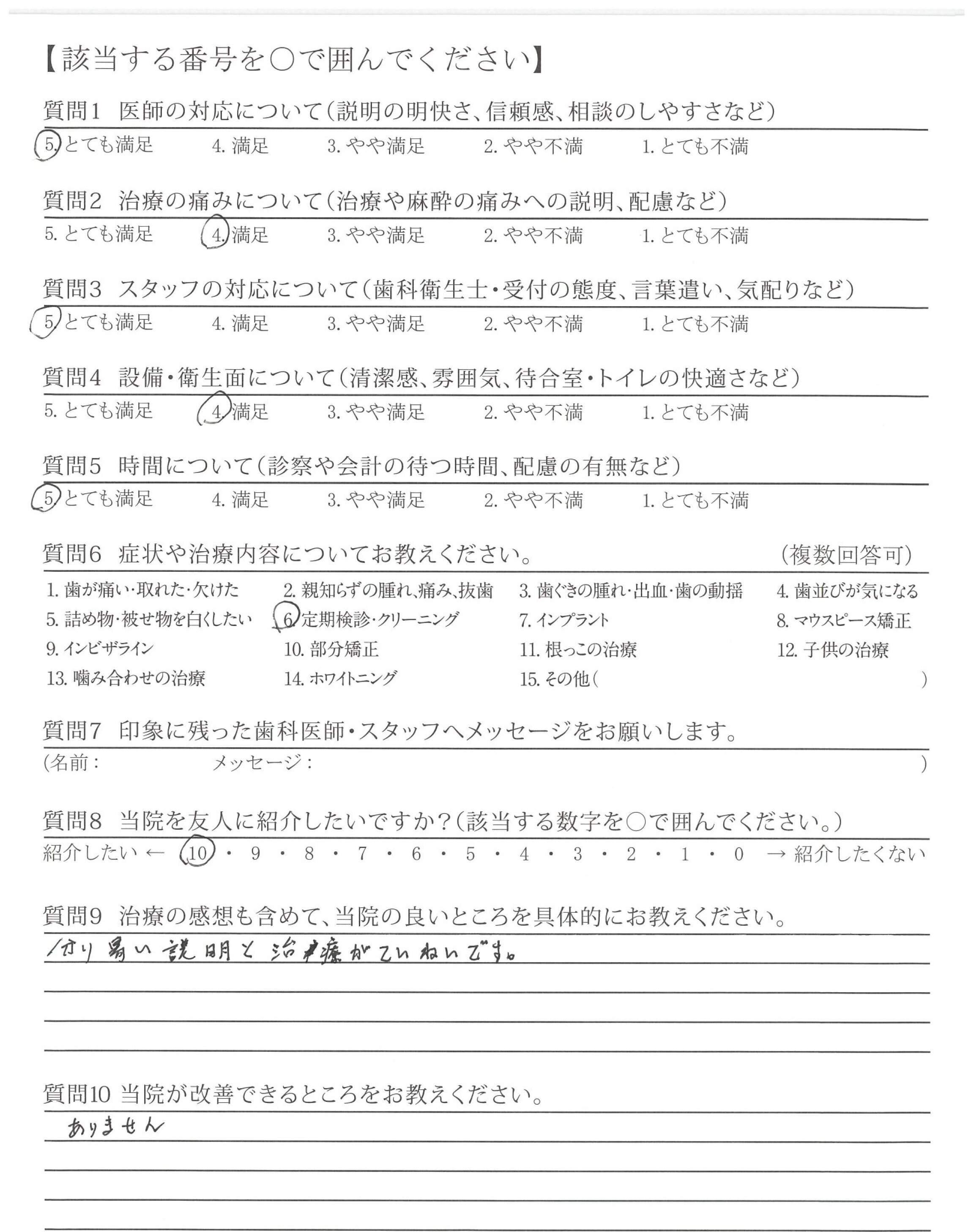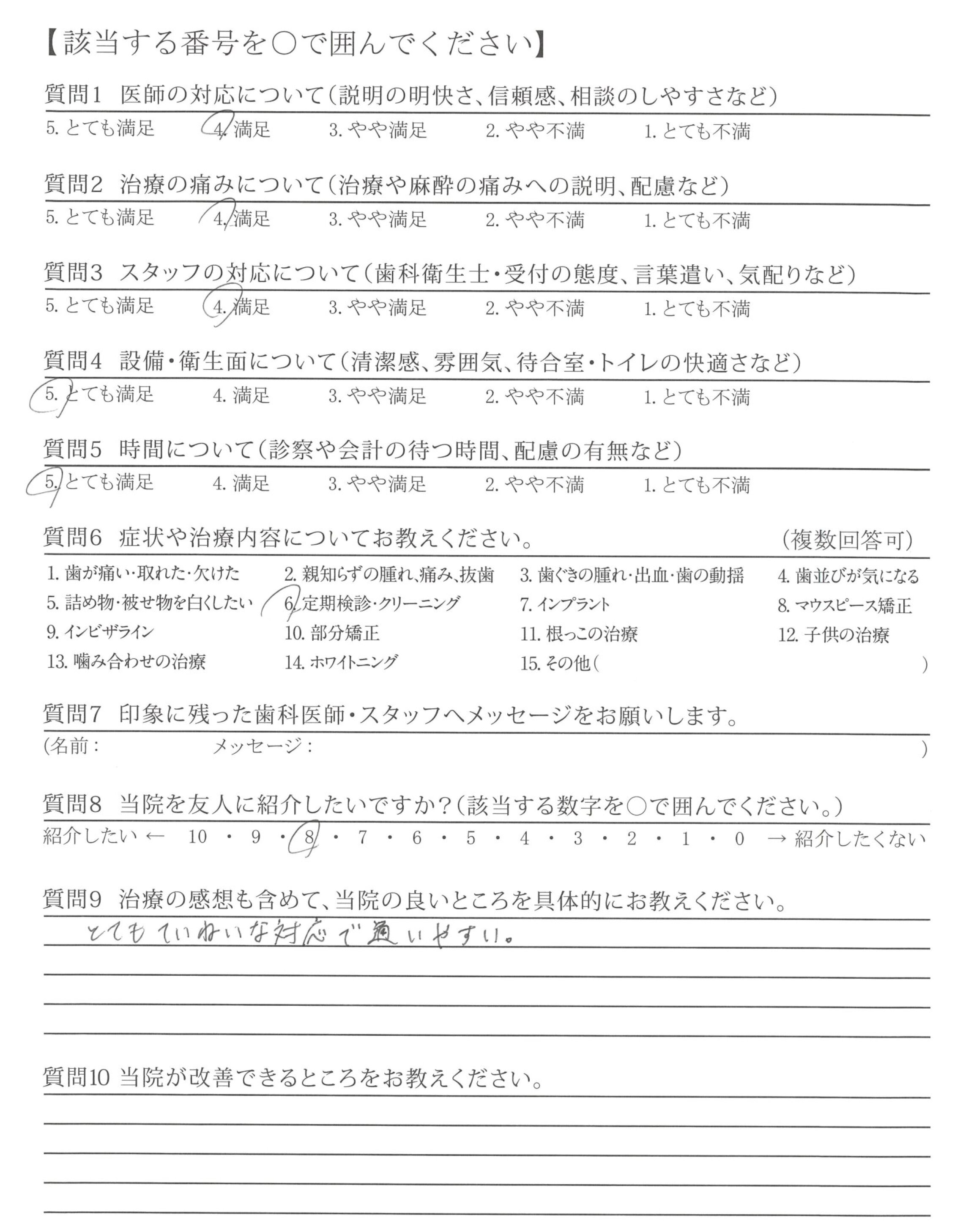 | 治療の痛みへの配慮 | ![]() ![]() ![]() ![]() 4.65 |