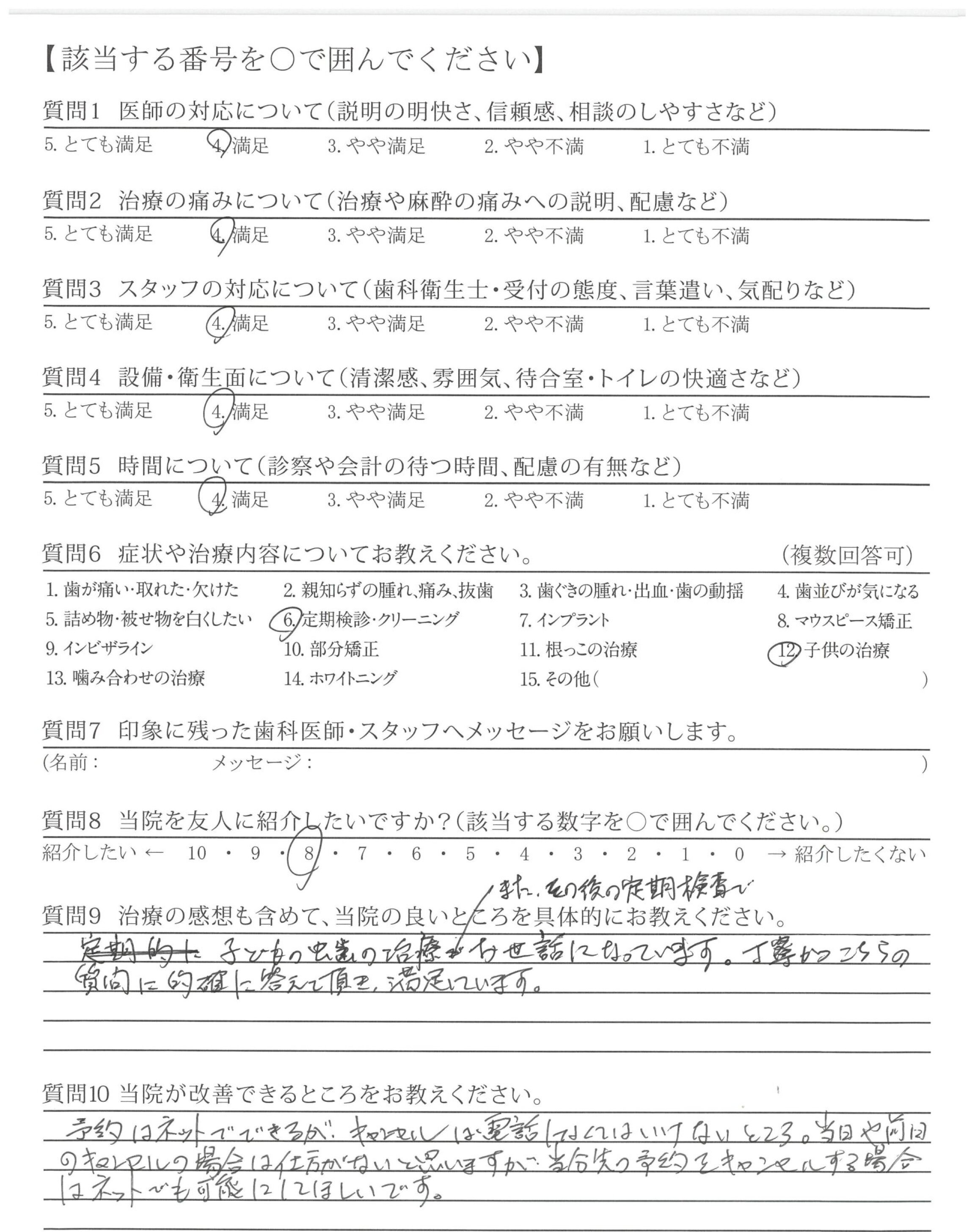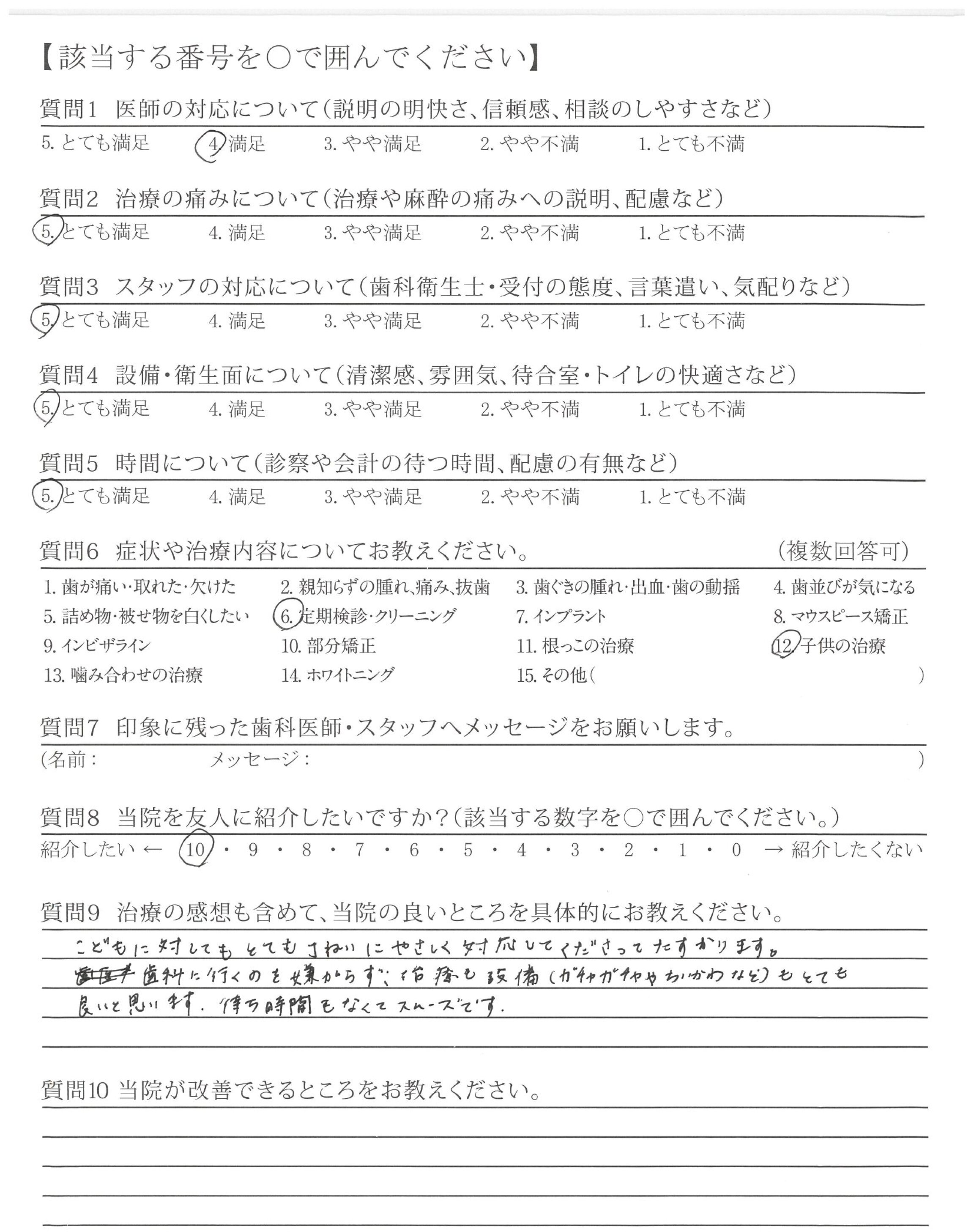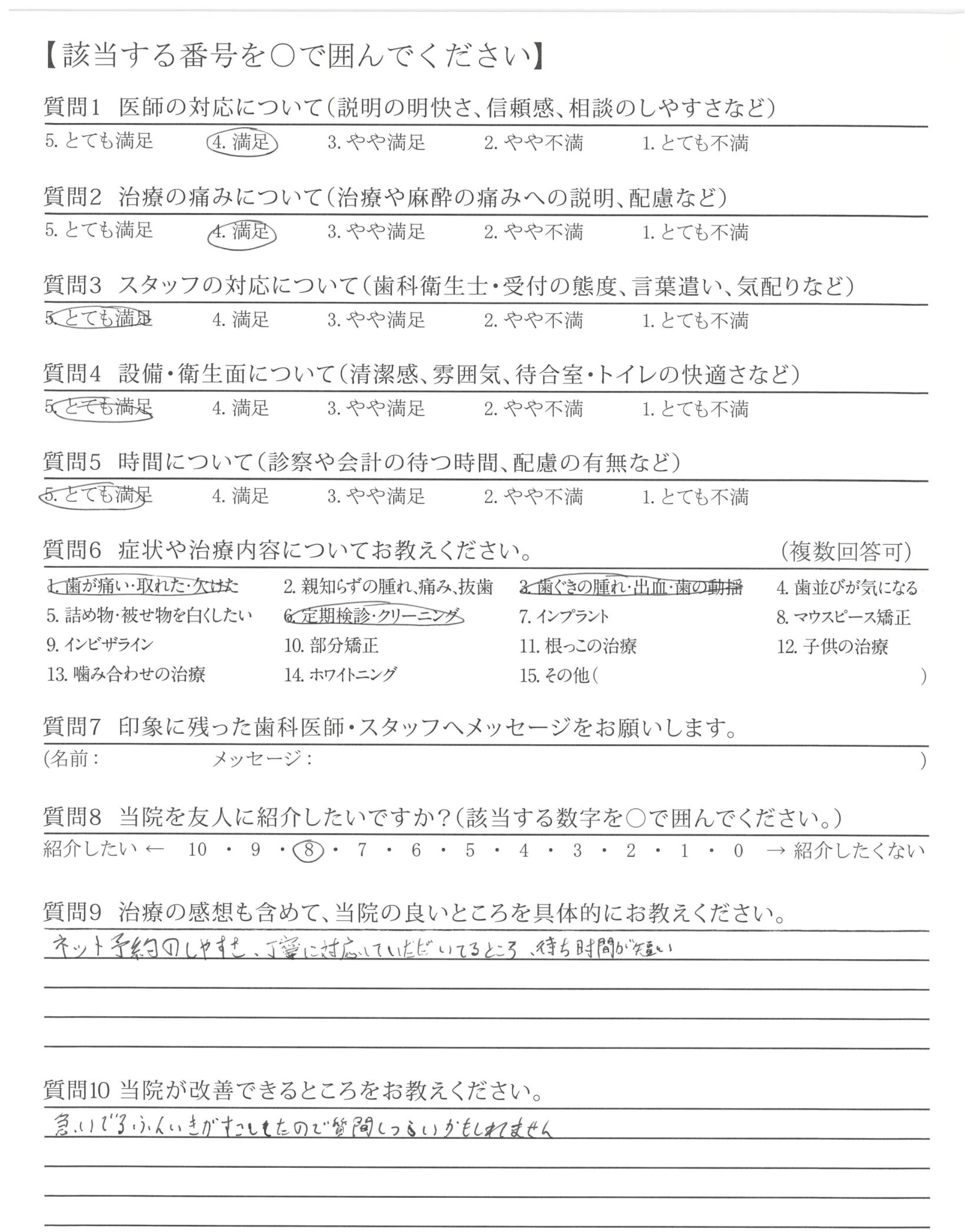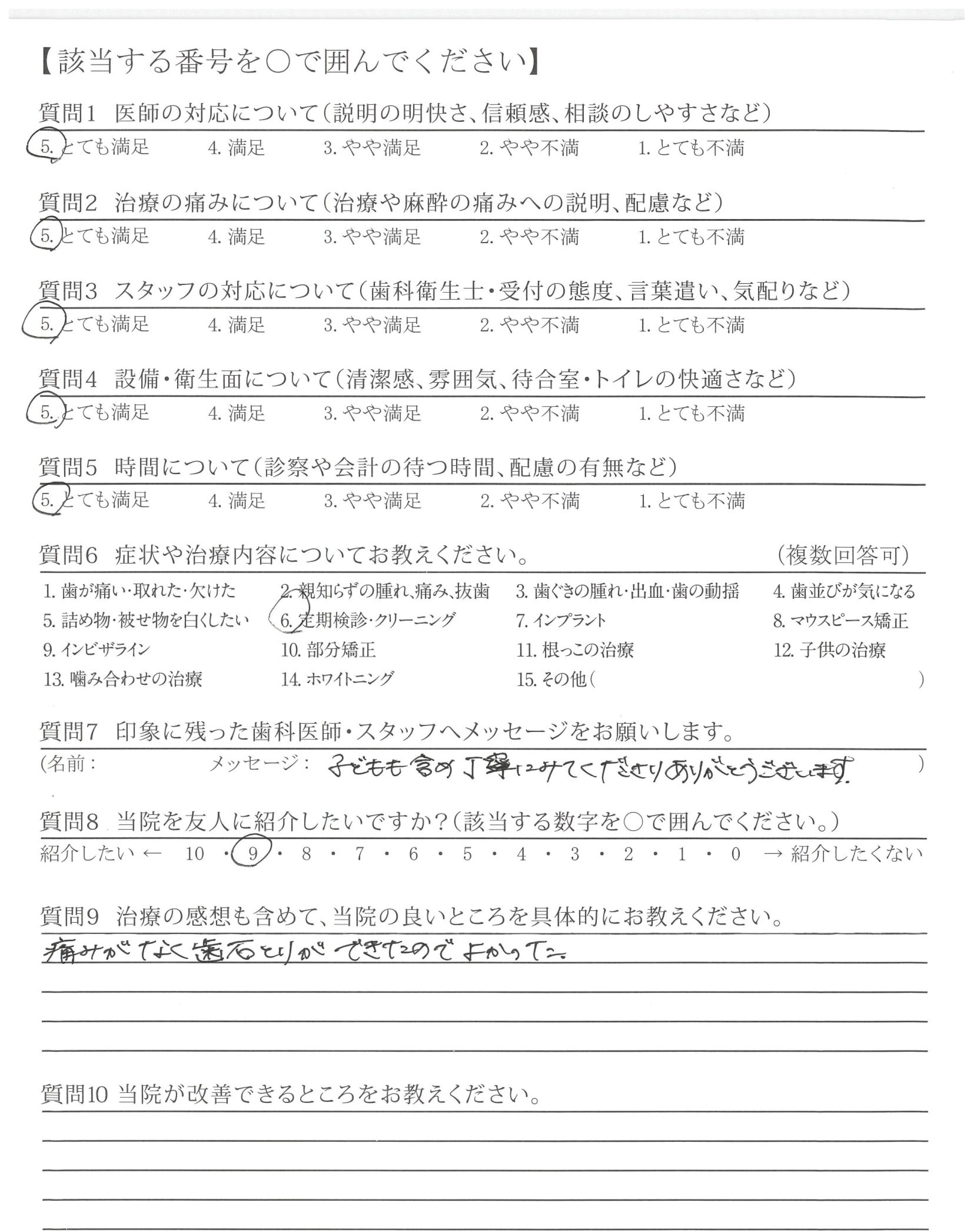 | 治療の痛みへの配慮 | ![]() ![]() ![]() ![]() 4.65 |