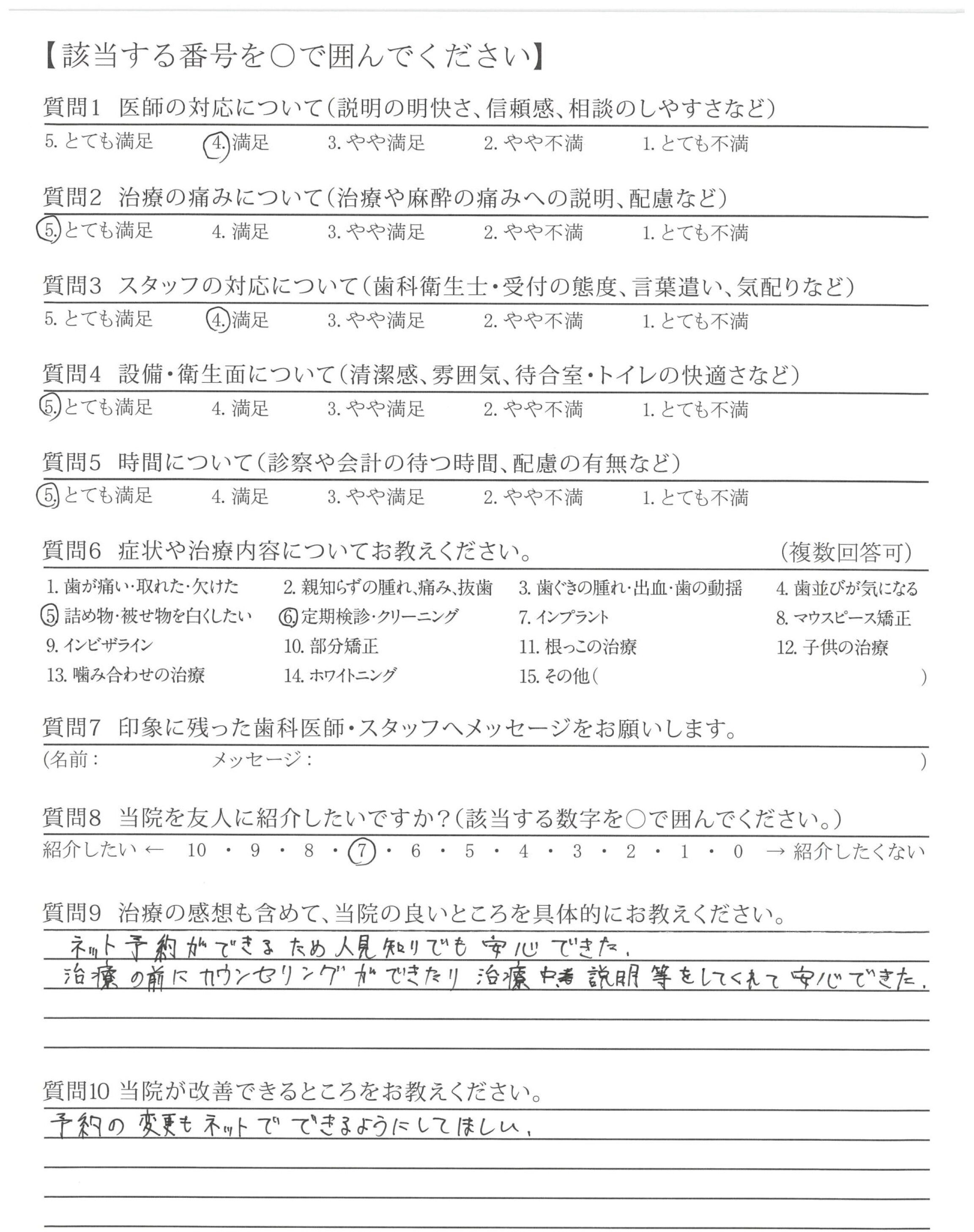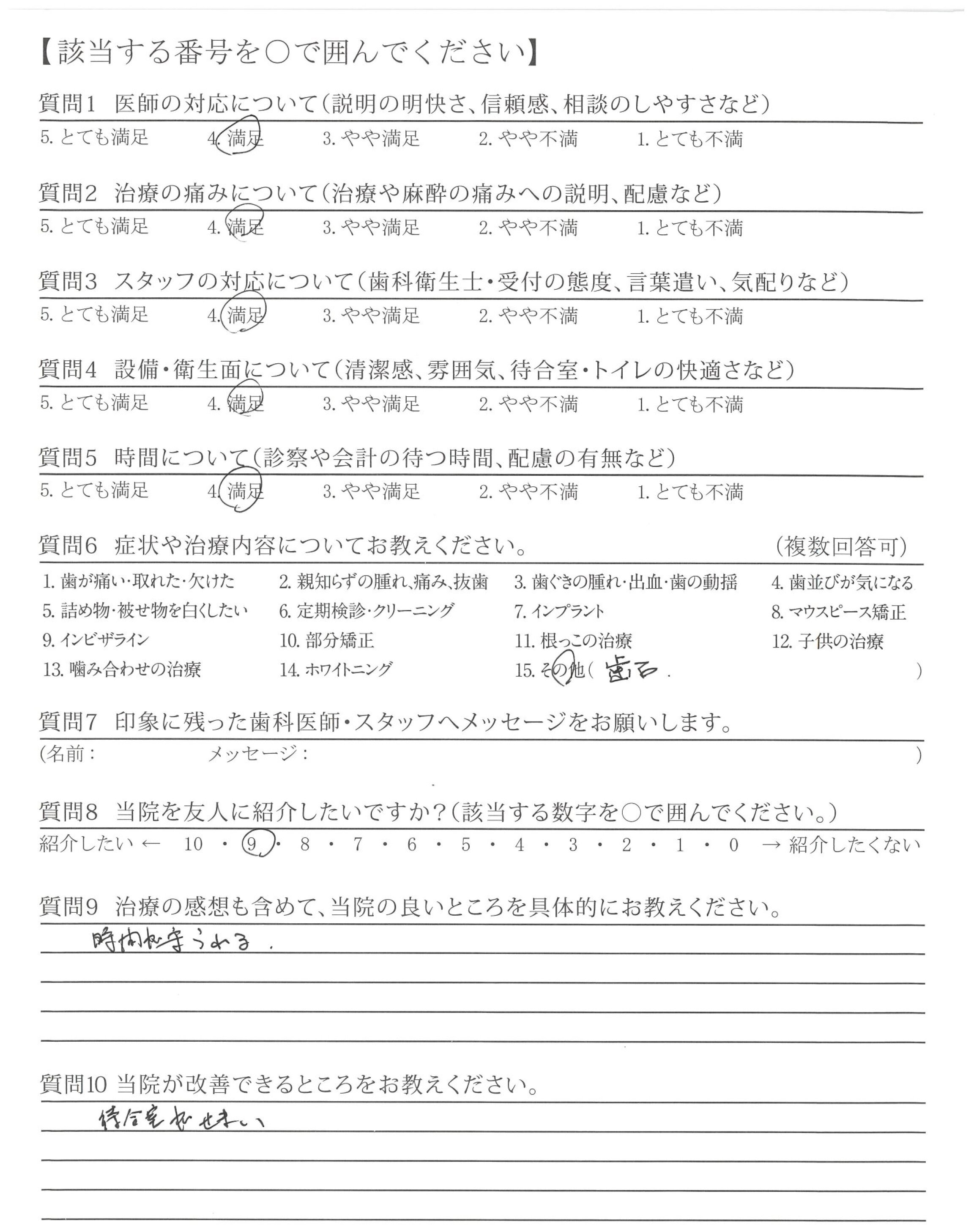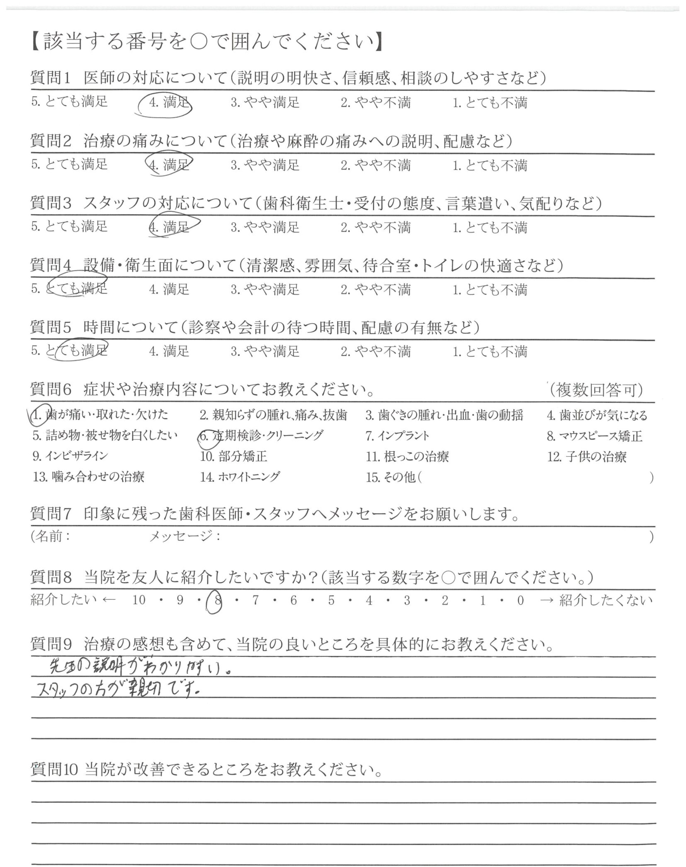 | 歯科医師の対応 | ![]() ![]() ![]() ![]() 4.64 |