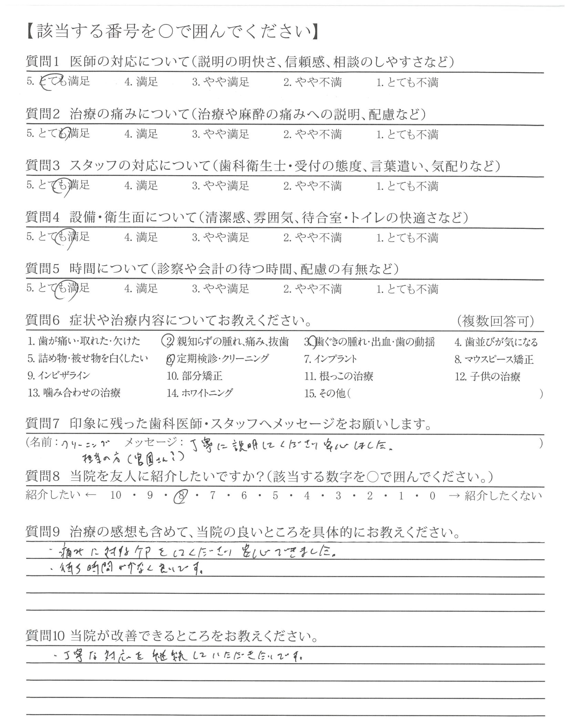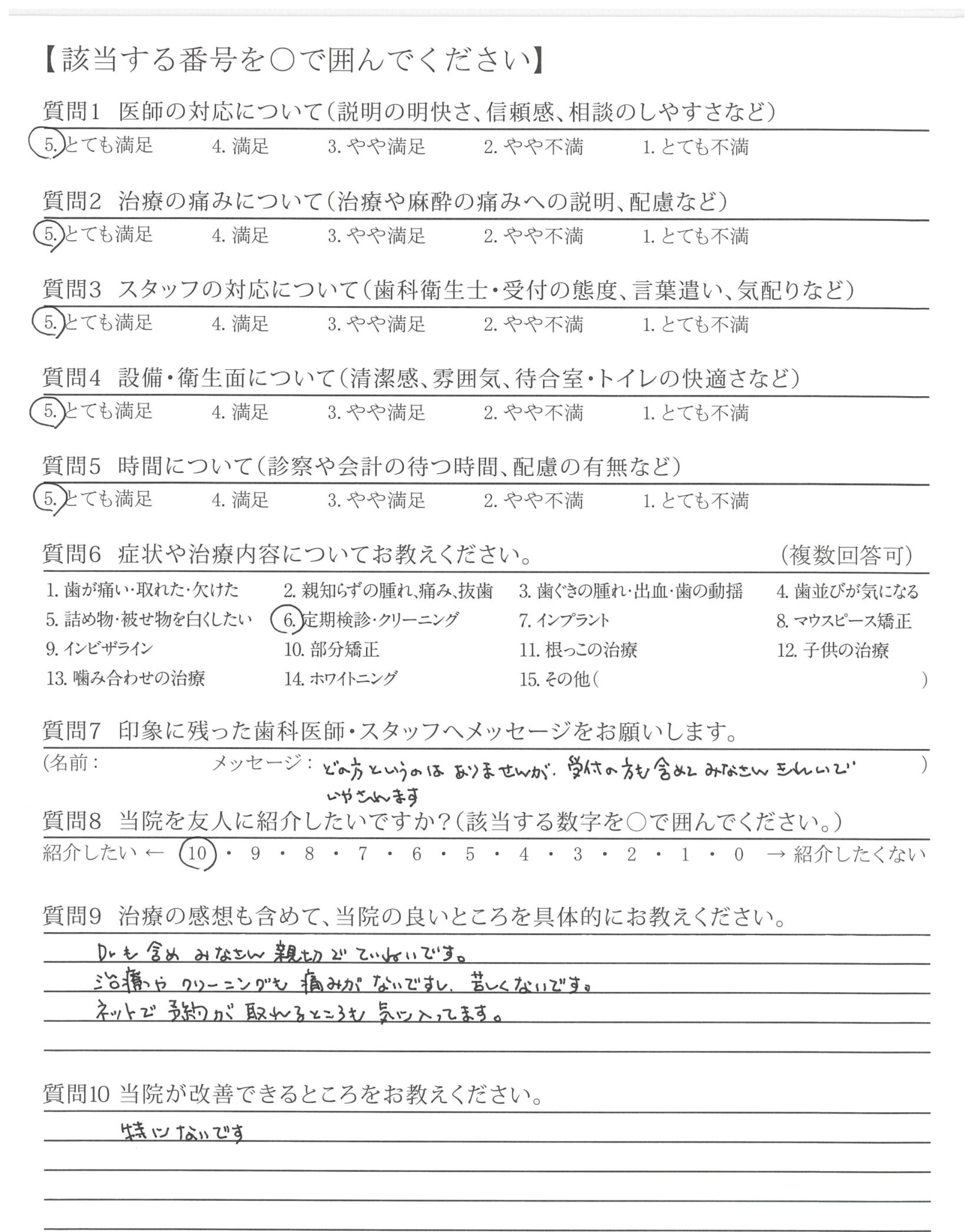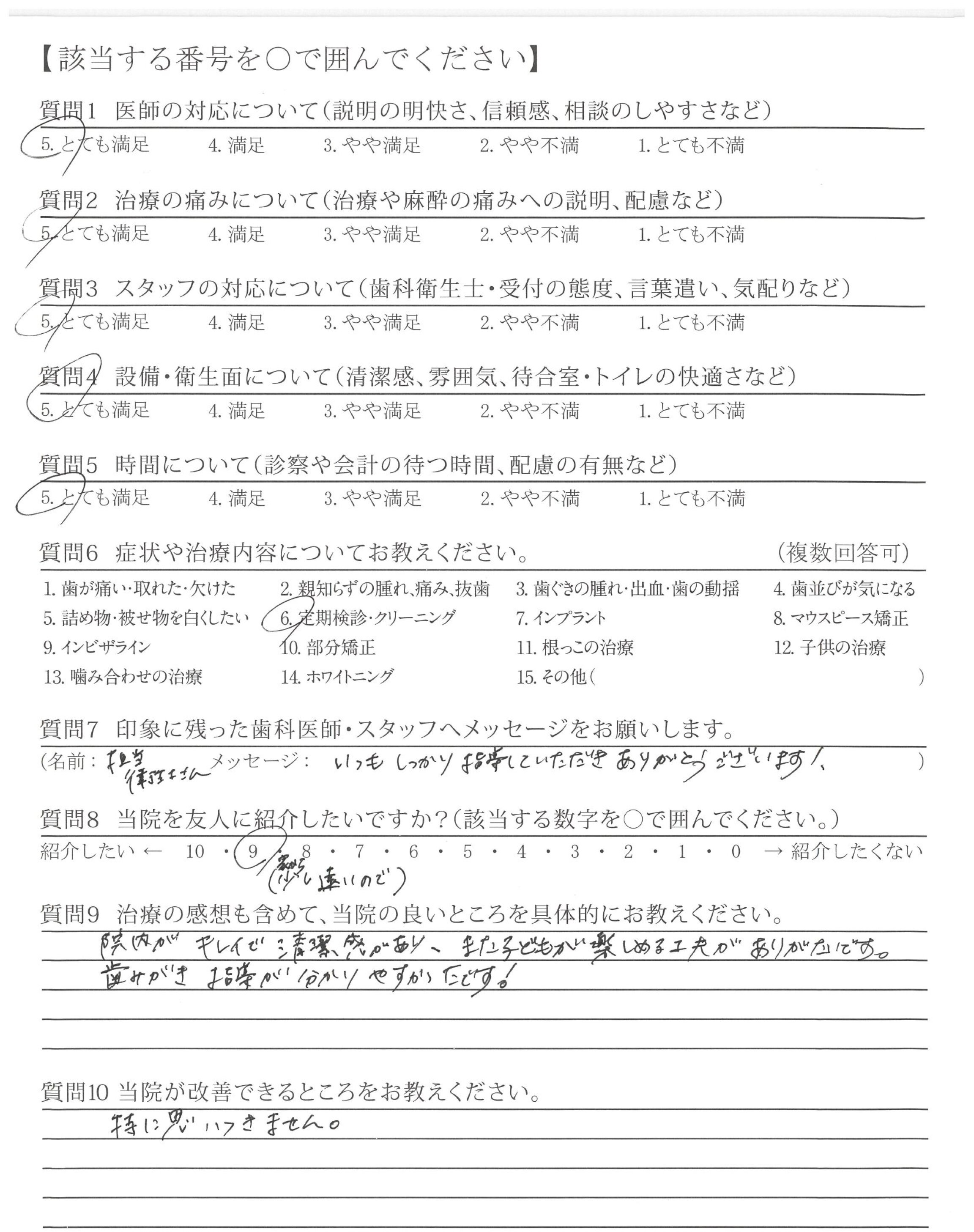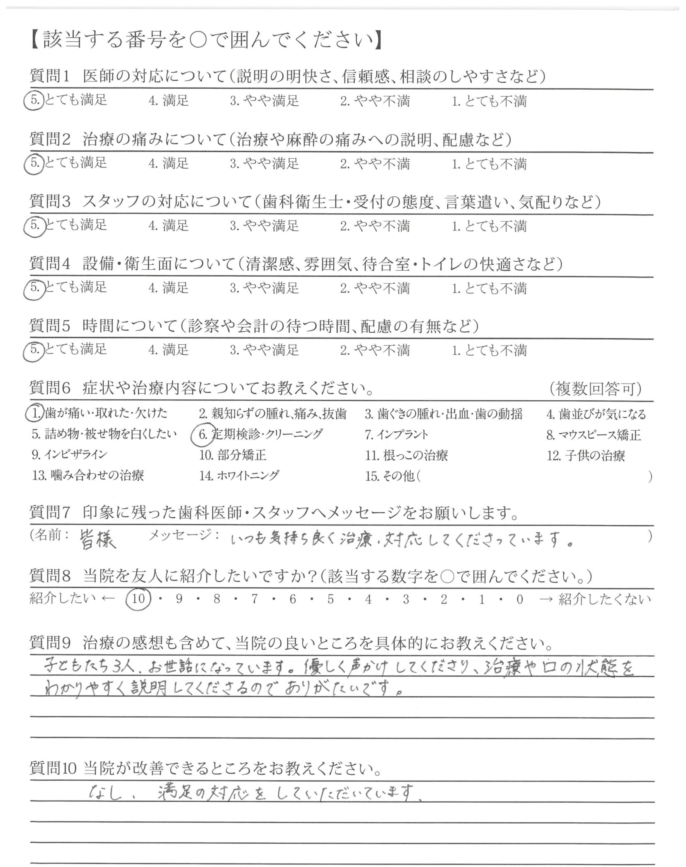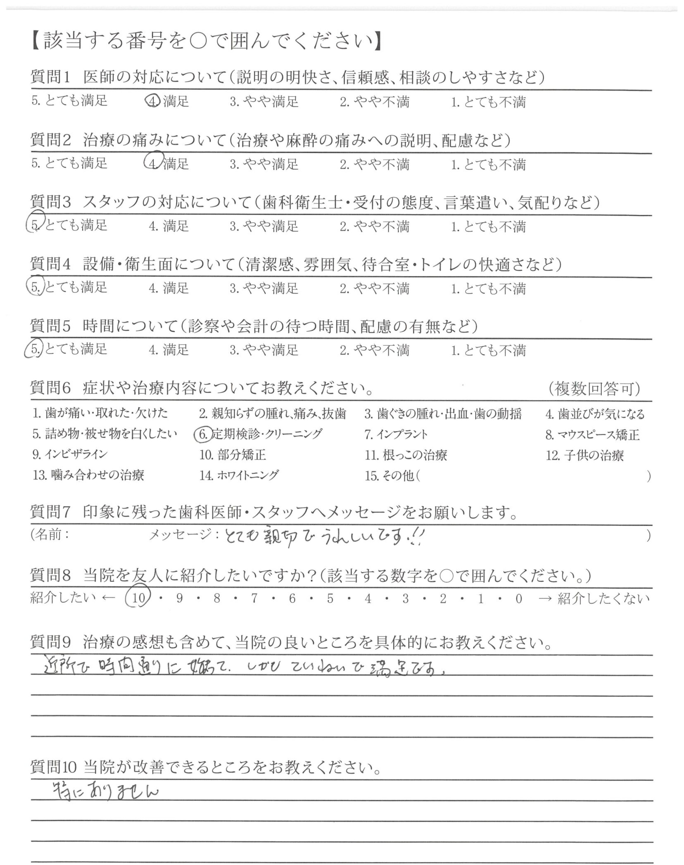 いつも気持ち良く治療・対応してくださっています。