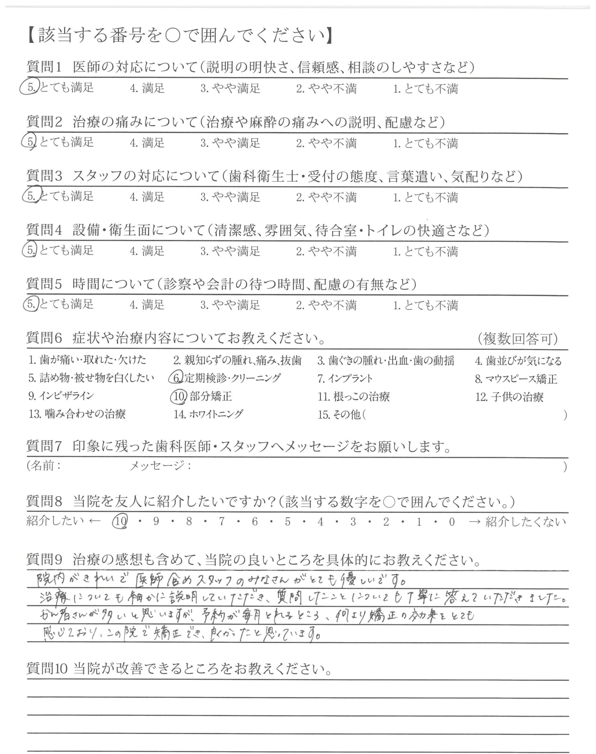 かん者さんが多いと思いますが、予約が毎月とれるところ、何より矯正の効果をとても感じており、この院で矯正でき、良かったと思っています。