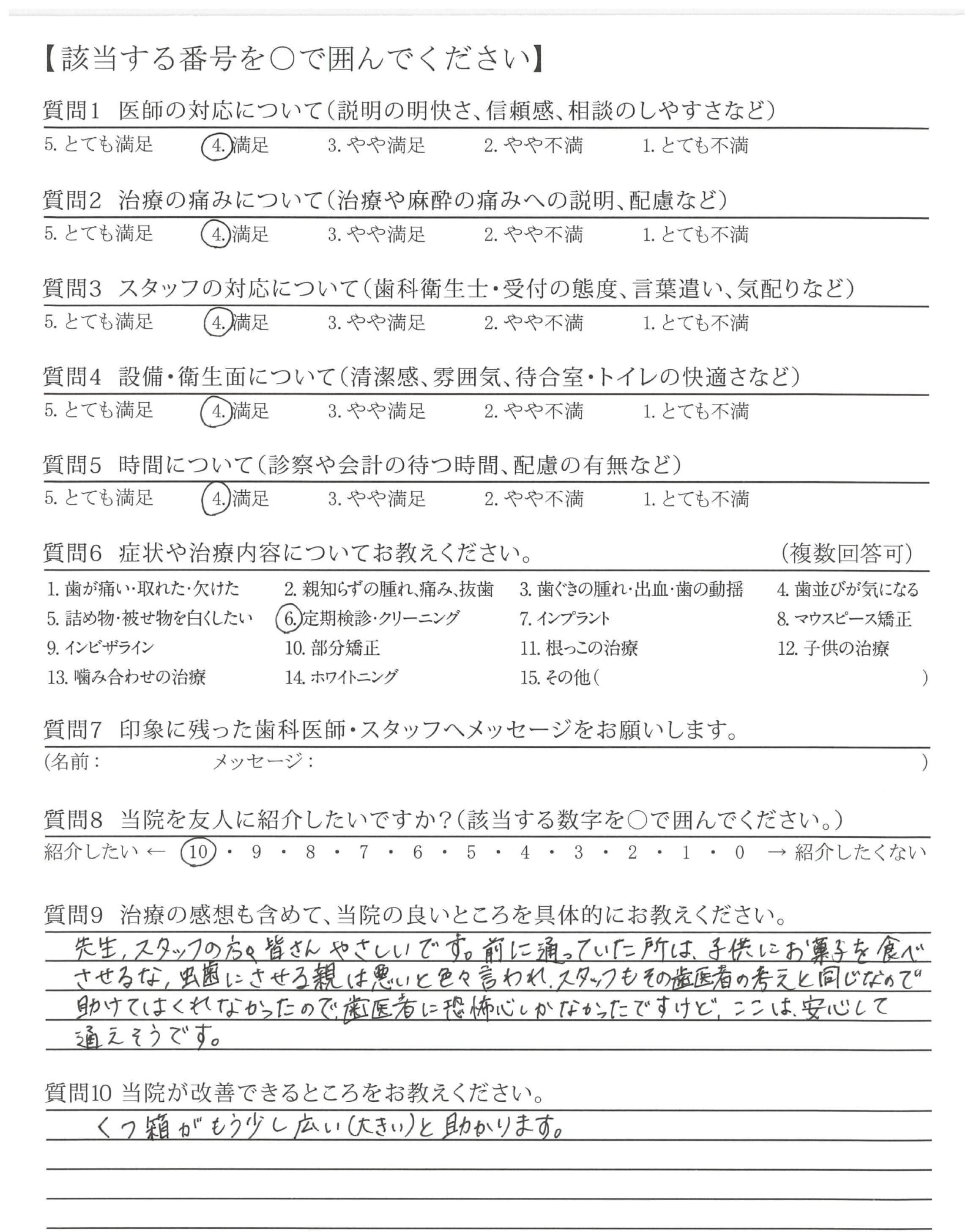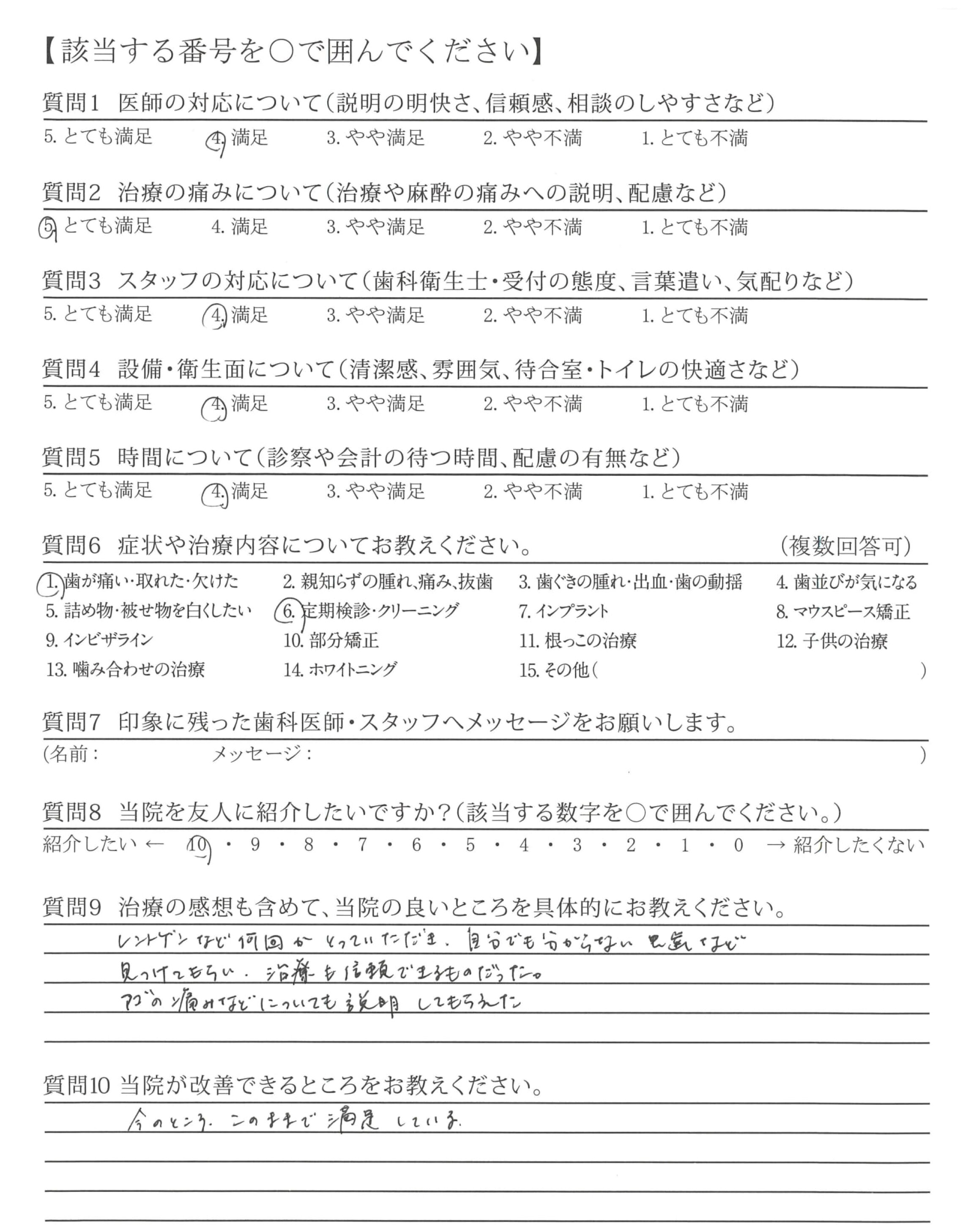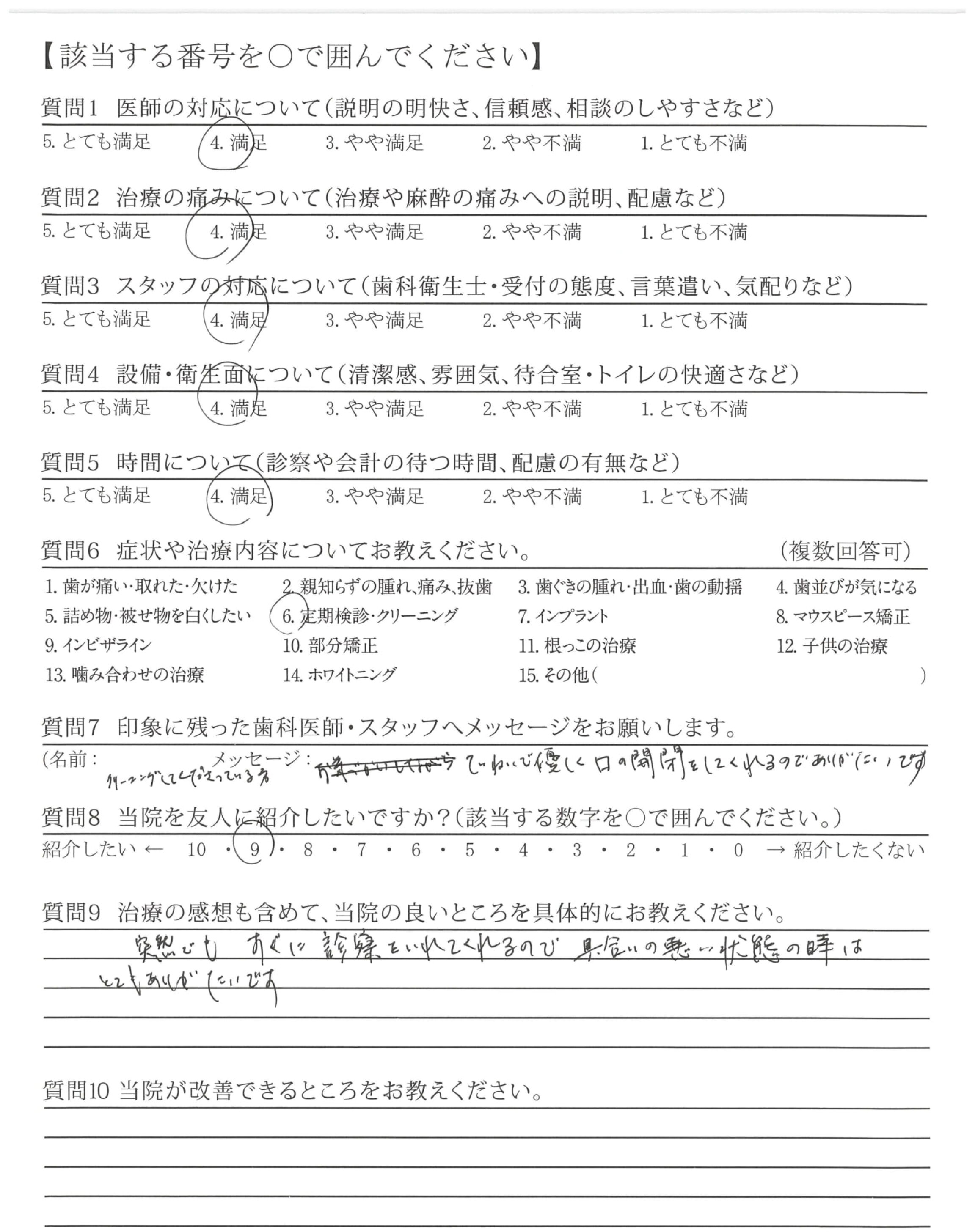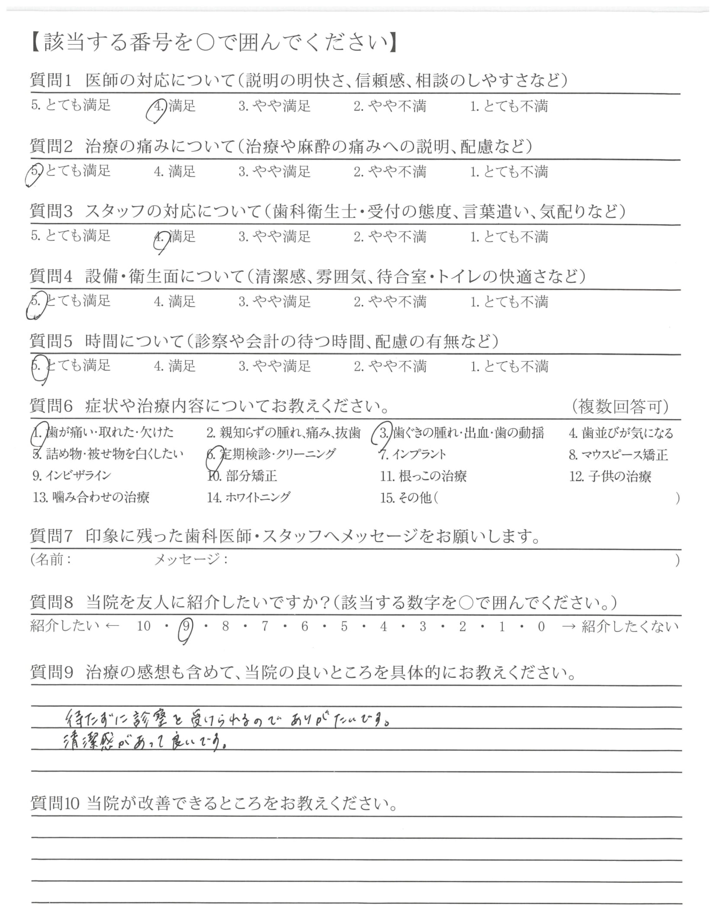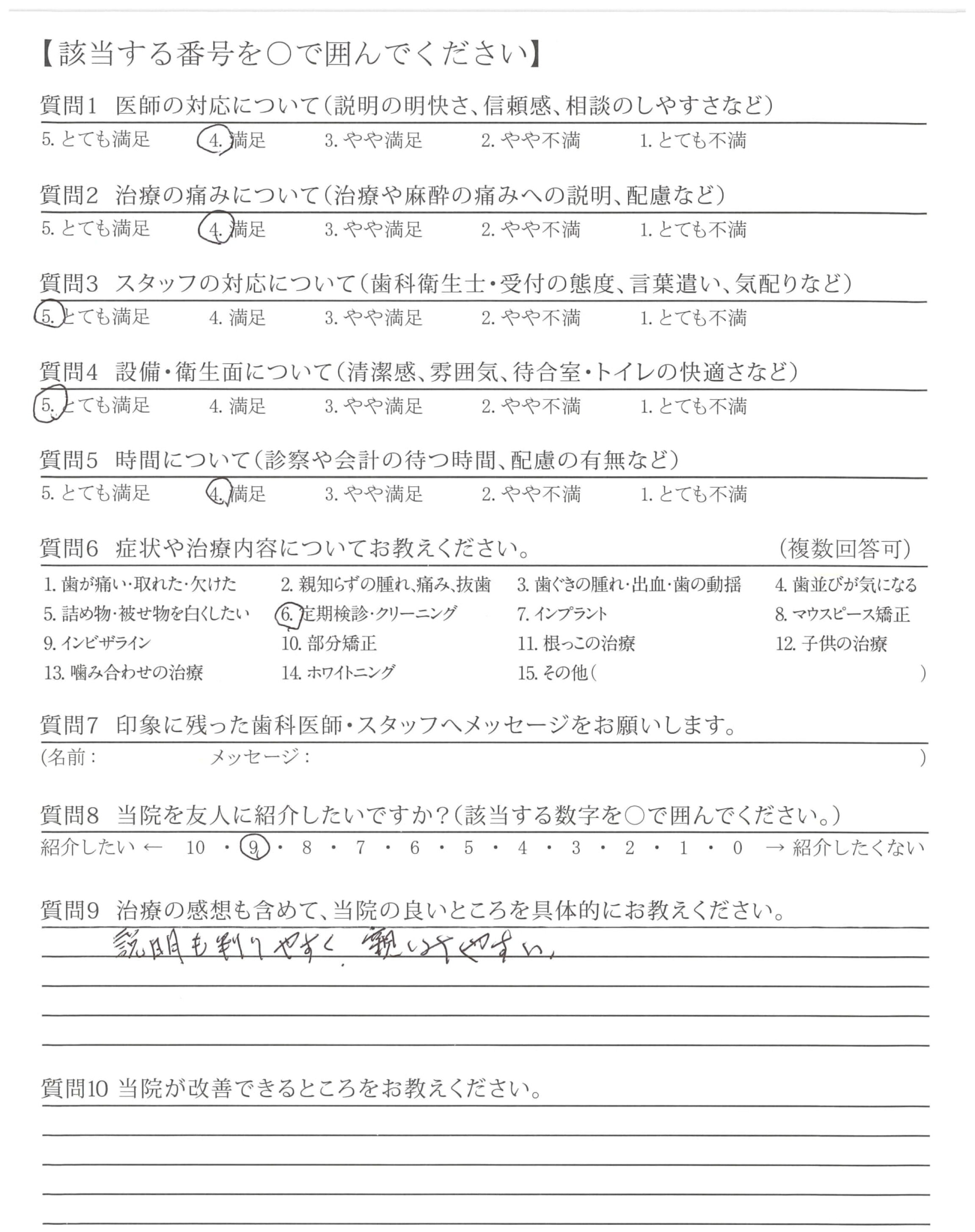 | 歯科医師の対応 | ![]() ![]() ![]() ![]() 4.64 |