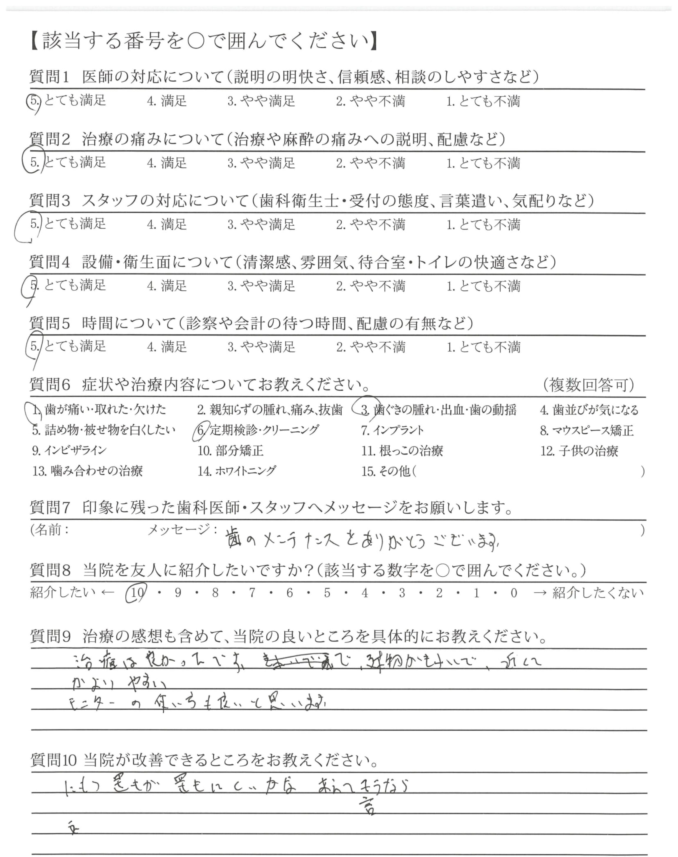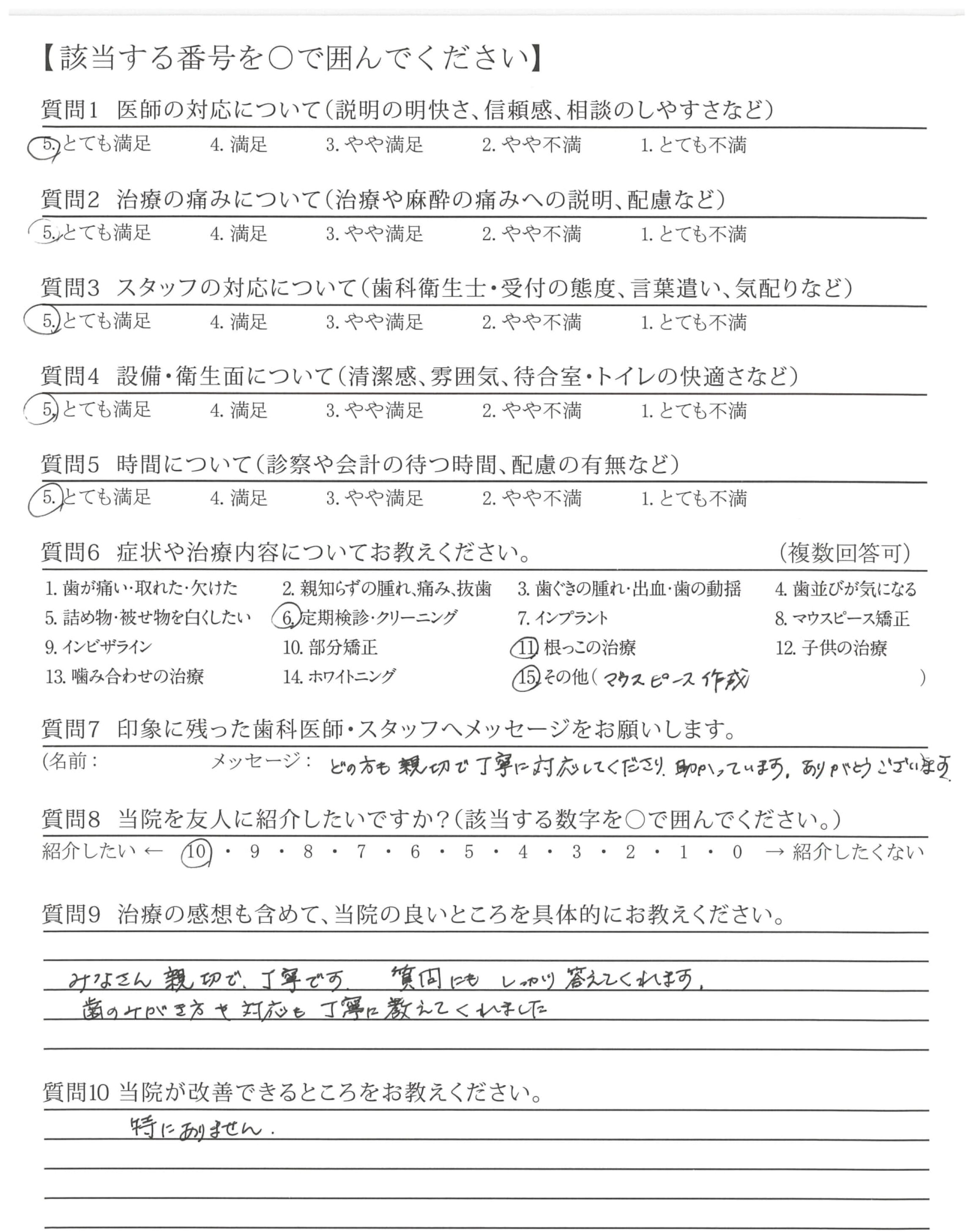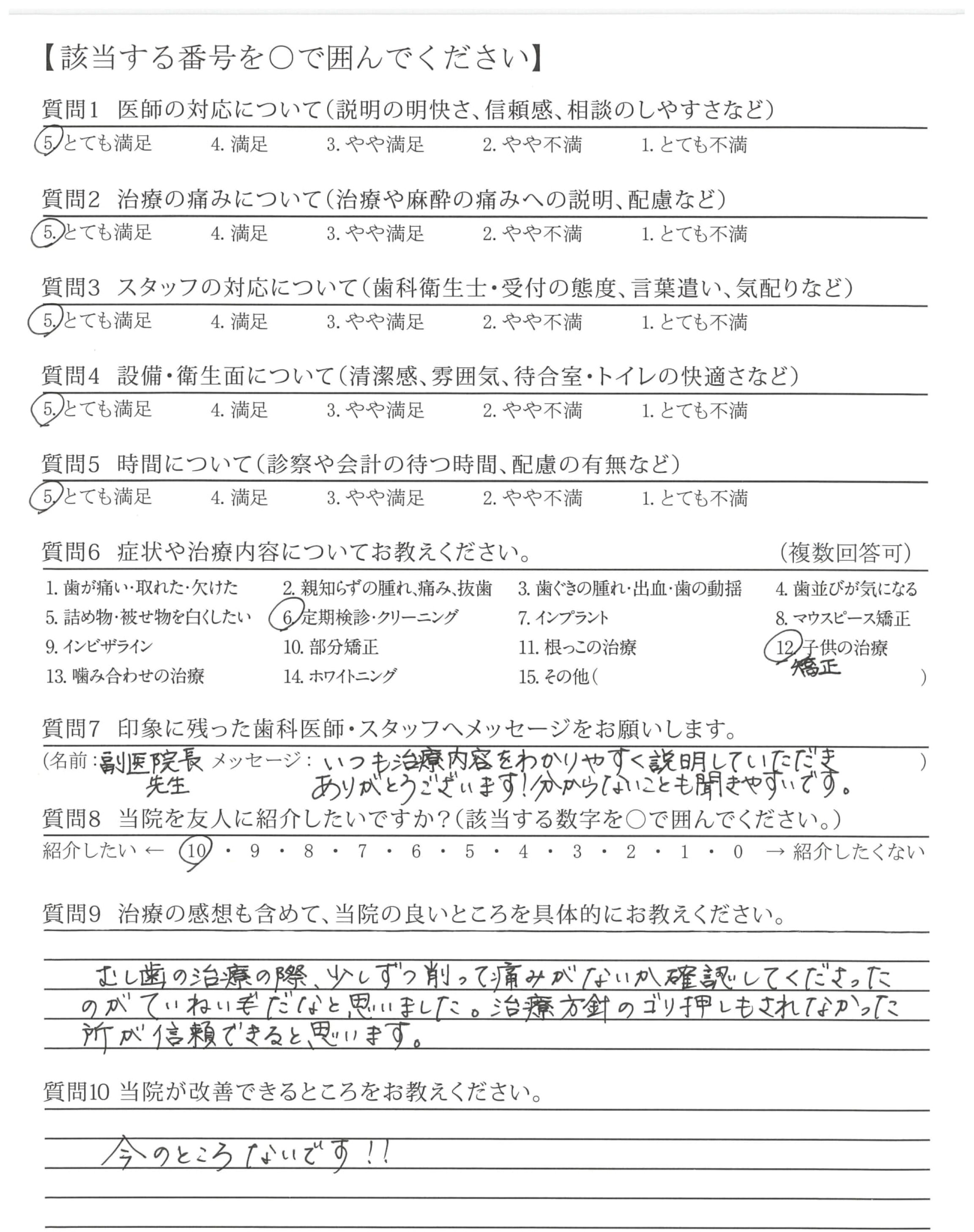 むし歯の治療の際、少しずつ削って痛みがないか確認してくださったのがていねいだなと思いました。