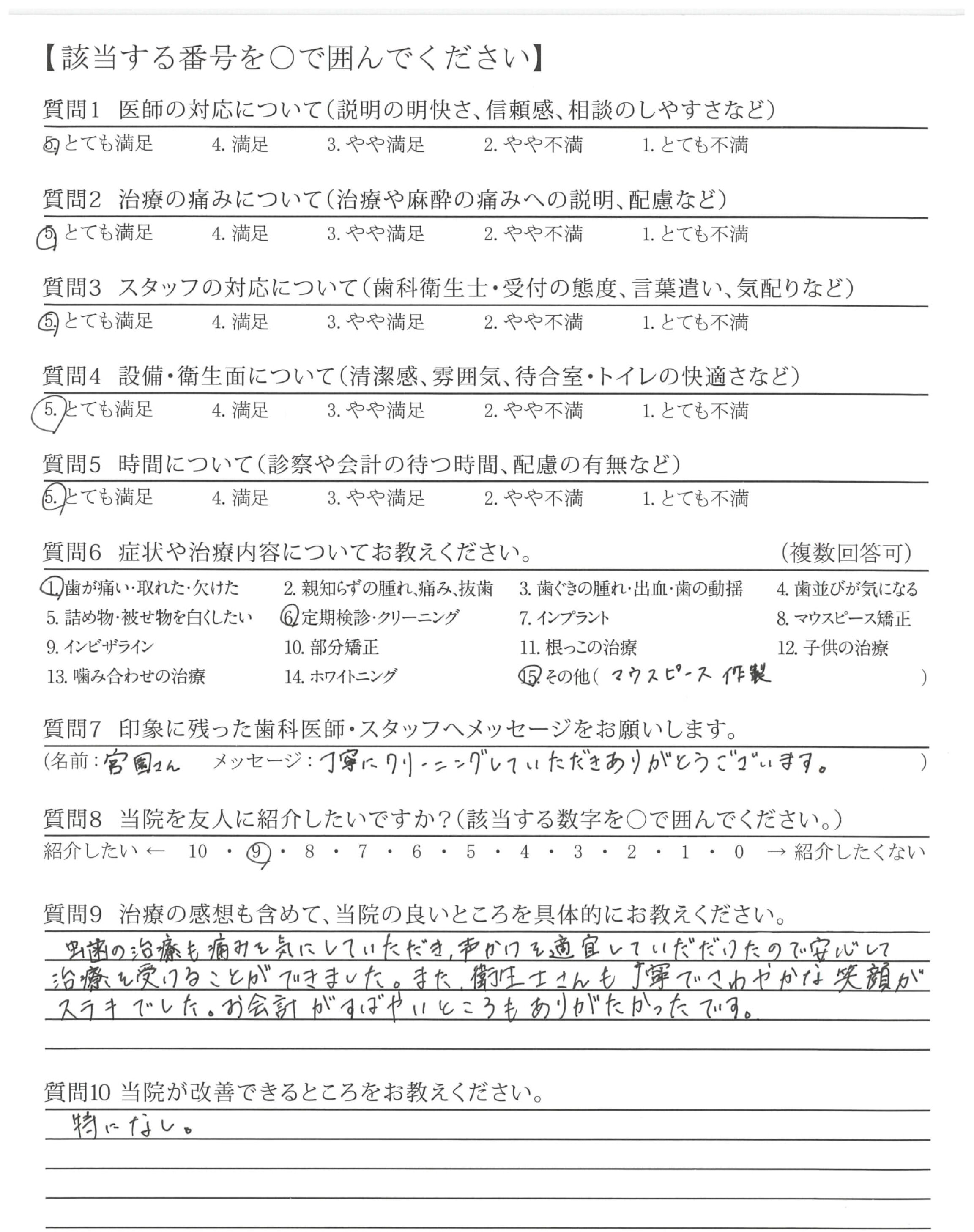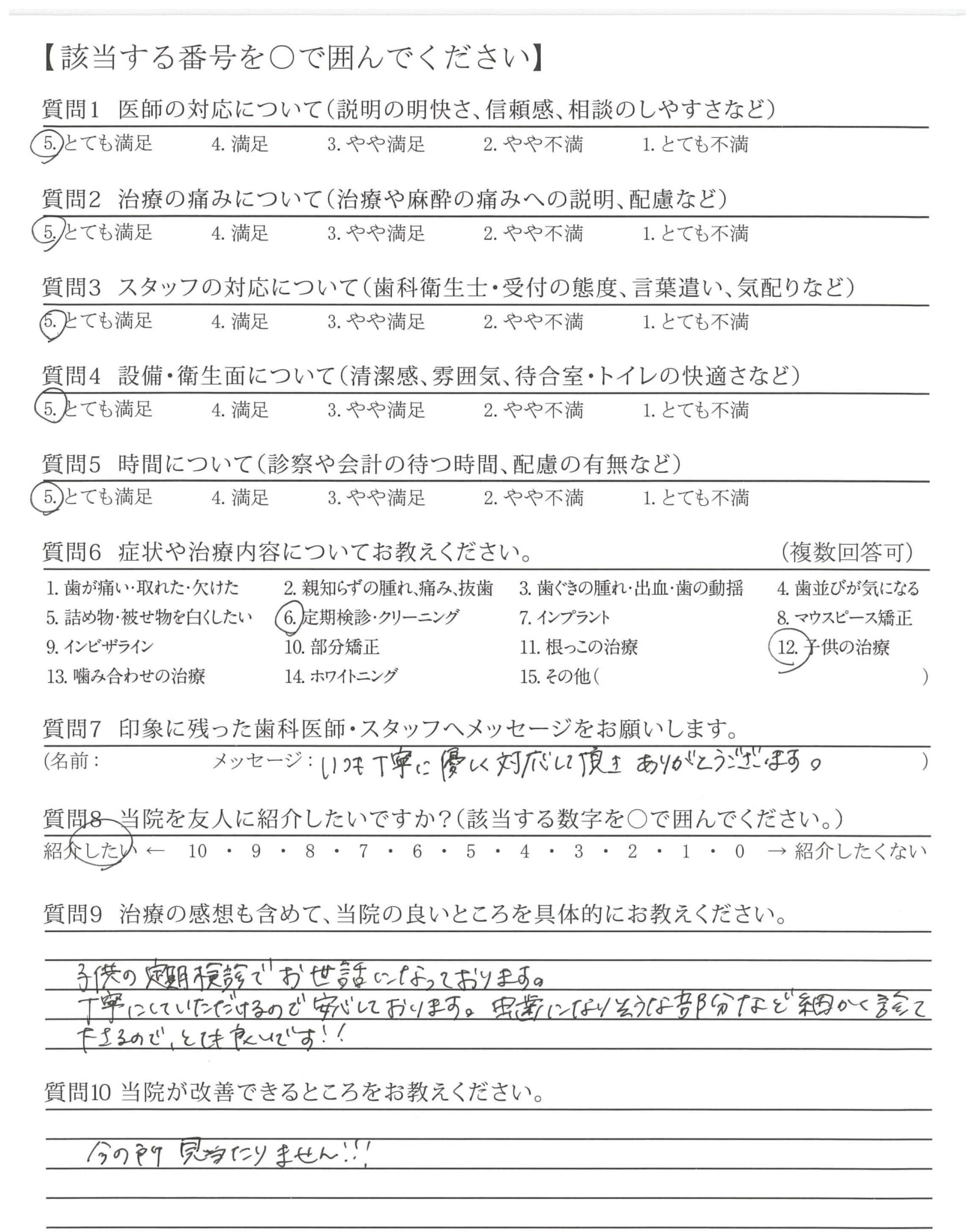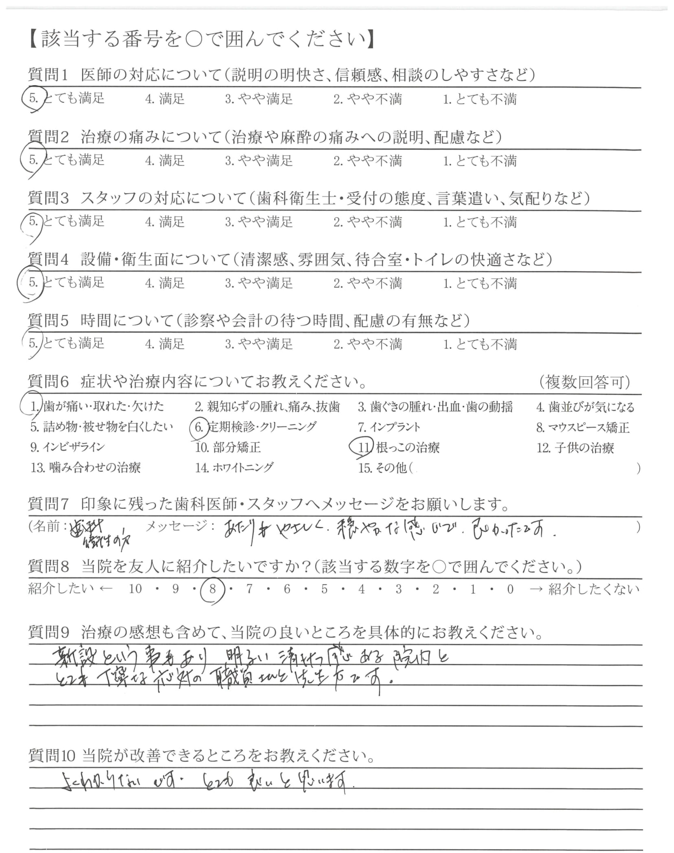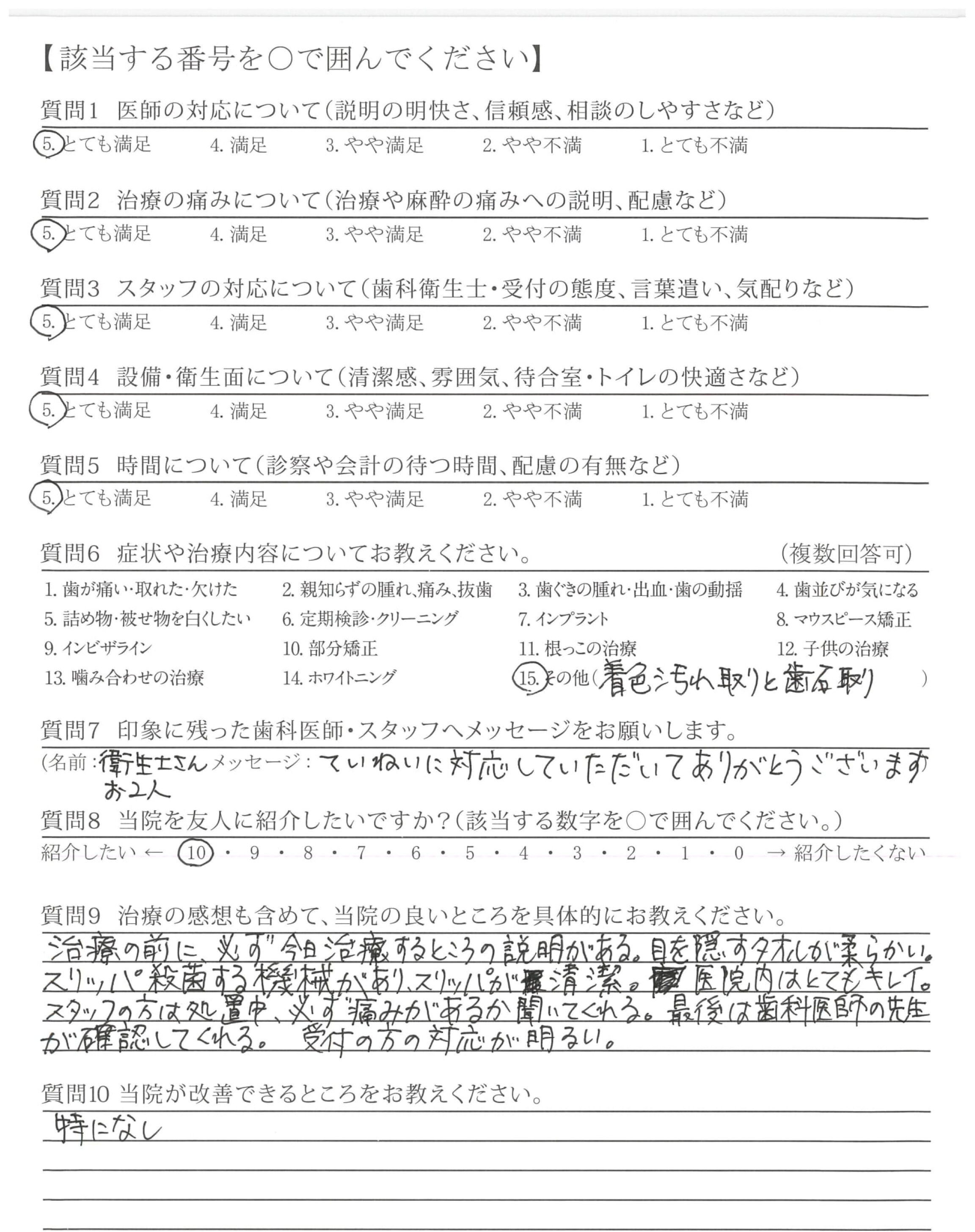 むし歯の治療の際、少しずつ削って痛みがないか確認してくださったのがていねいだなと思いました。
