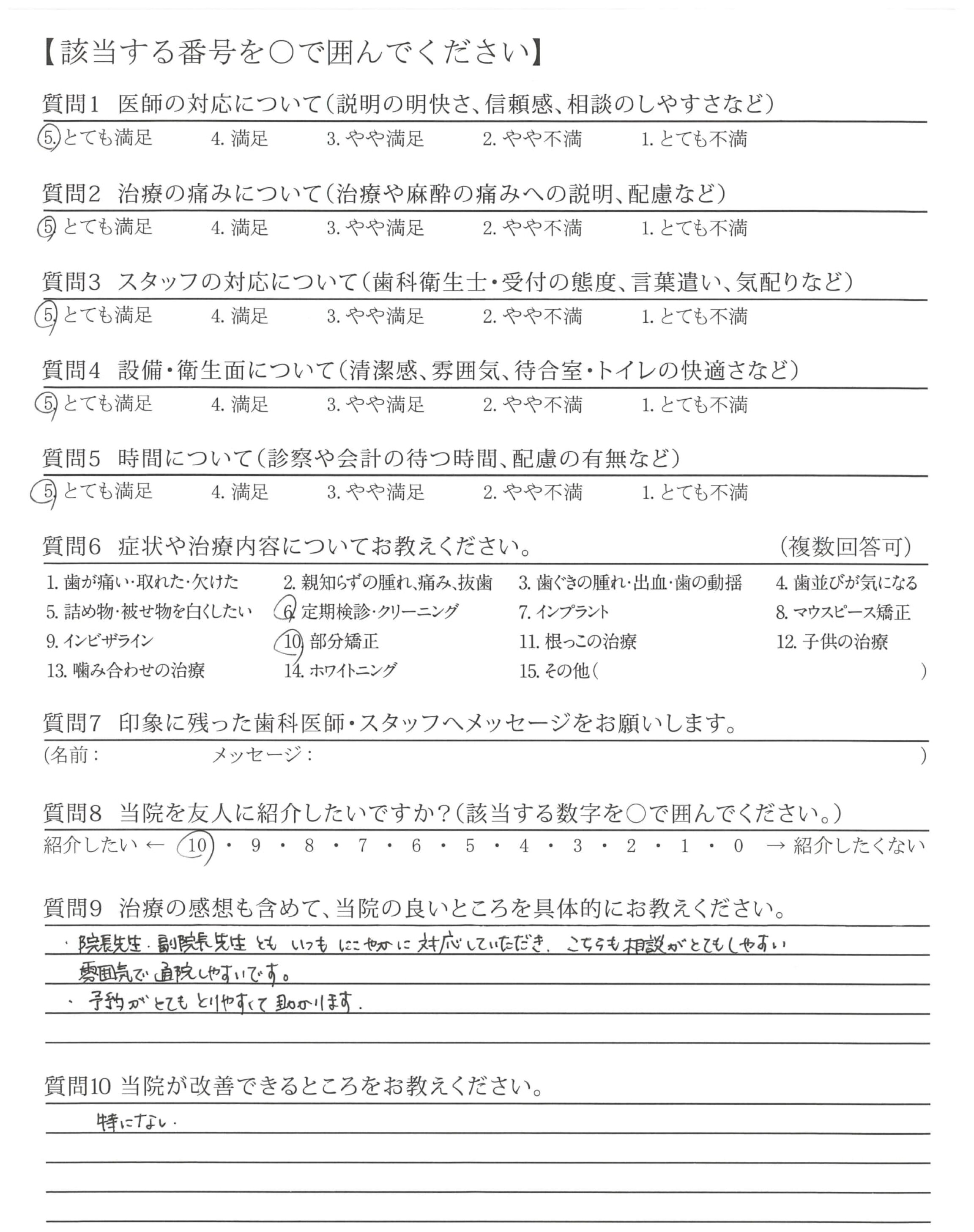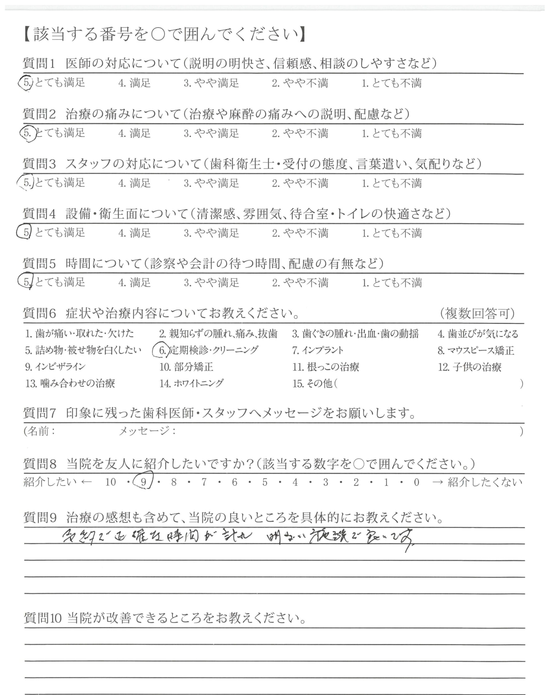 いつも治療内容をわかりやすく説明していただきありがとうございます!分からないことも聞きやすいです。