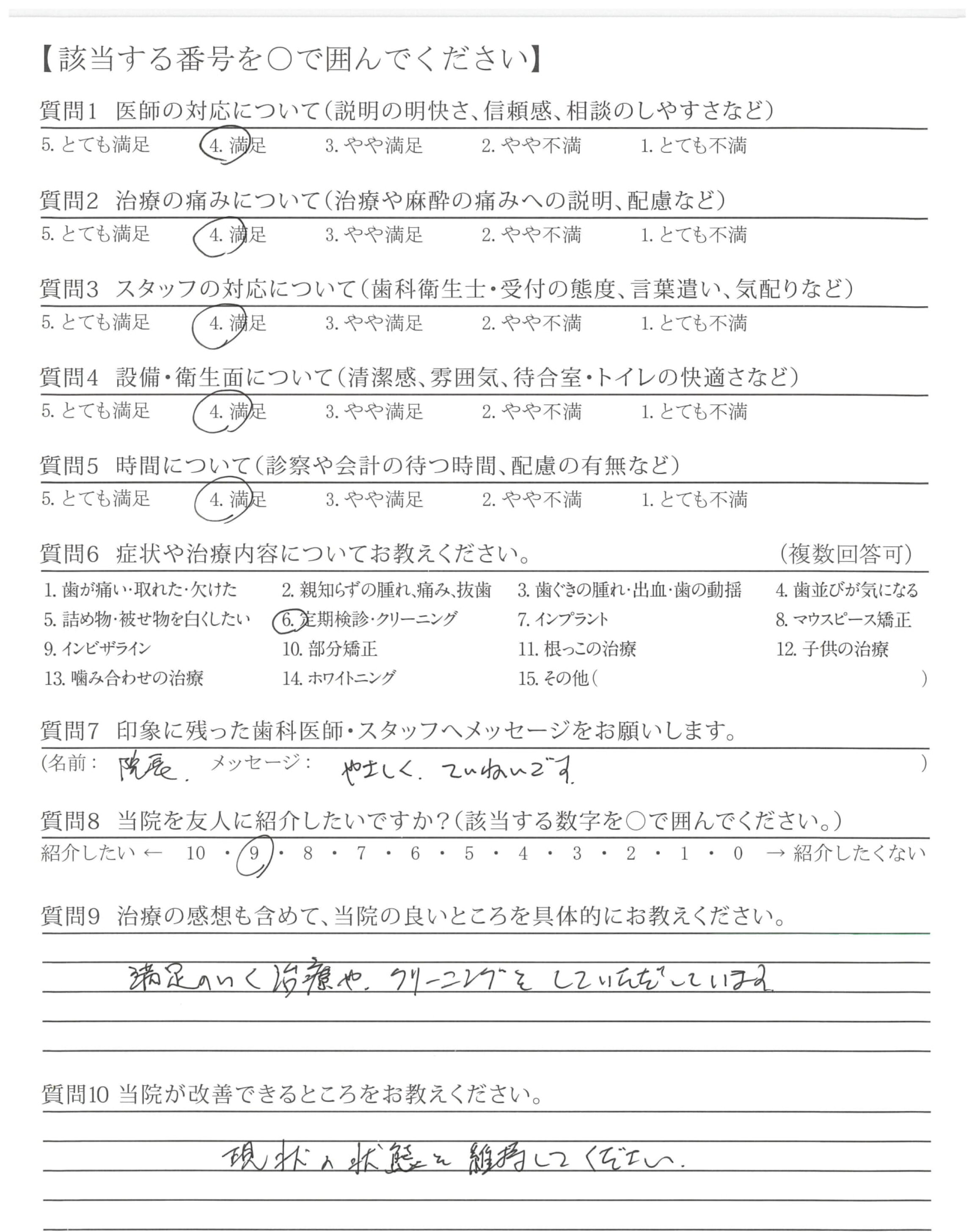 満足のいく治療や、クリーニングをしていただいています。