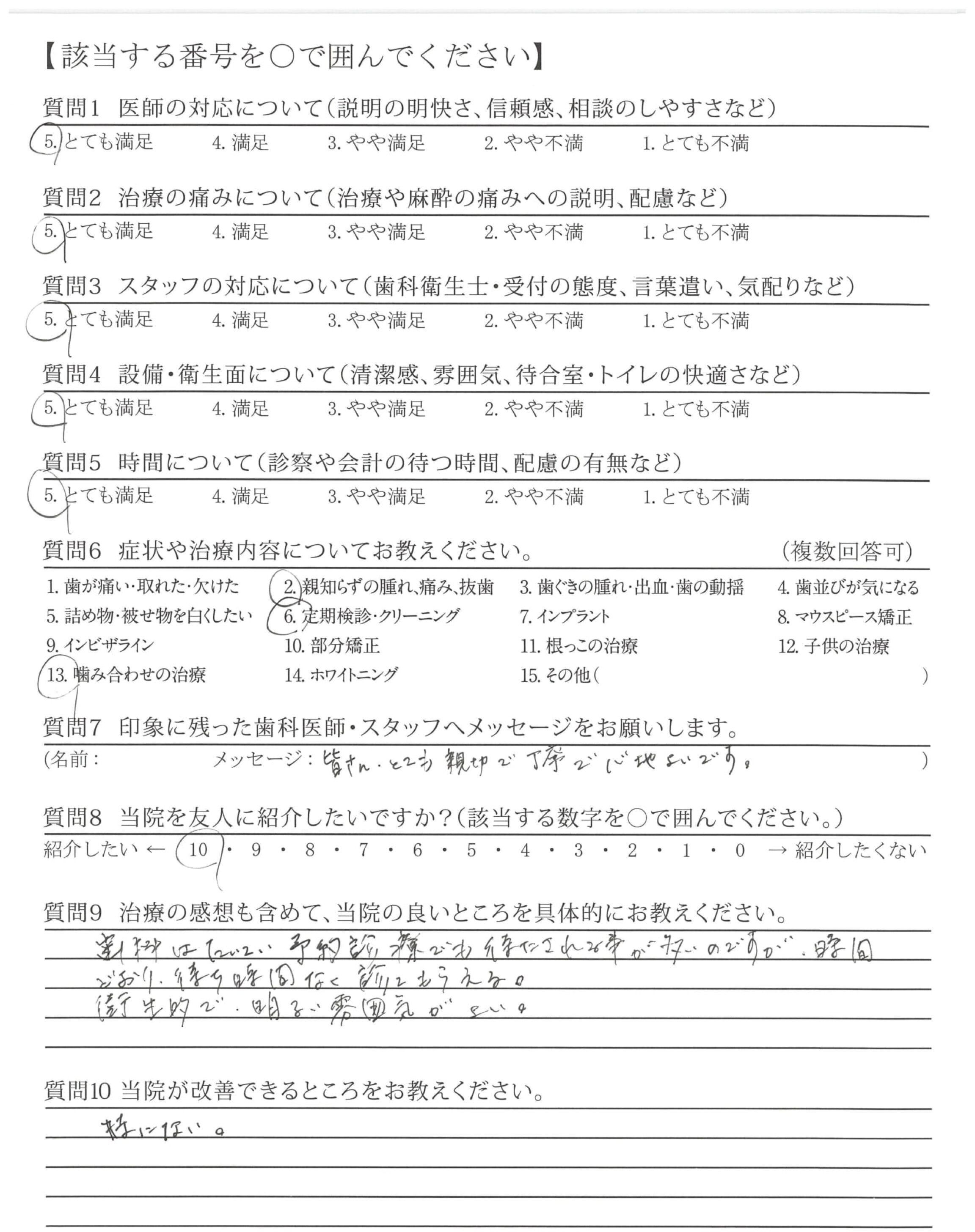 | 歯科医師の対応 | ![]() ![]() ![]() ![]() 4.64 |
