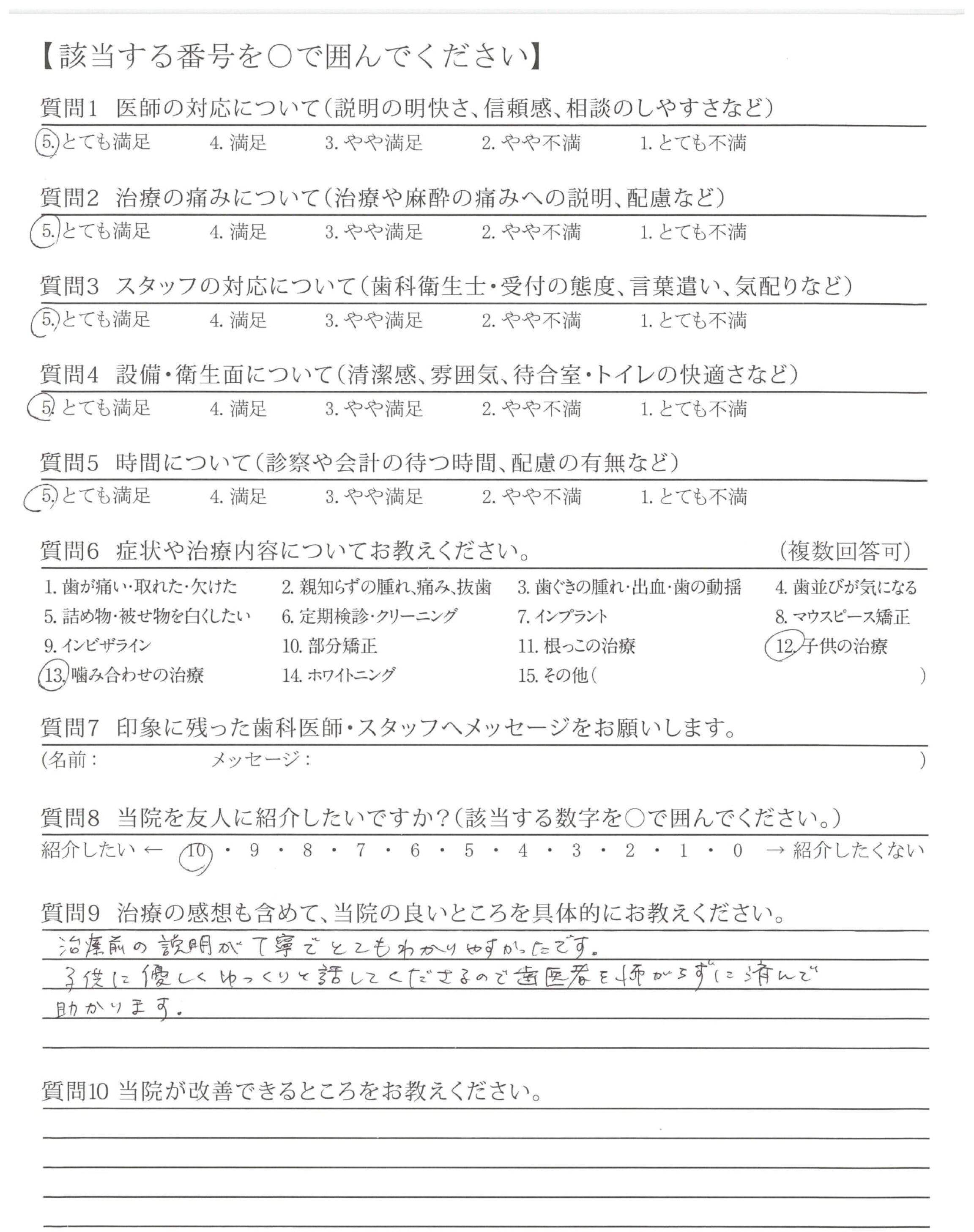 | 治療の痛みへの配慮 | ![]() ![]() ![]() ![]() 4.65 |