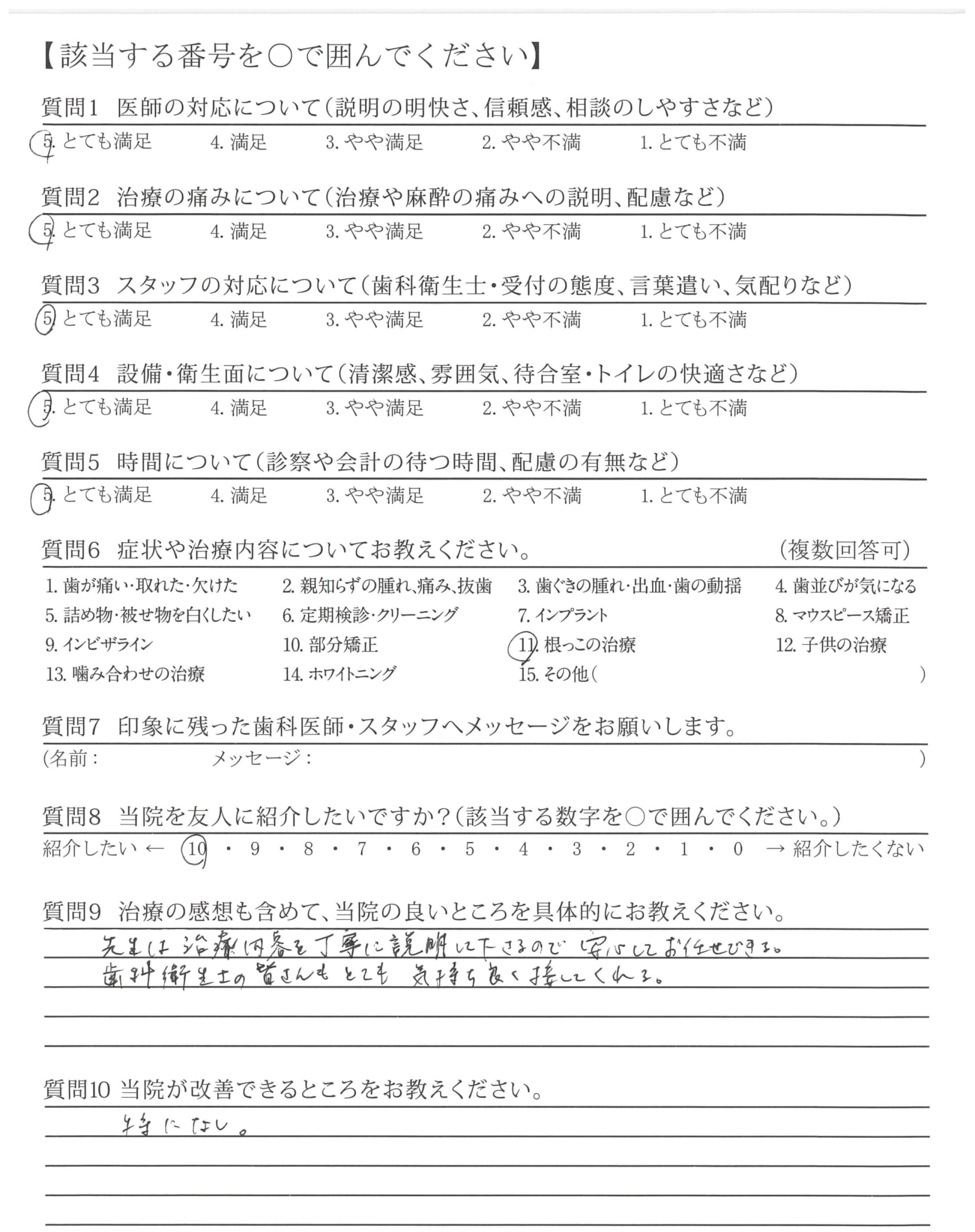 ・とても親切で、丁寧に向き合って下さいました。あきらめることなく治療して下さっている感じが伝わってきて安心して通うことができました。ありがとうございます。