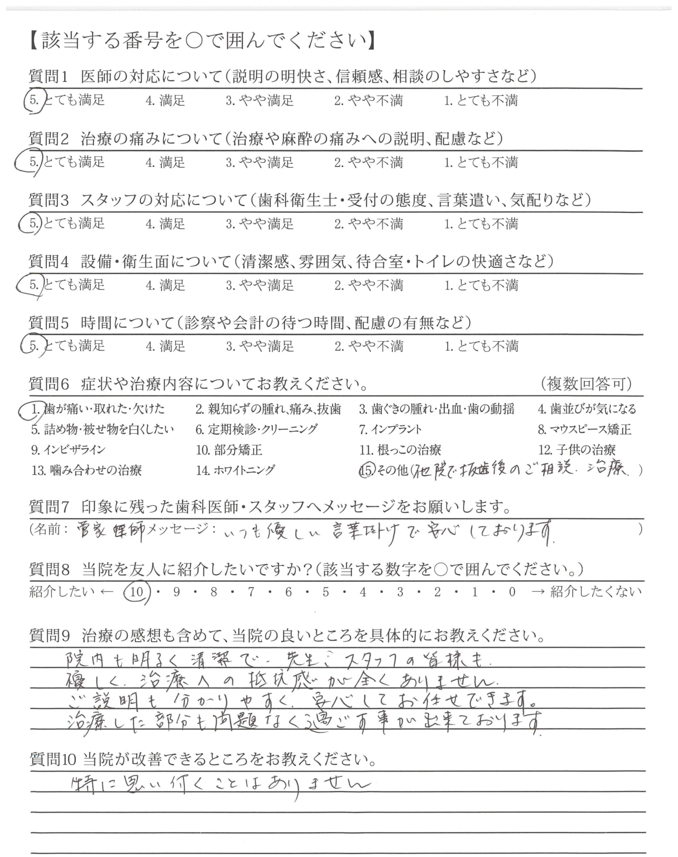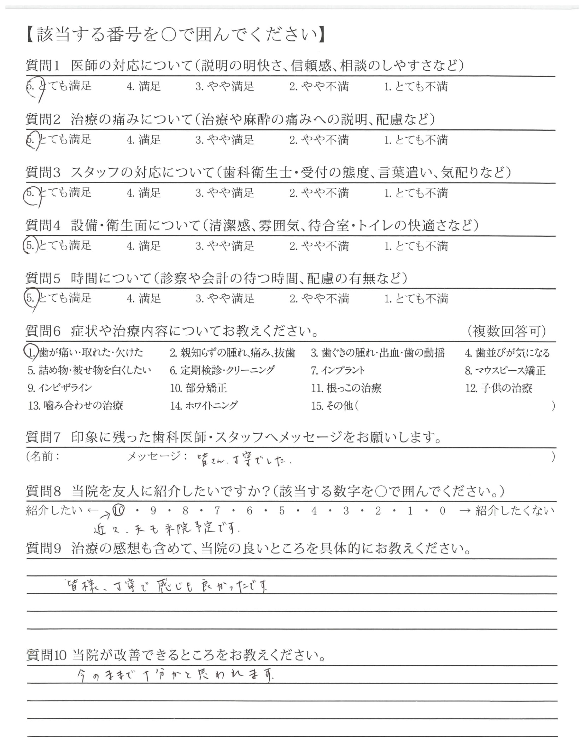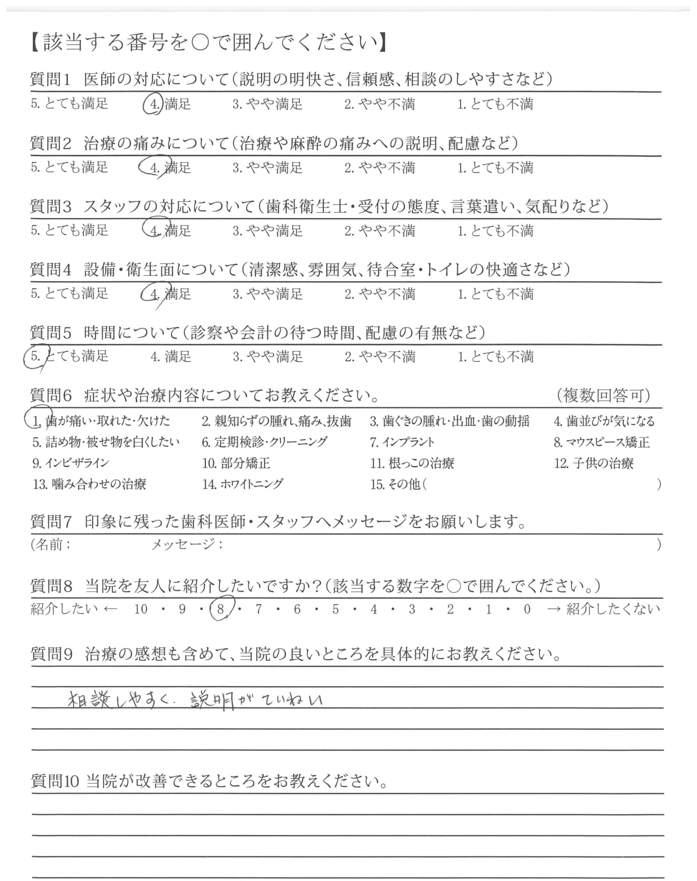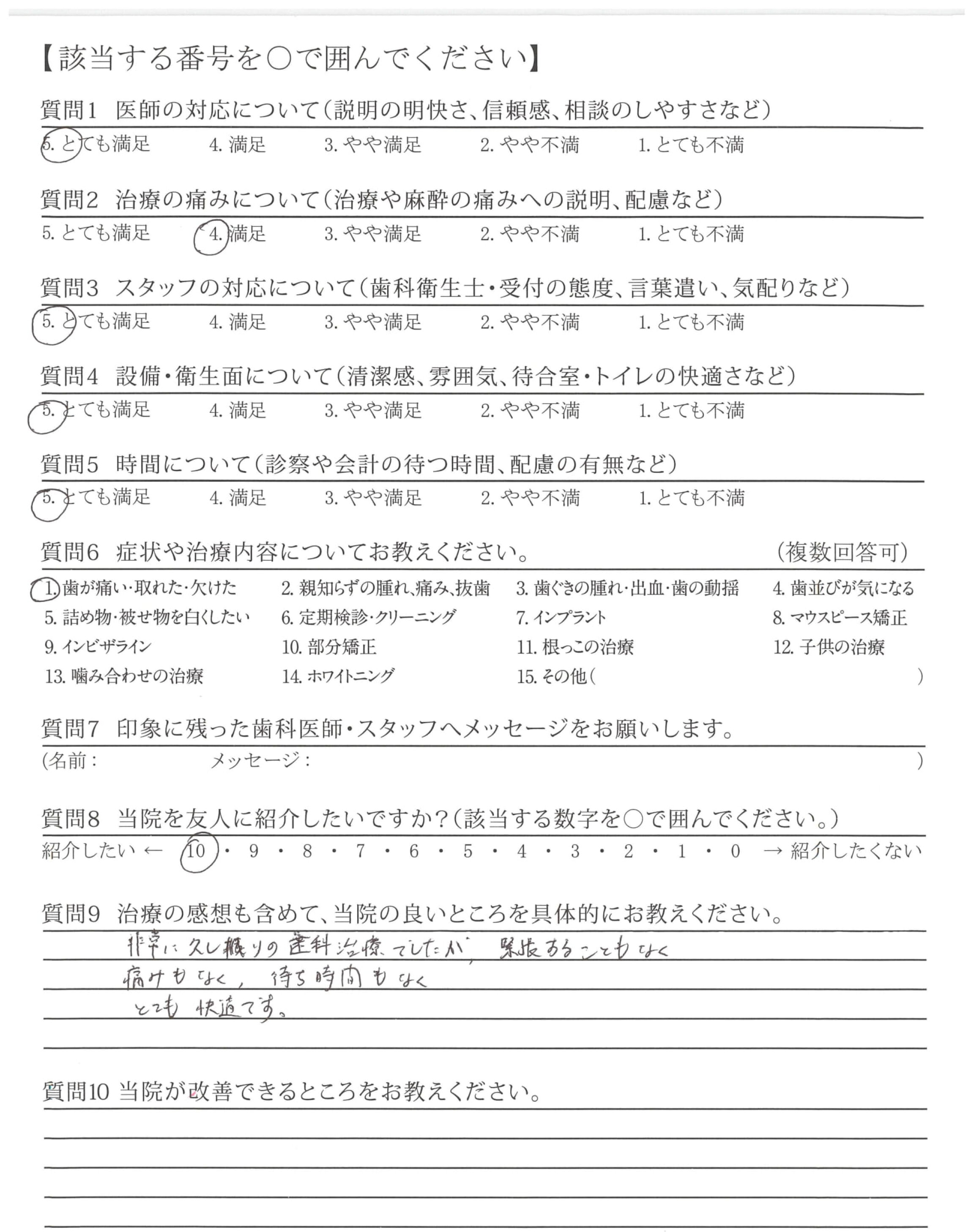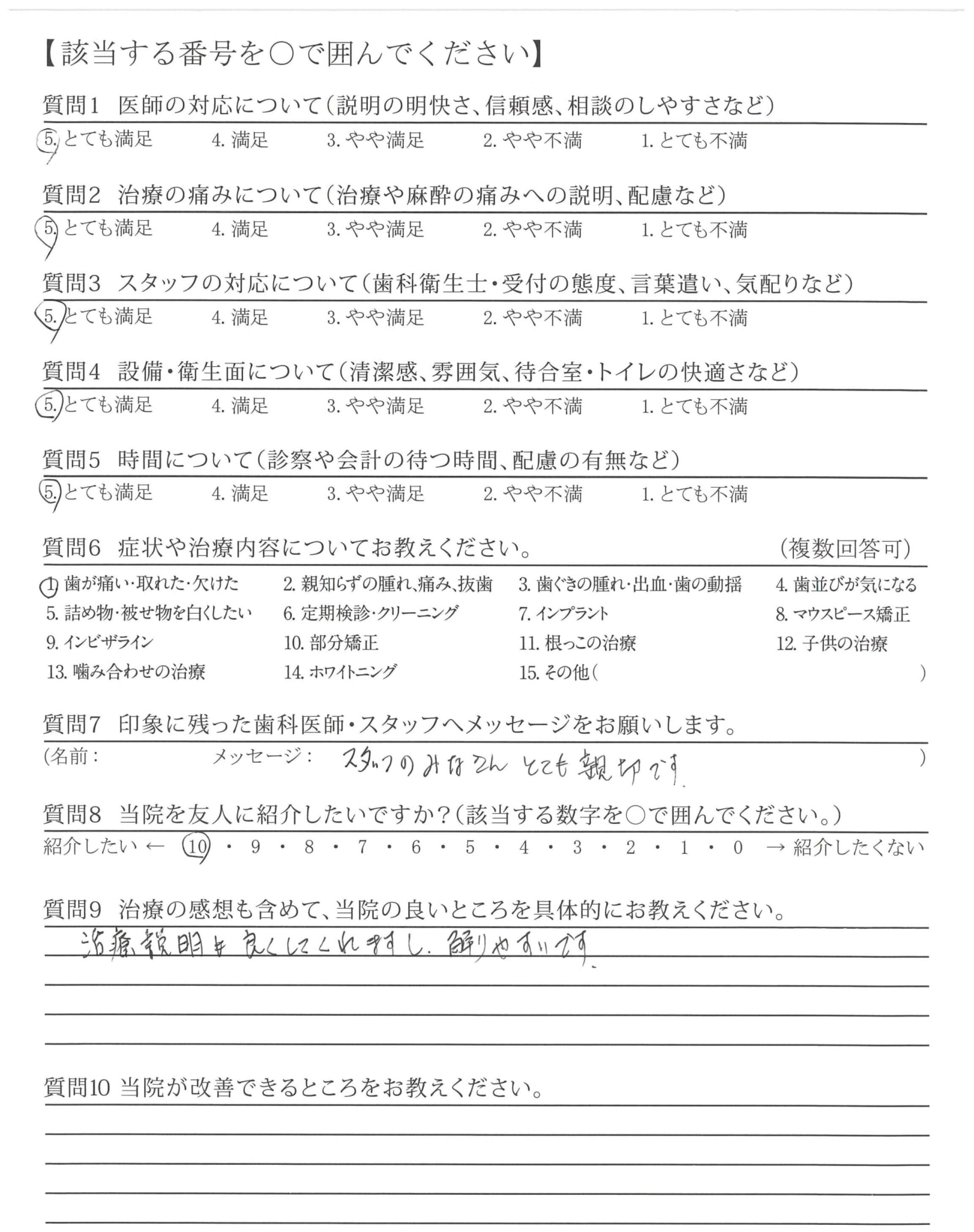 痛みにも配慮していただき、安心して治療して頂きました。