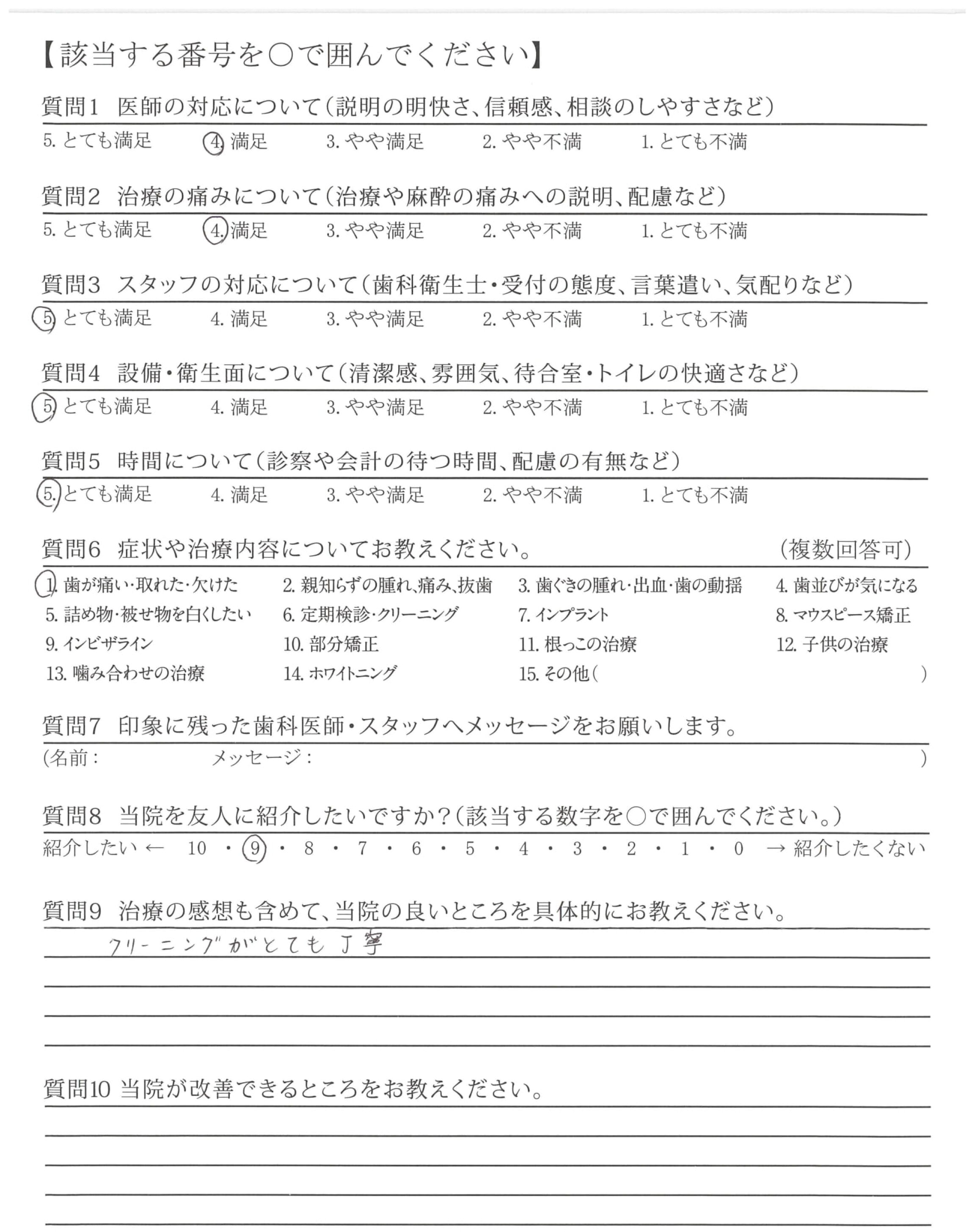 ・定期検診時、毎回クリーニングはもちろんですが、歯の状態についての説明も!!ていねいに対応していただけるので最高です。