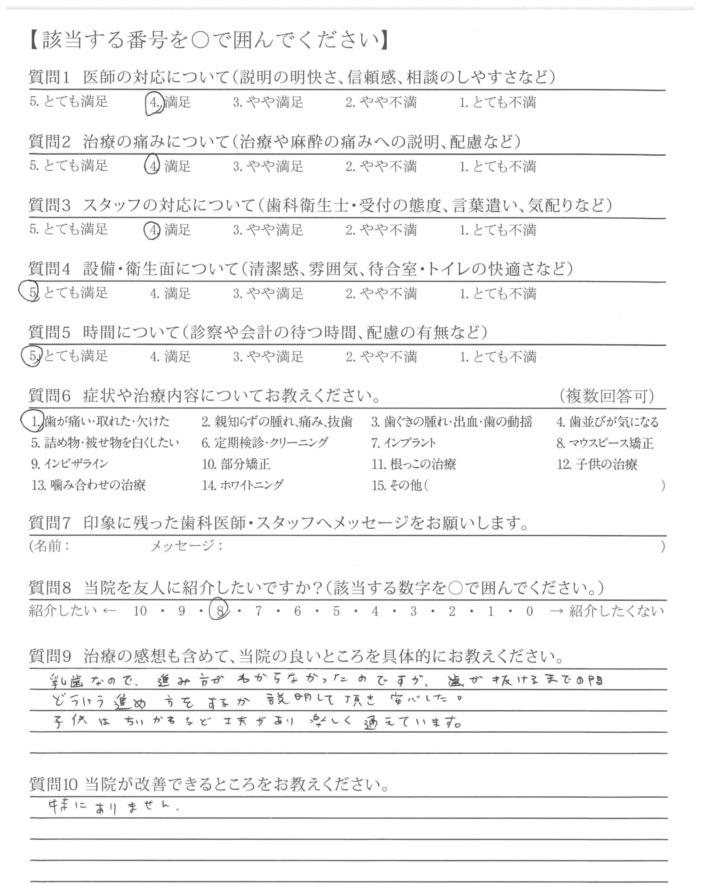 乳歯なので、進み方がわからなかったのですが、歯が抜けるまでの間どういう進め方をするか説明して頂き安心した。