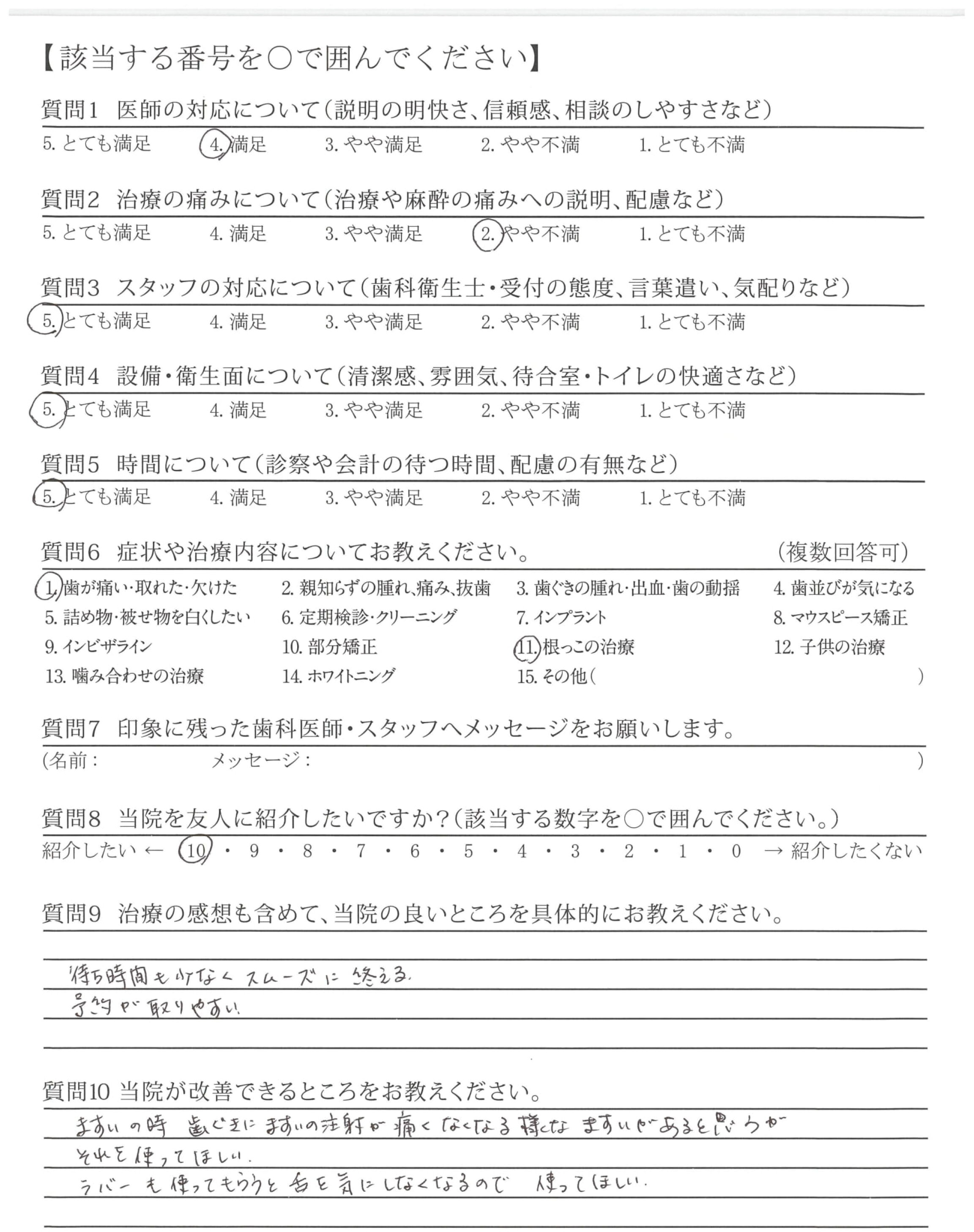 | 治療の痛みへの配慮 | ![]() ![]() ![]() ![]() 4.65 |