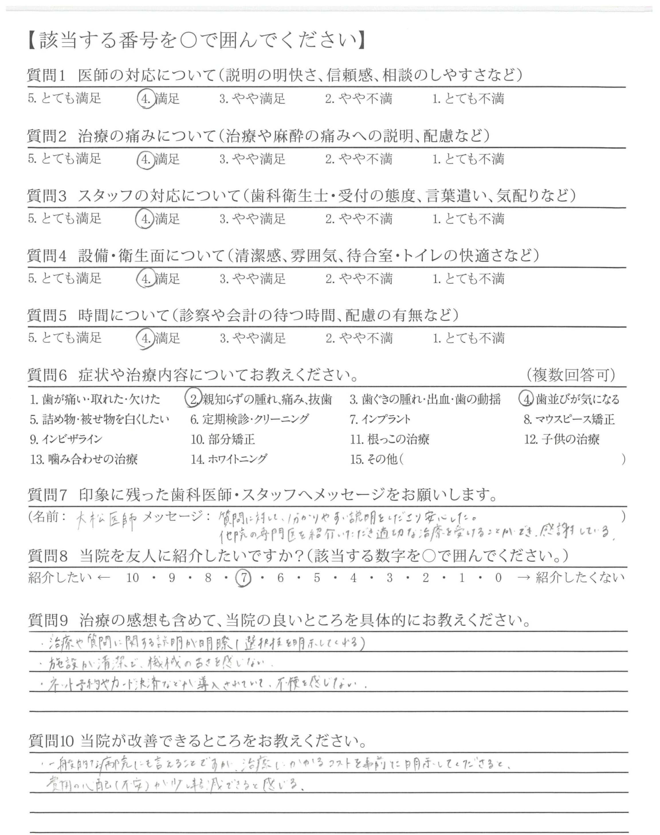 抜歯に関する相談に親身にのってくださりありがたかったです。
