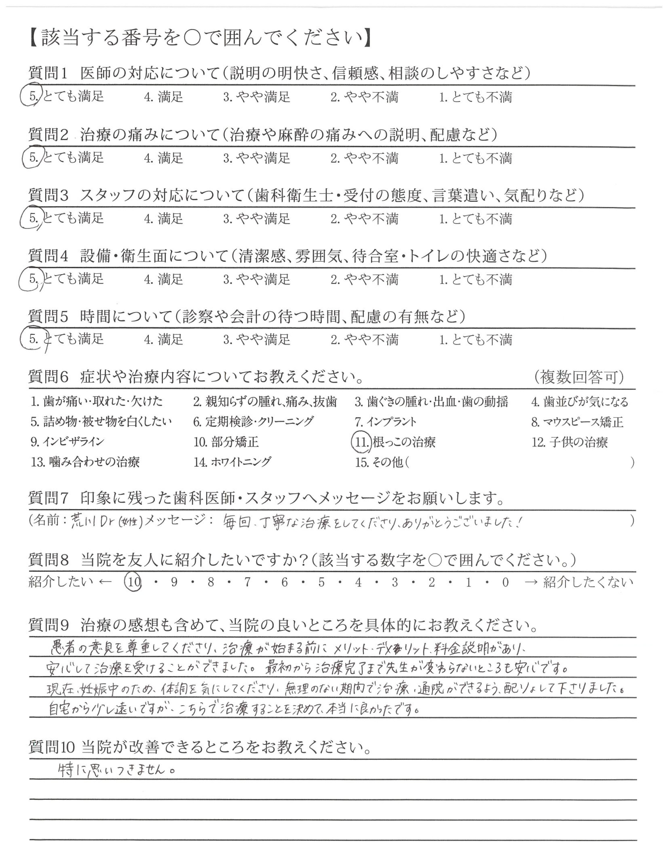 先生もスタッフの皆さんもとても優しく丁寧で今のままで充分満足です。