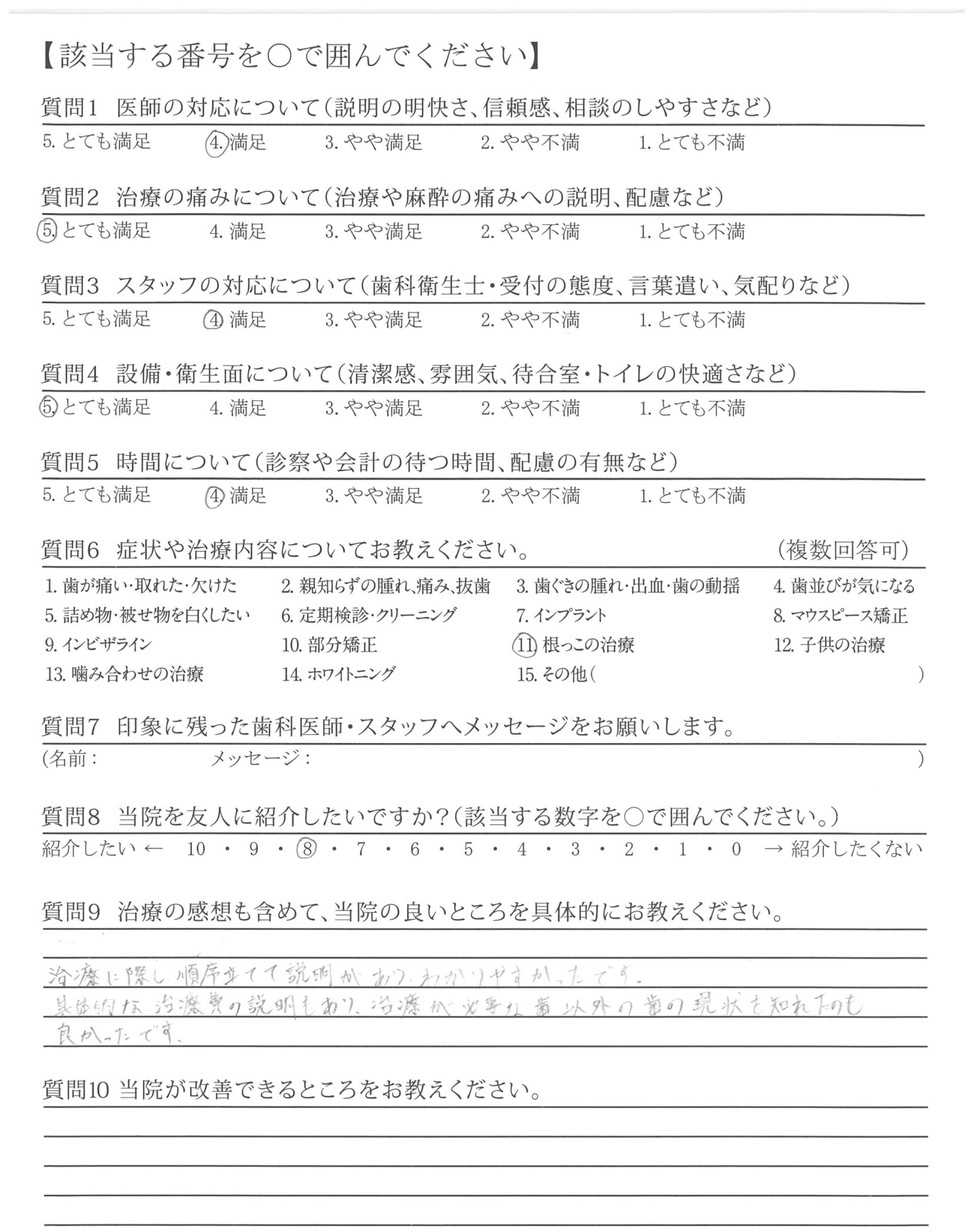 先生が、今後の治療の方向性をよく説明して下さる事で4年に渡る治療でしたが、無事終える事ができました。