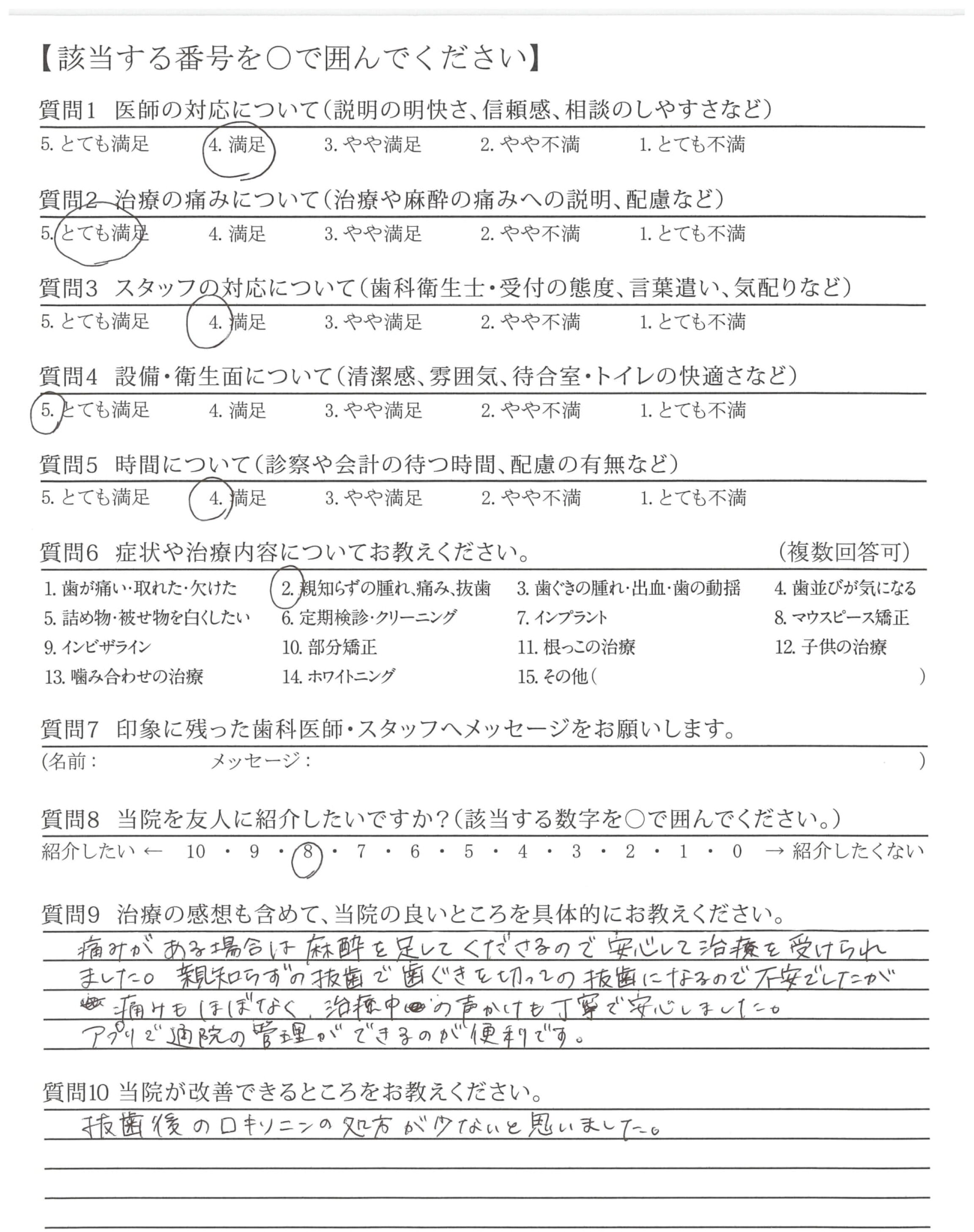 治療前の説明がとても丁寧で、安心して抜歯をお任せできた。