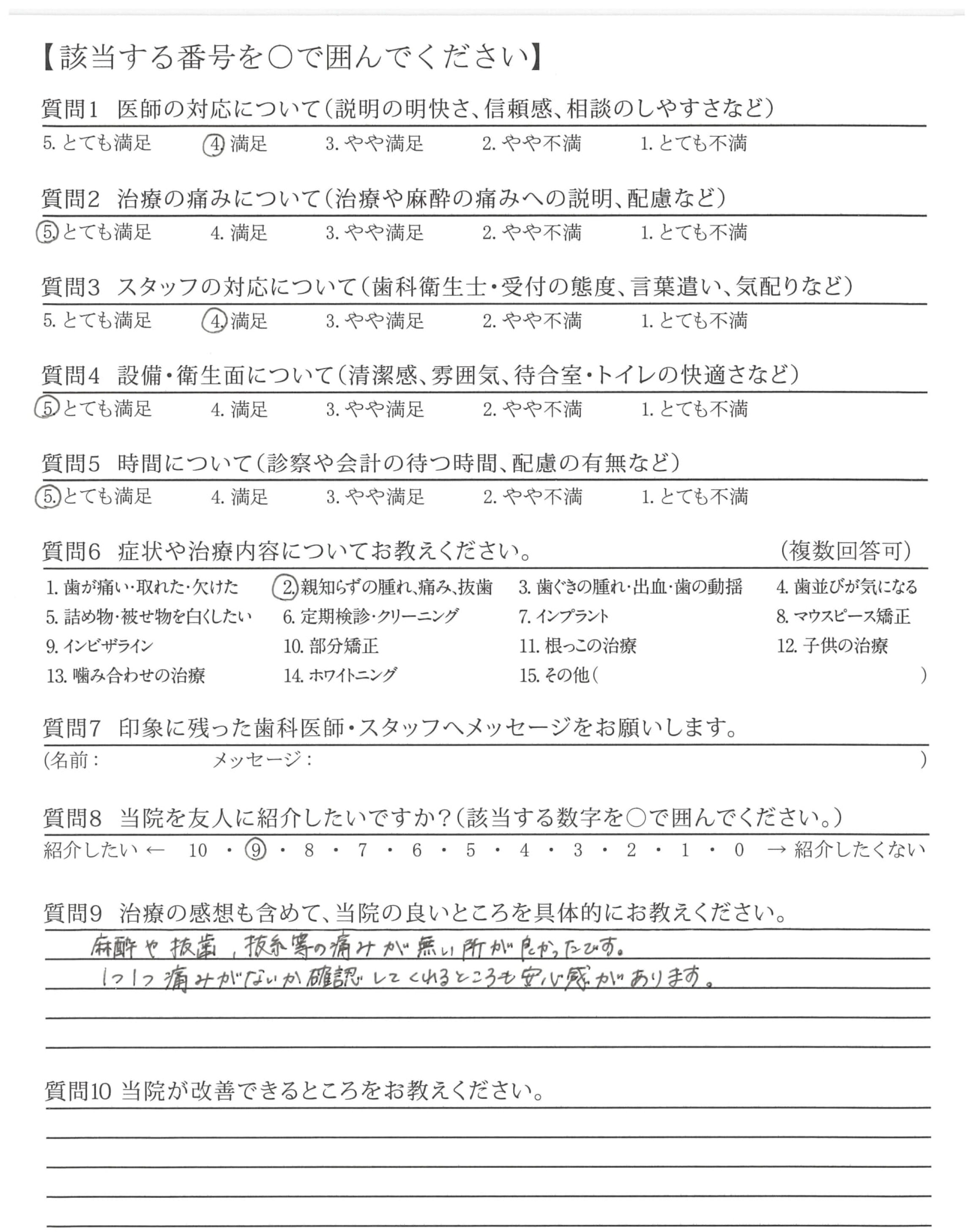 痛みの有無についても、都度聞いてくださり、それぞれの患者に合わせてくれてると感じた。