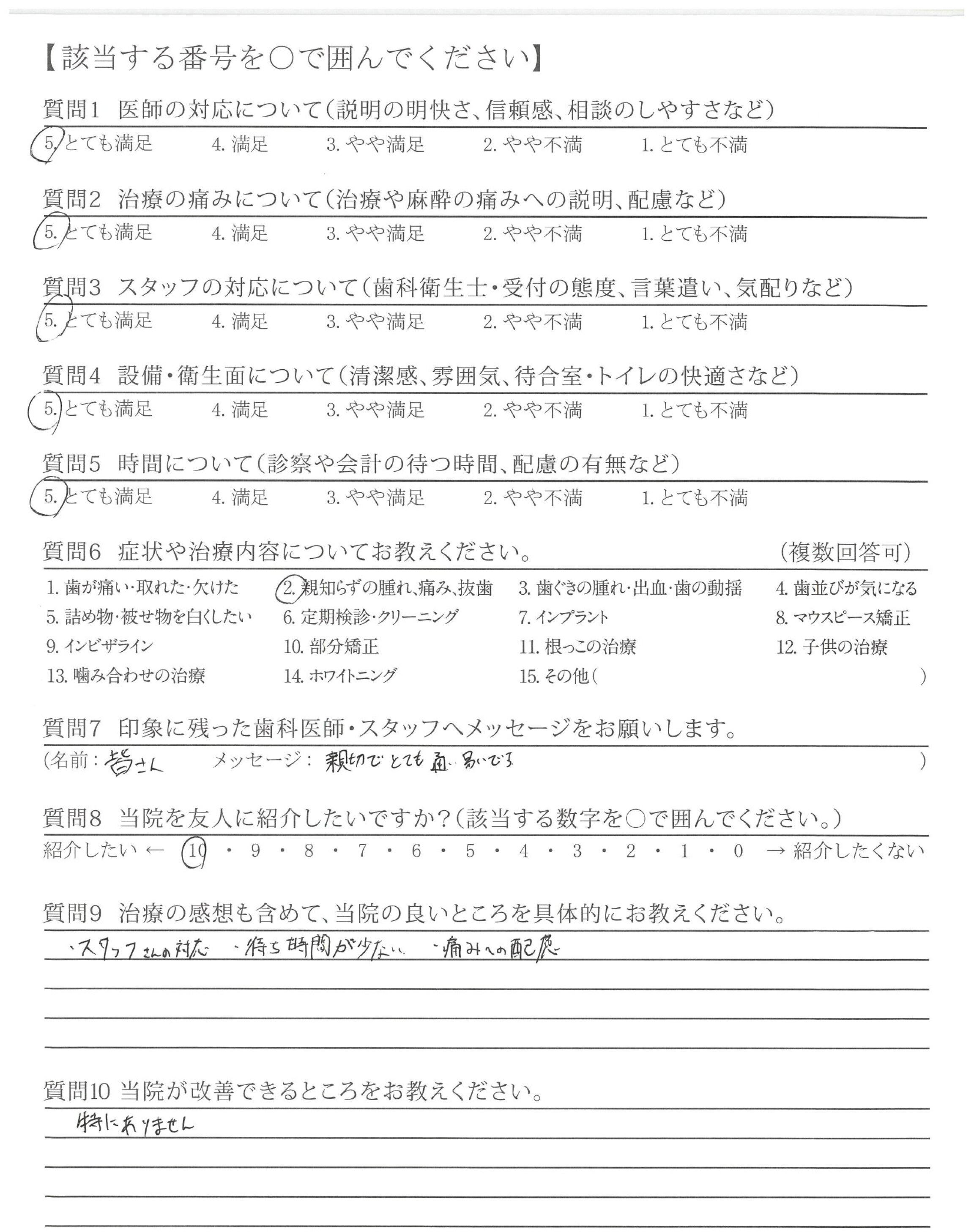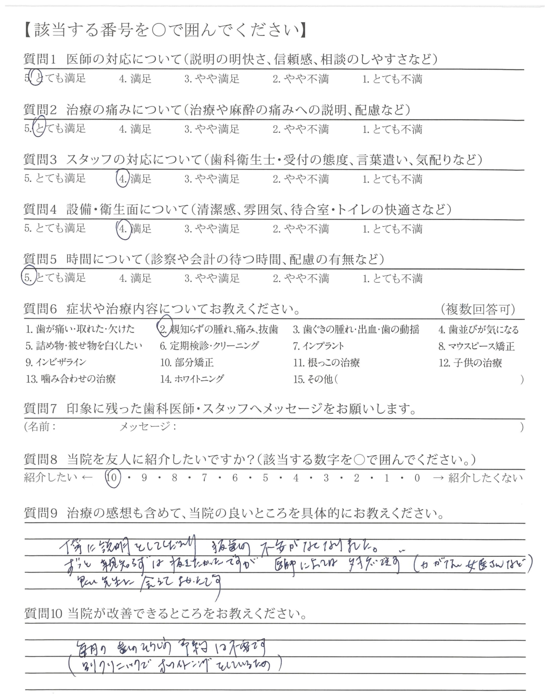 いつも丁寧に説明してくださり親知らずの治療もありがとうございました。