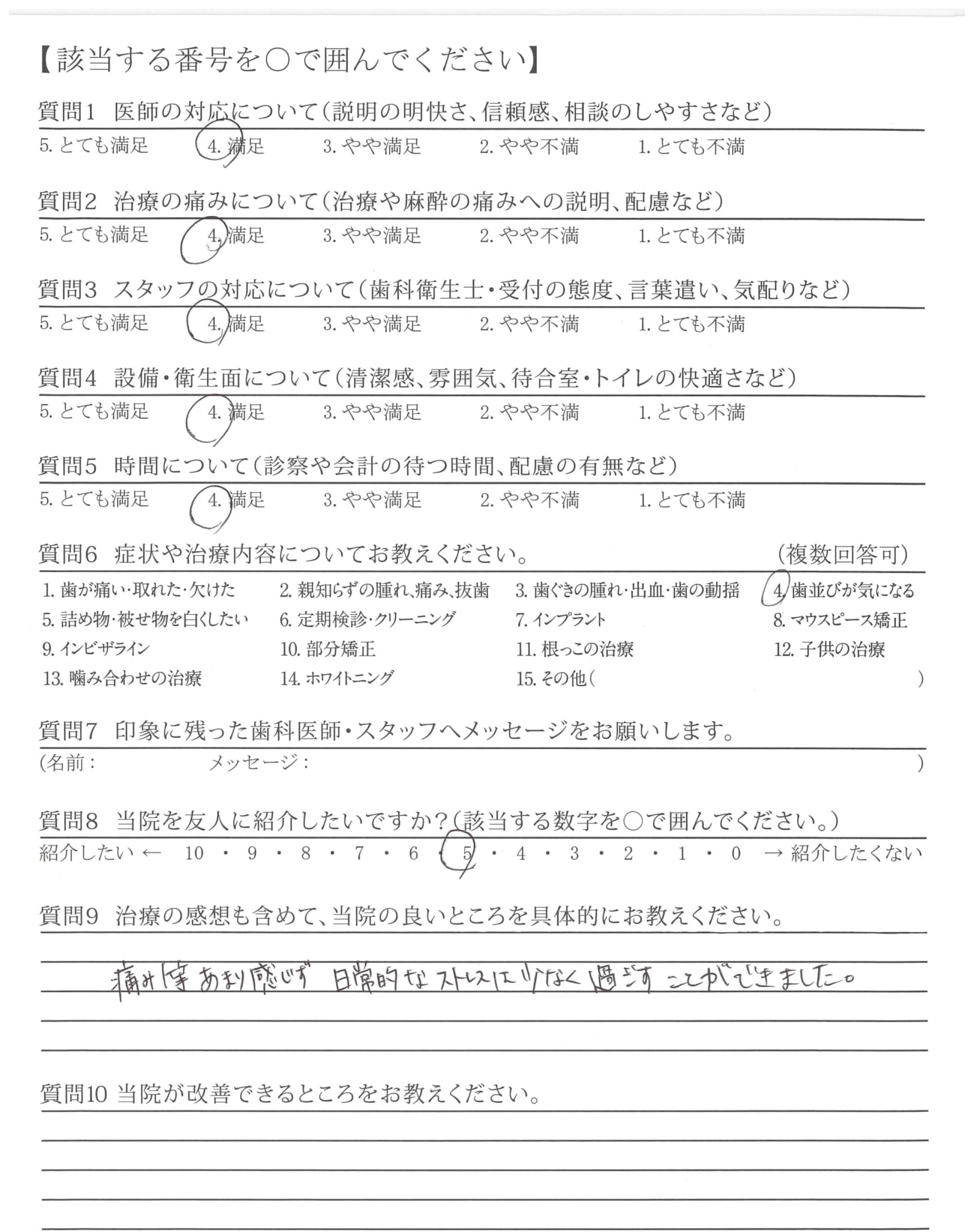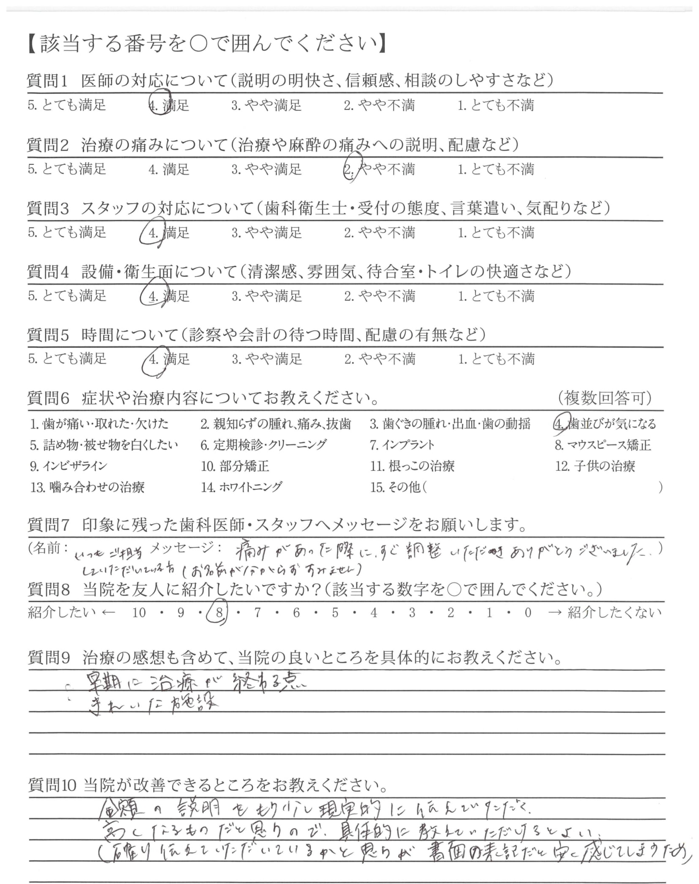 | 治療の痛みへの配慮 | ![]() ![]() ![]() ![]() 4.20 |
