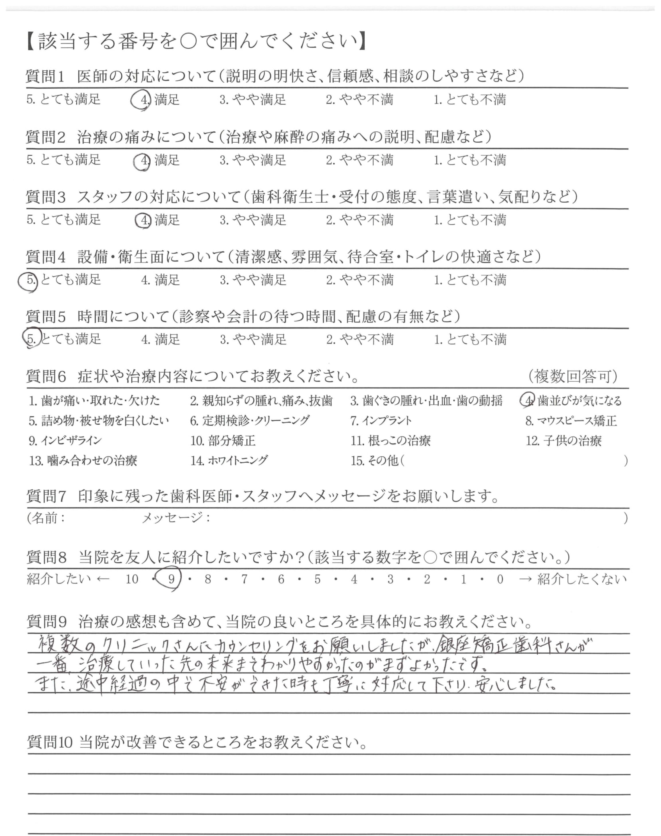 複数のクリニックさんにカウンセリングをお願いしましたが、銀座矯正歯科さんが一番、治療していった先の未来までわかりやすかったのがまずよかったです。また、途中経過の中で不安ができた時も丁寧に対応して下さり、安心しました。