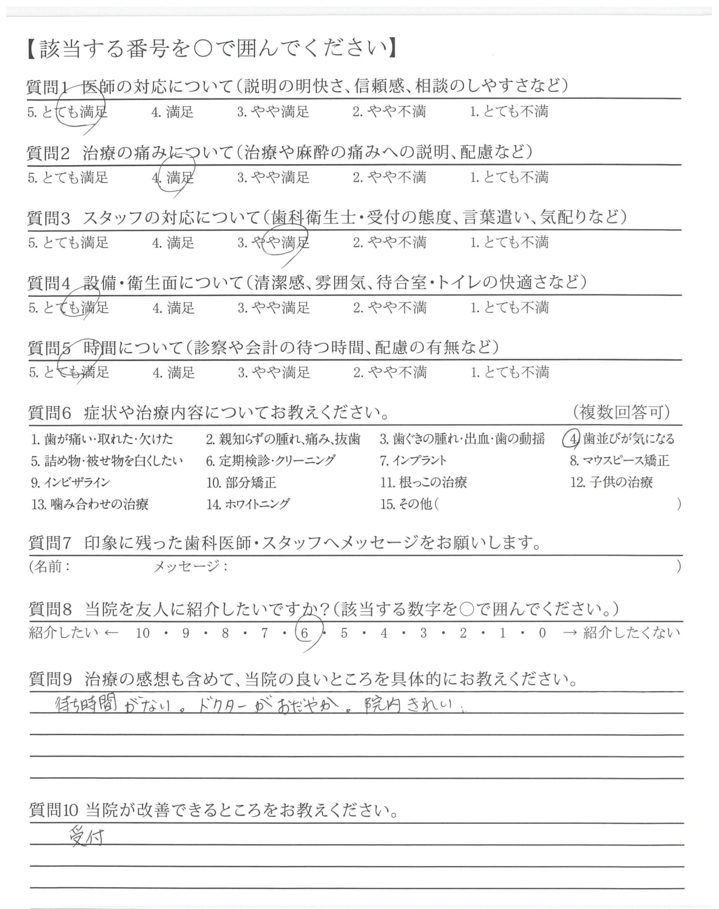 1年程前まで受付けの方が恐かった、最近は大丈夫でした。