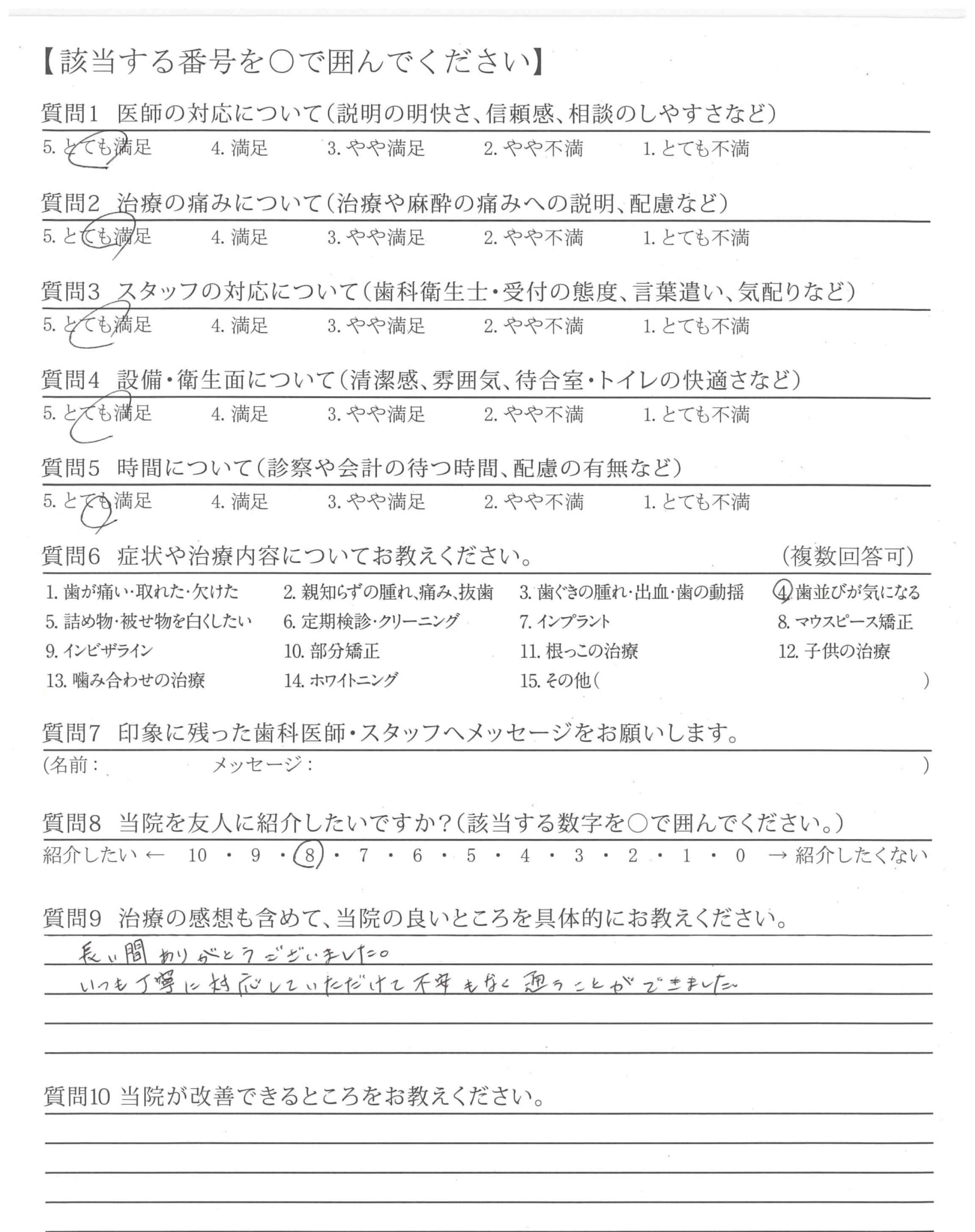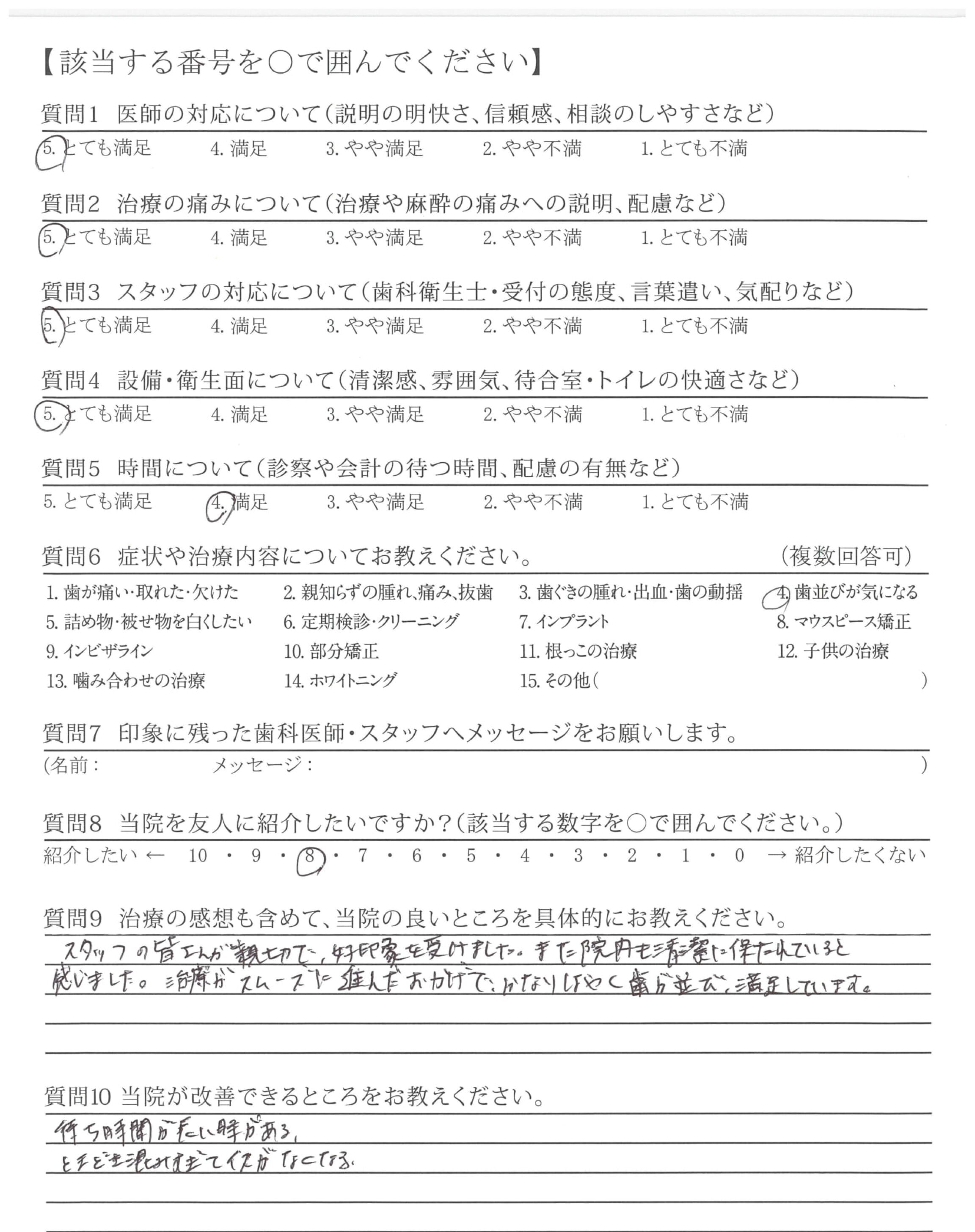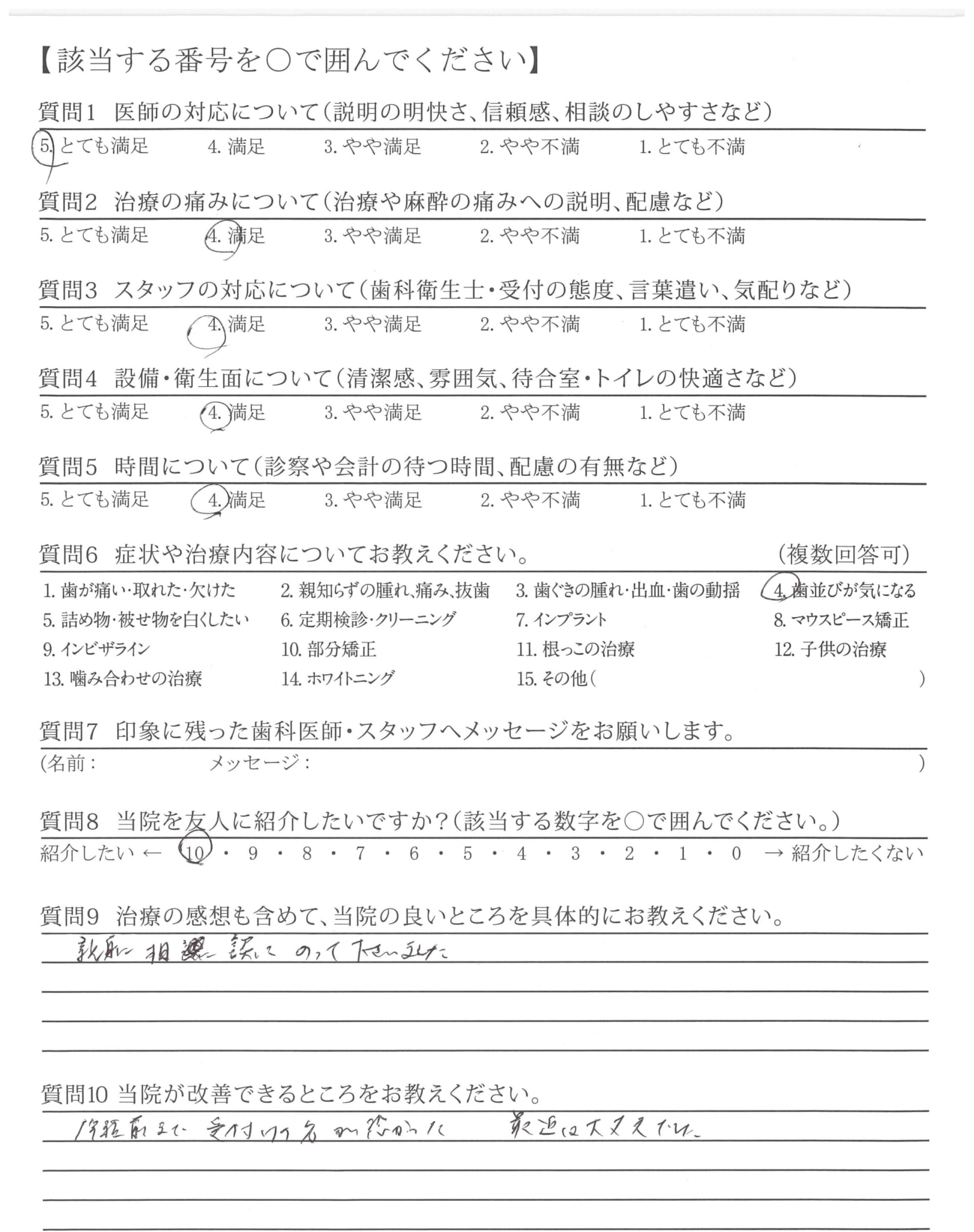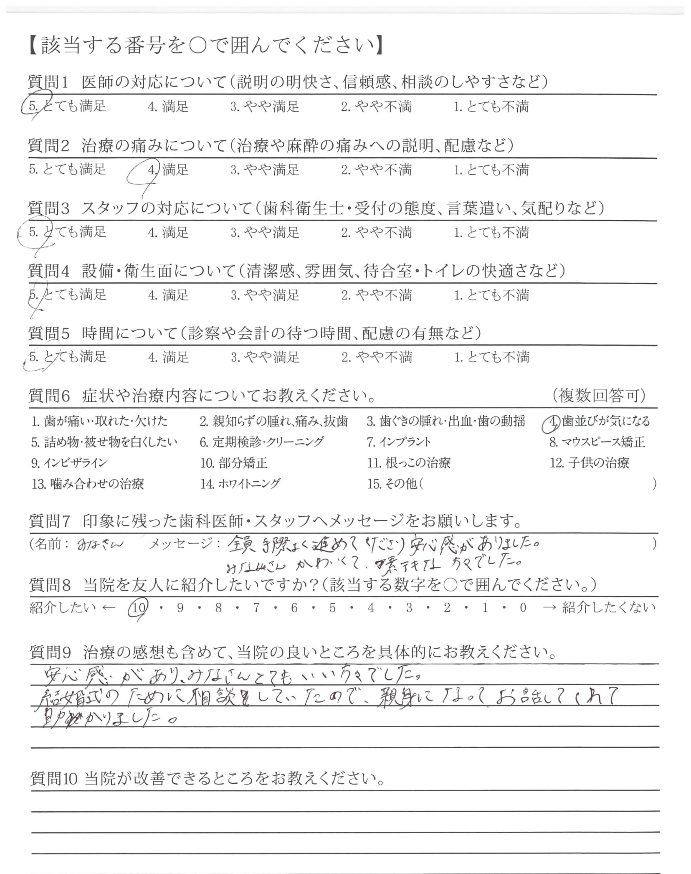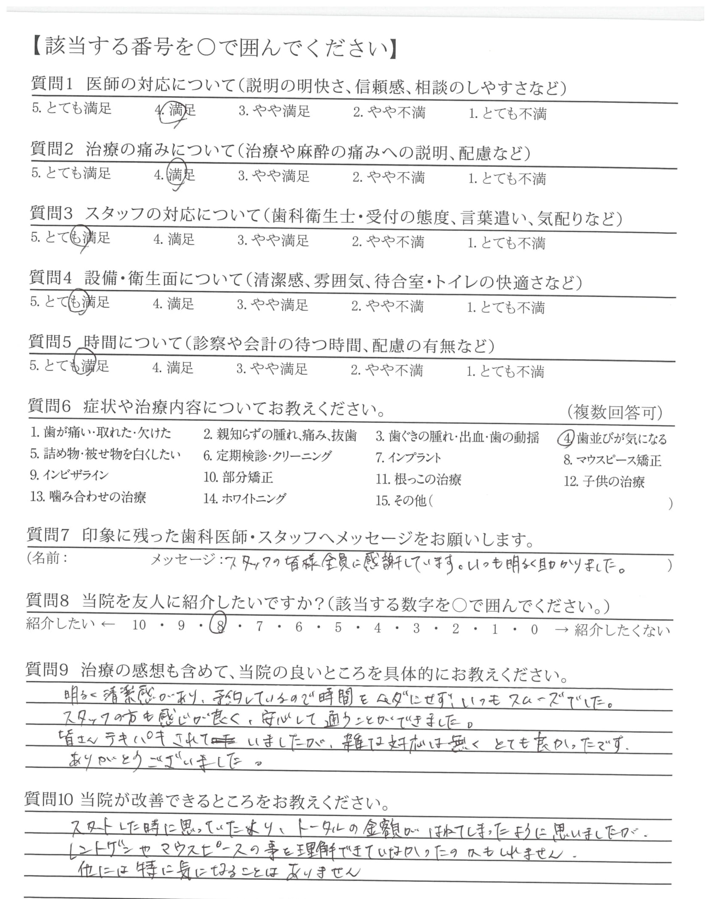 説明がわかりやすく、安心感がありました。(当初のカウンセリング~歯列矯正の段階など)