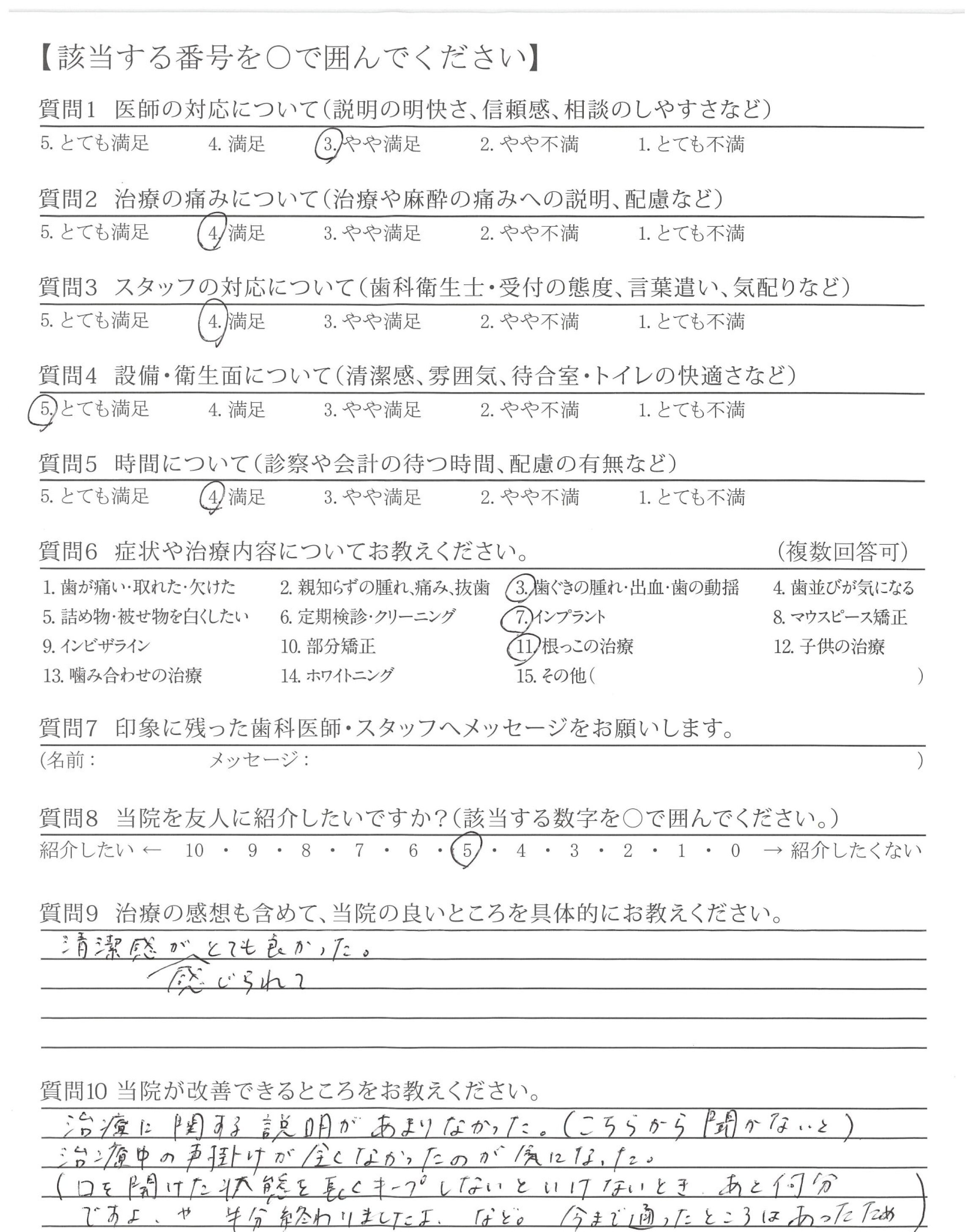 インプラント治療が特に、心配だった面を1つ1つ解消しながら進めてくれたのが良かった。