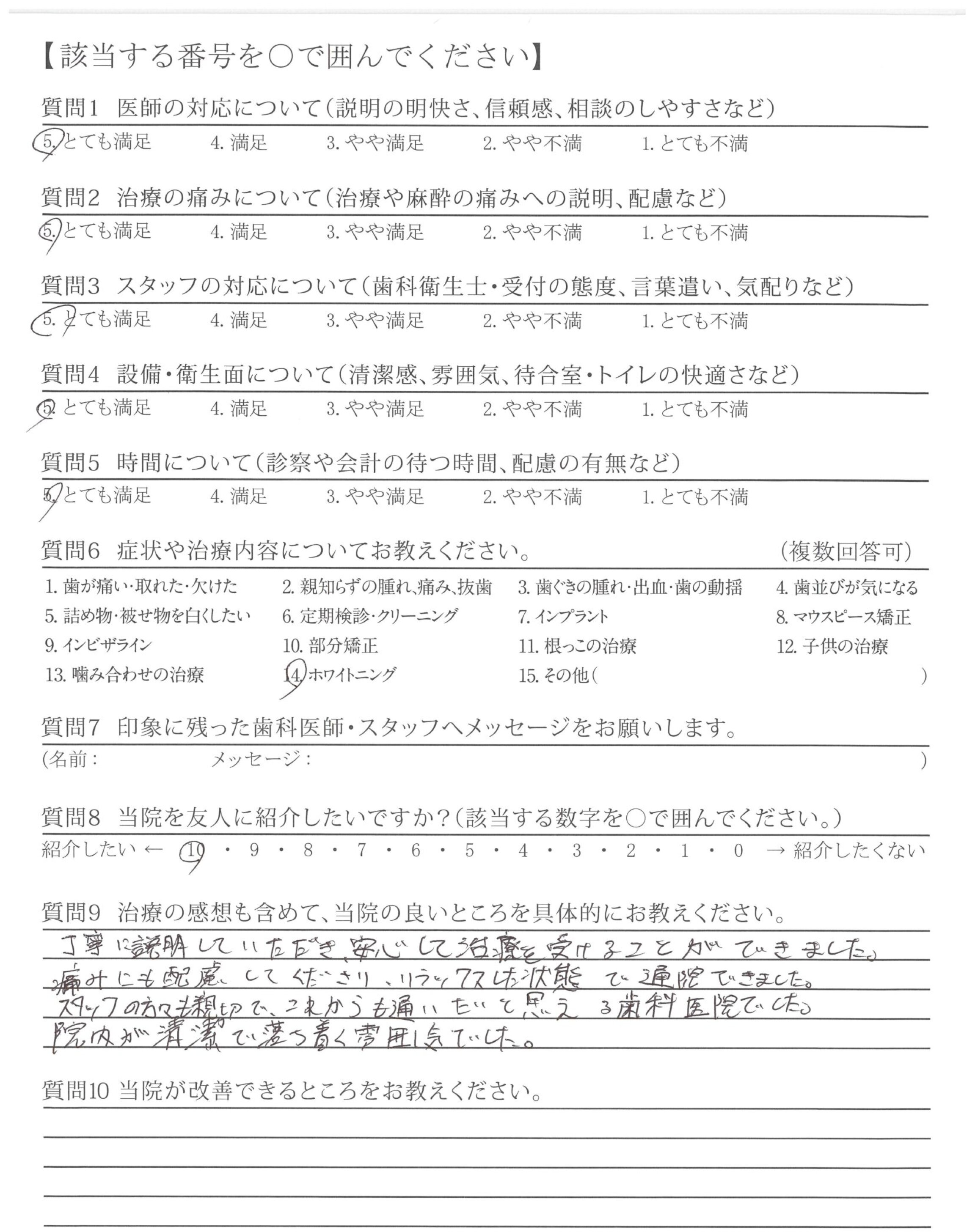 | 治療の痛みへの配慮 | ![]() ![]() ![]() ![]() 4.89 |