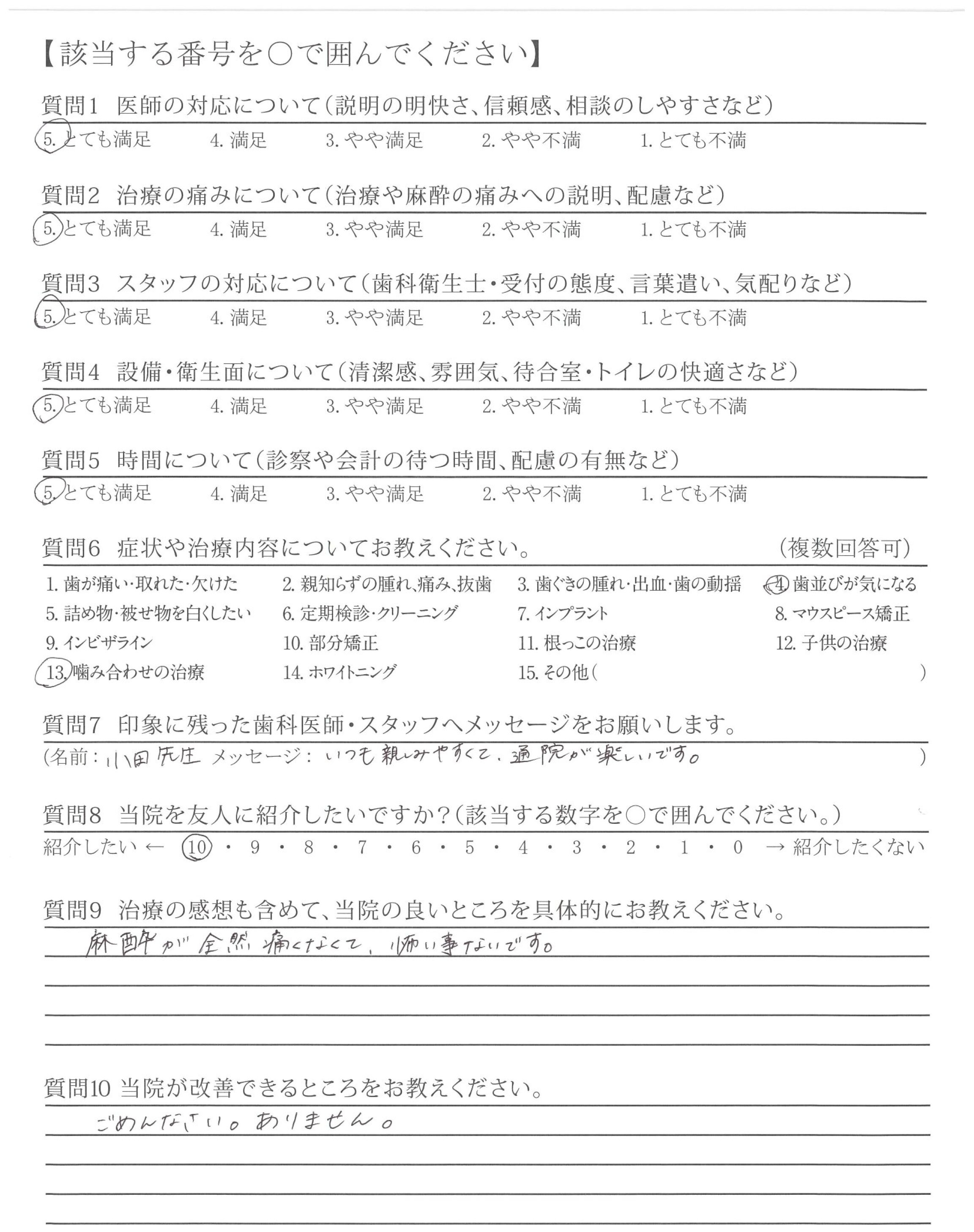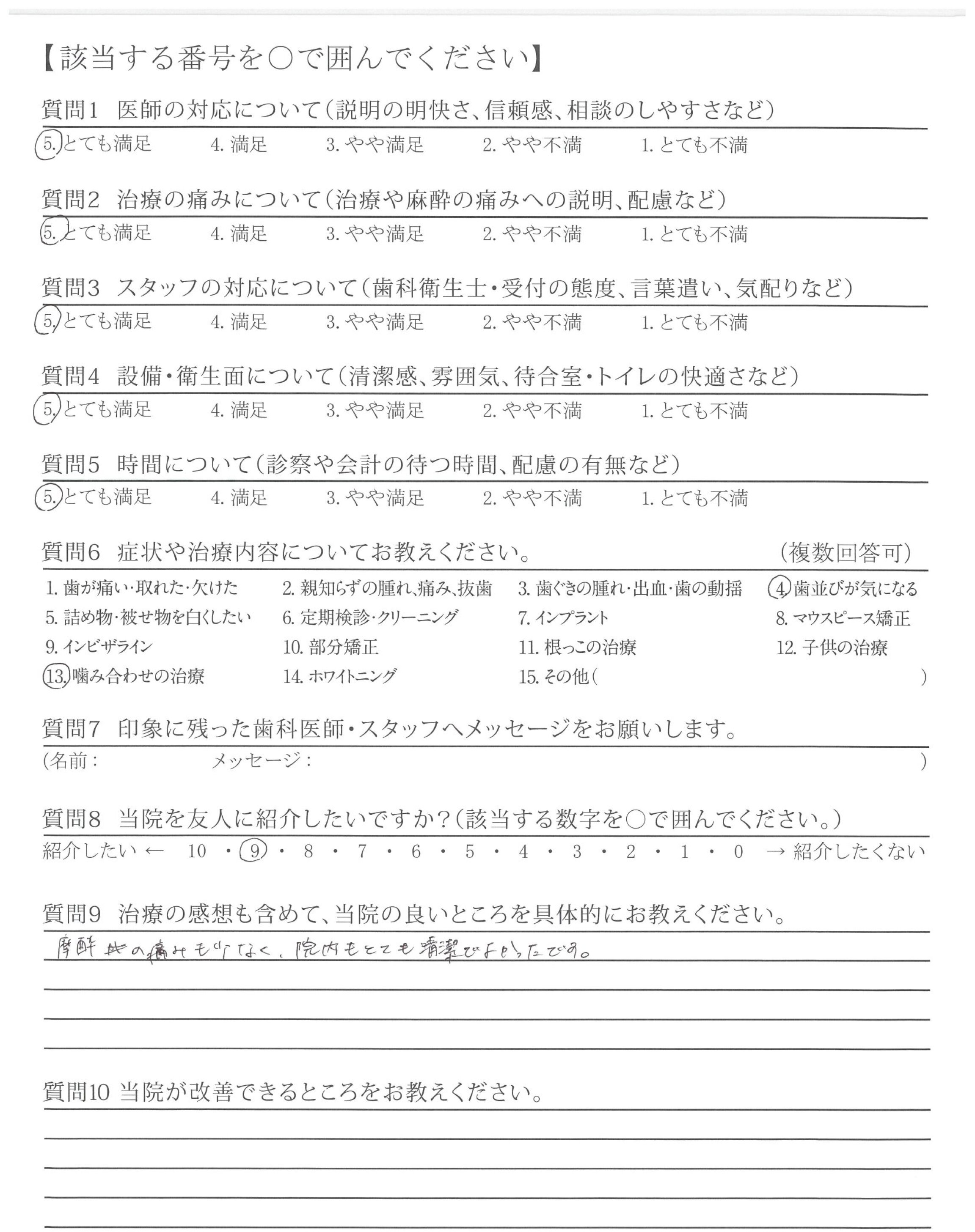| 治療の痛みへの配慮 | ![]() ![]() ![]() ![]() 4.89 |