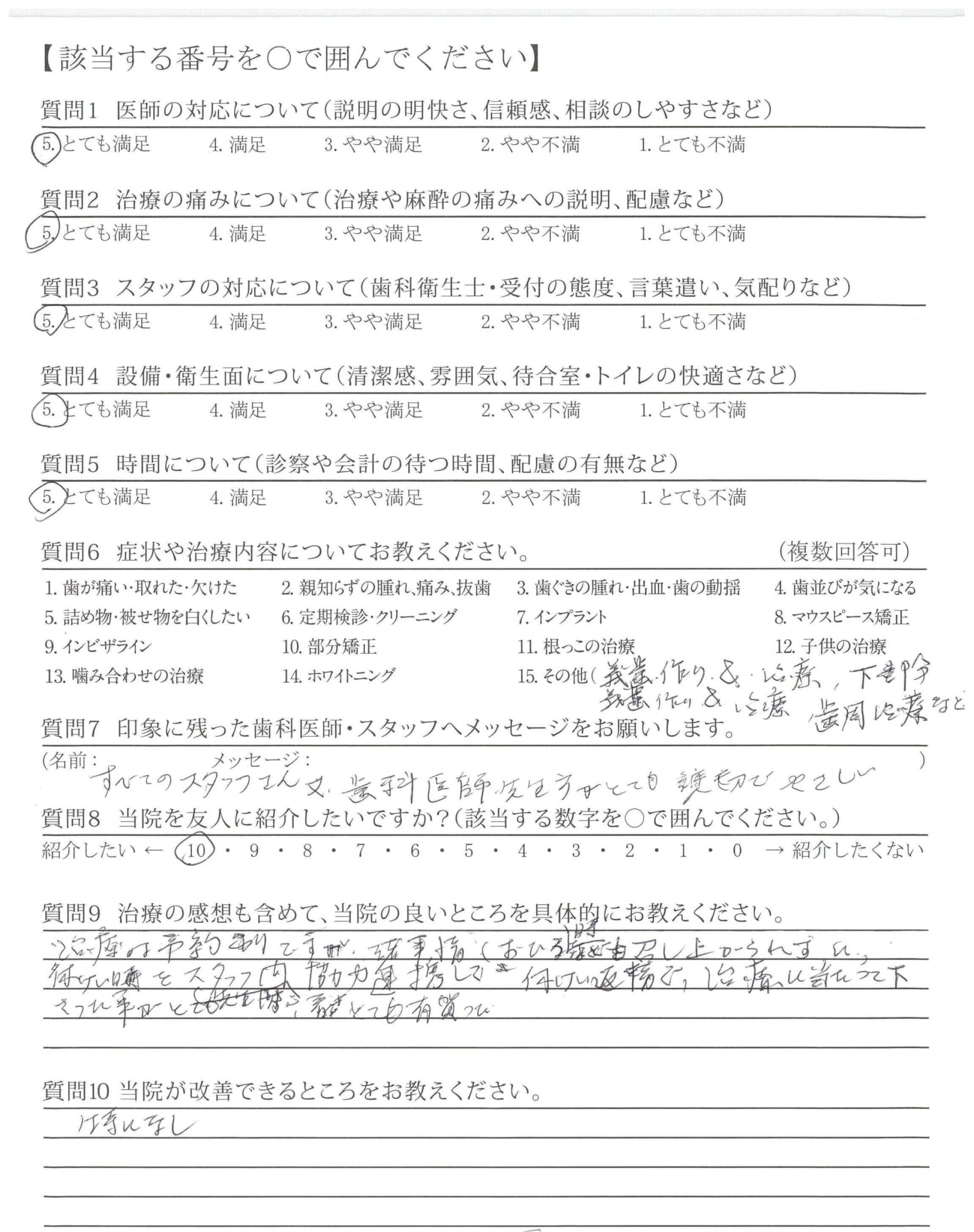 義歯の装着は初めてだったので不安がありましたが実際、装着してみたら違和感なく使用しています。