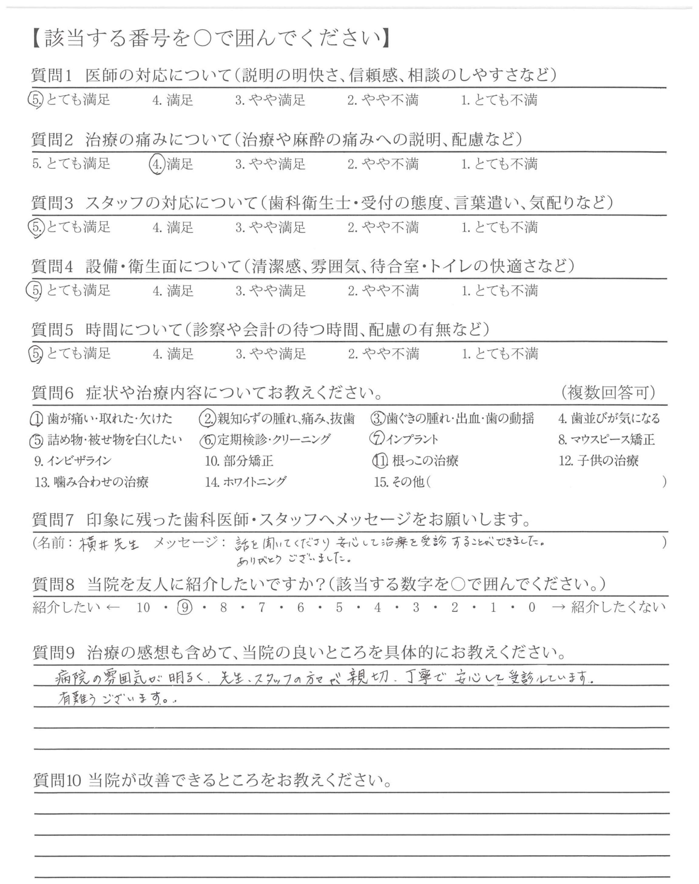 治療は痛みもなく、手早く完璧で安心して治療を受けられました。