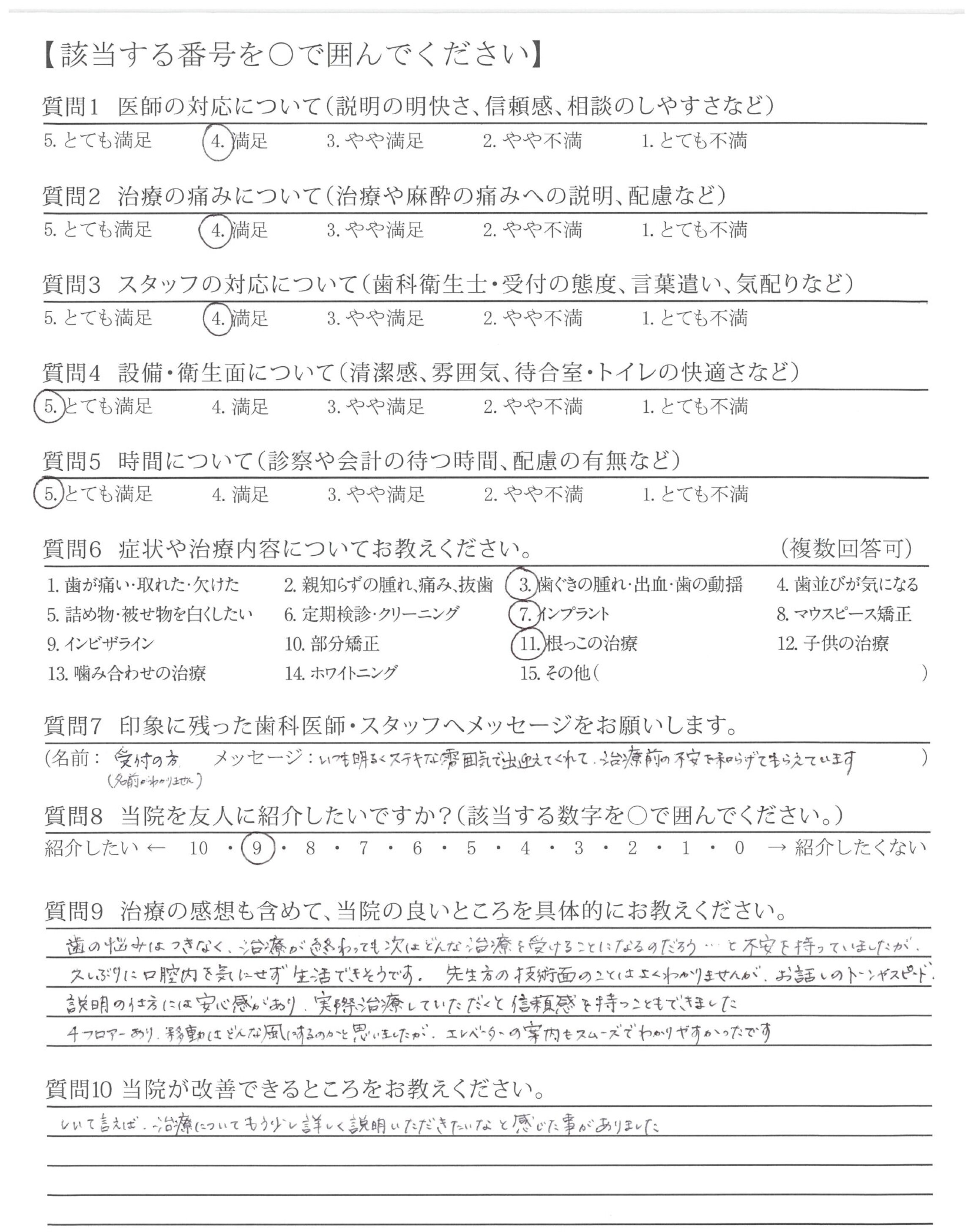 歯の根っこ治療では先生も助手の方も大変な作業だったと思いますが上手の一言です。痛みがなく良かったです。