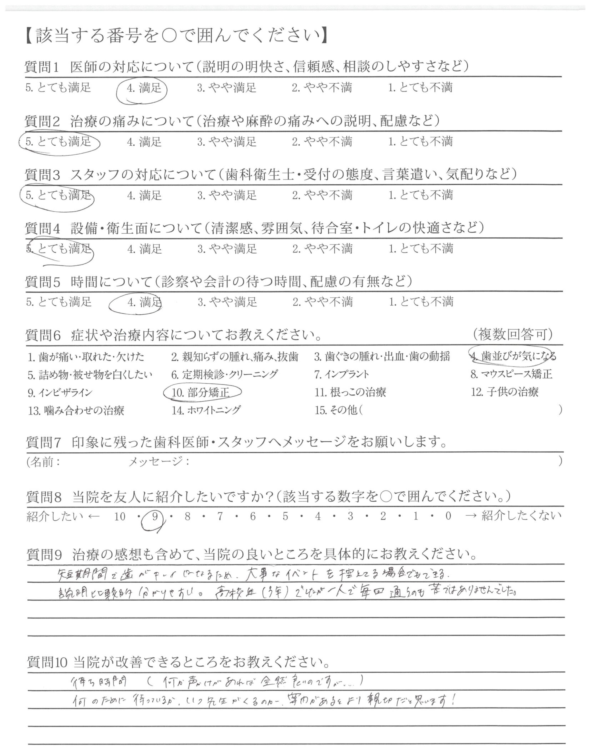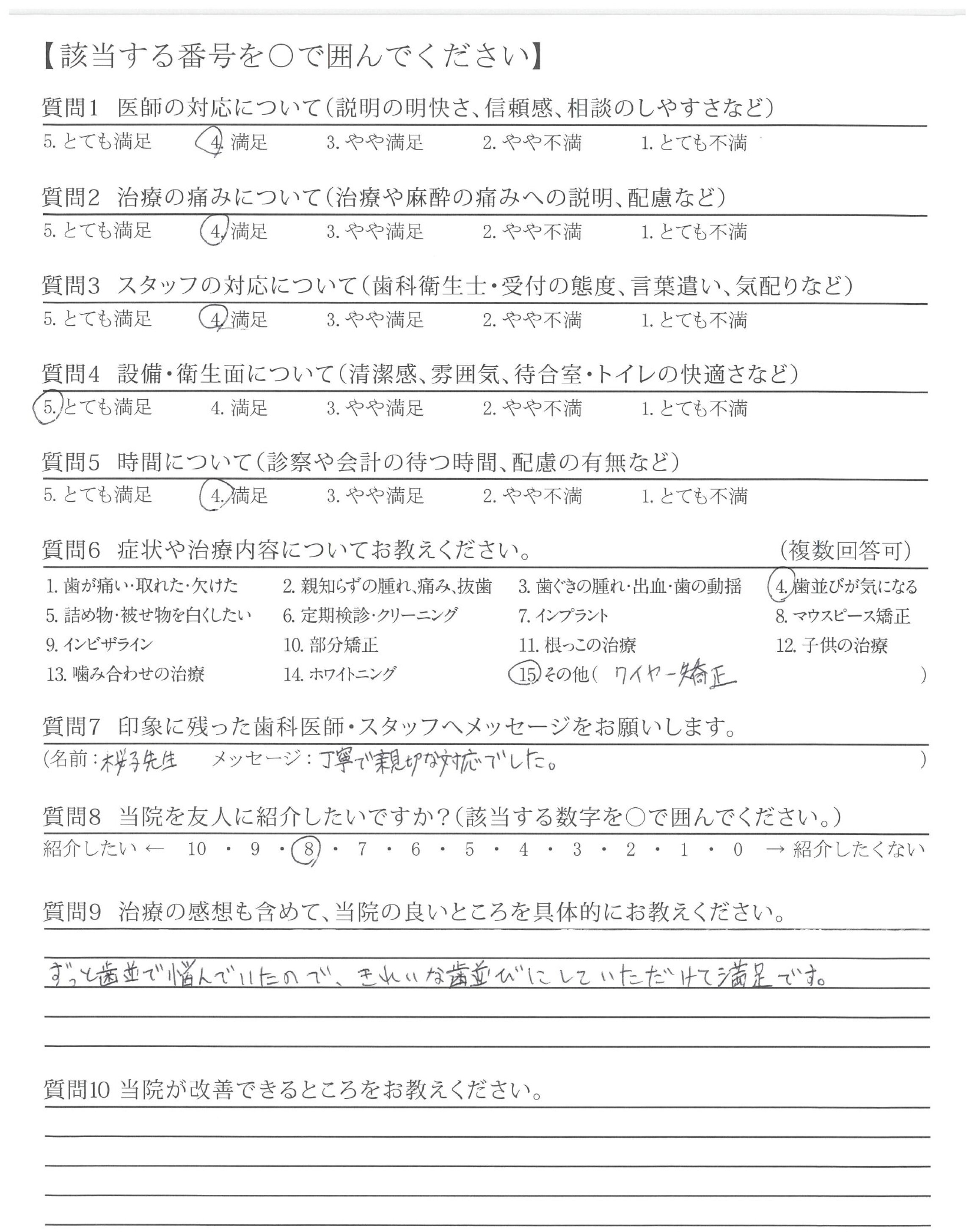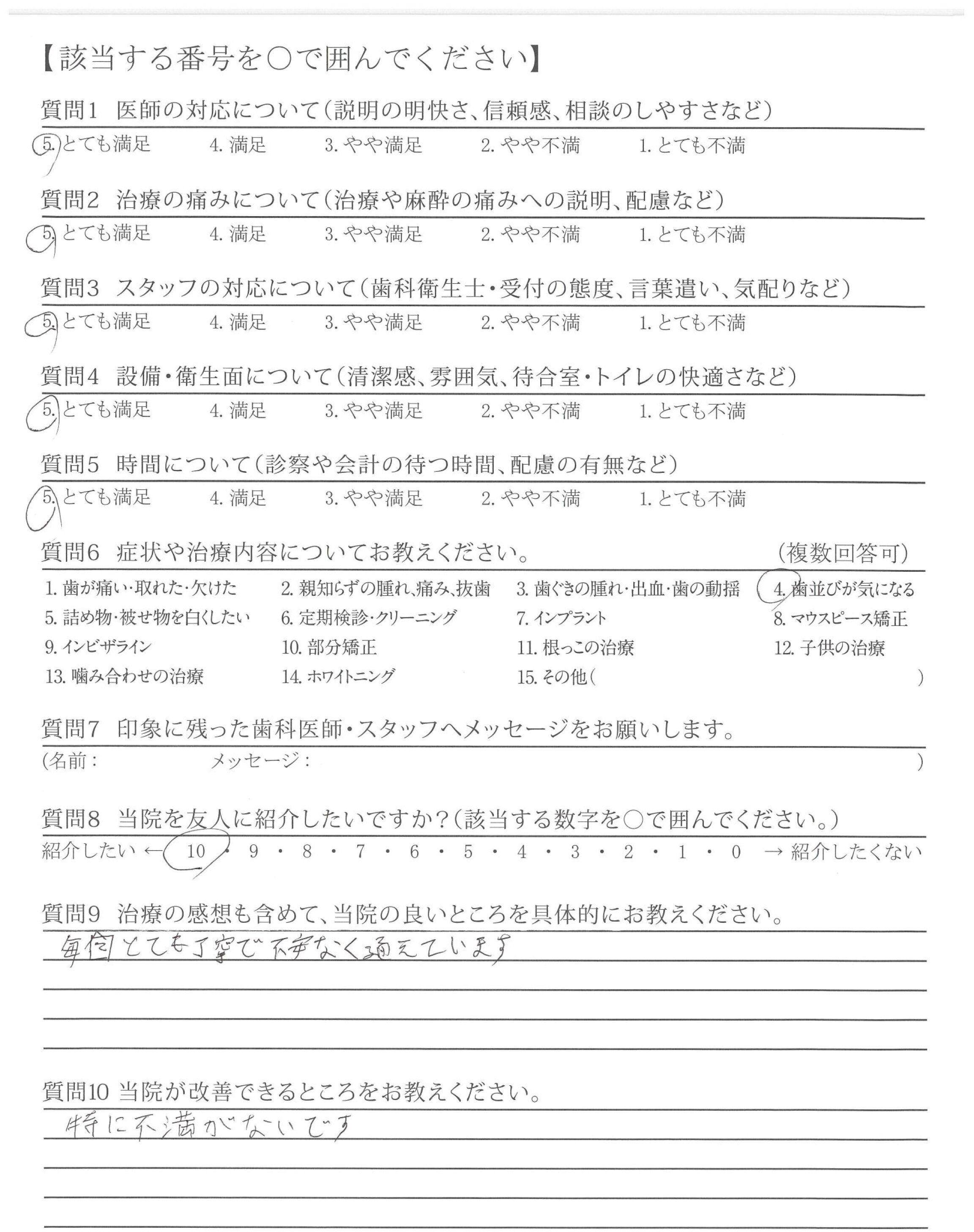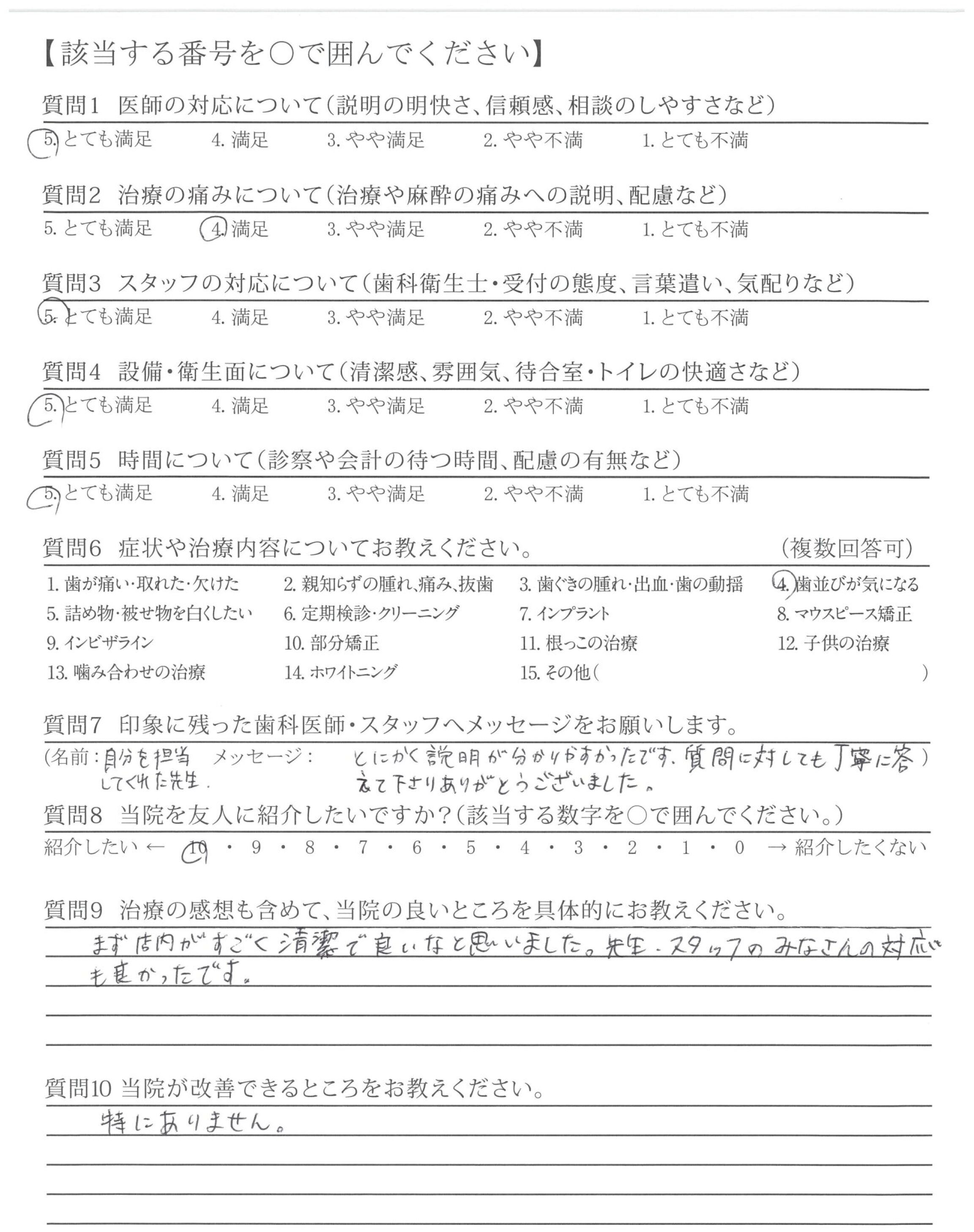 | 治療の痛みへの配慮 | ![]() ![]() ![]() ![]() 4.67 |