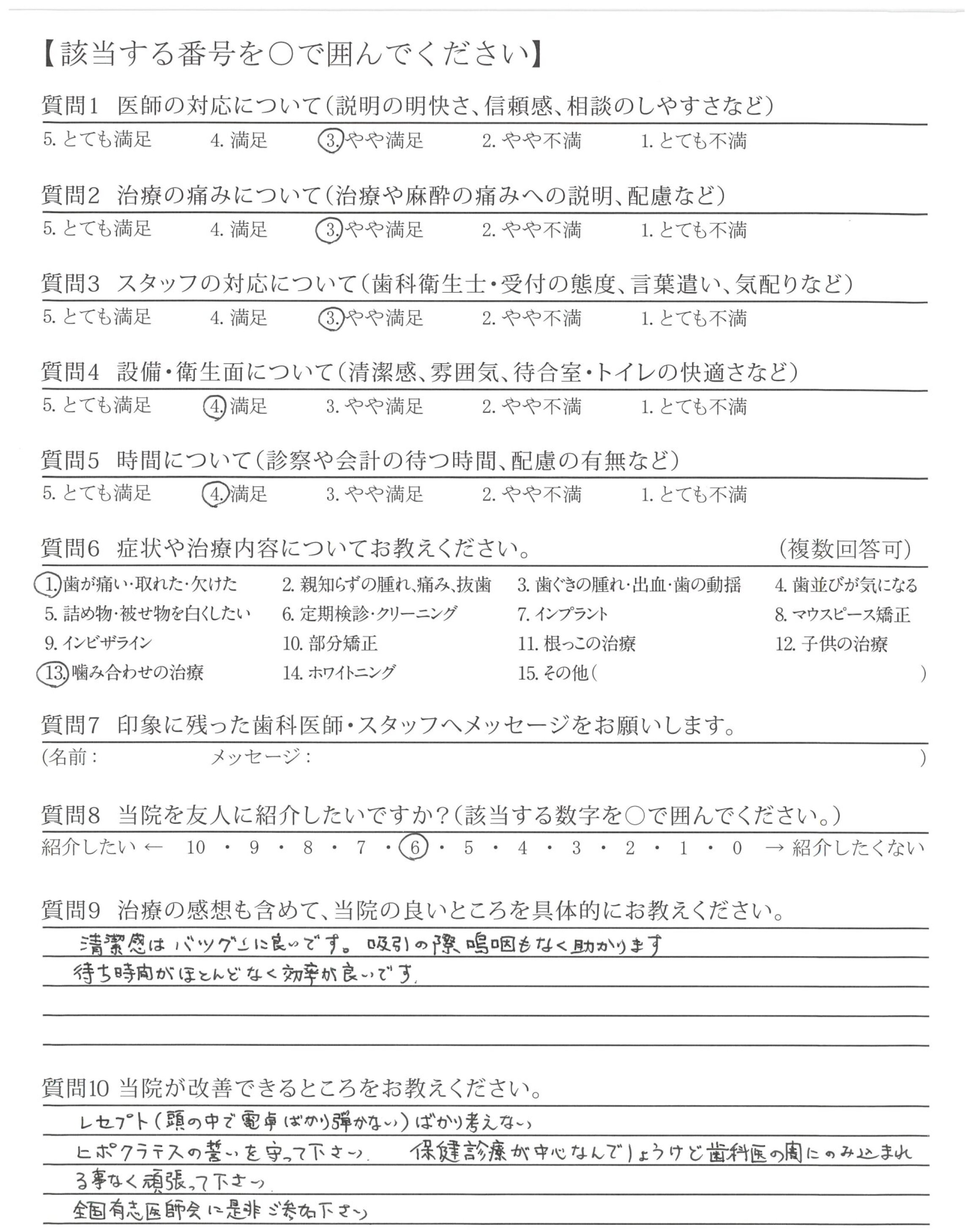 治療とても満足しています。今後とも宜しくお願い致します。