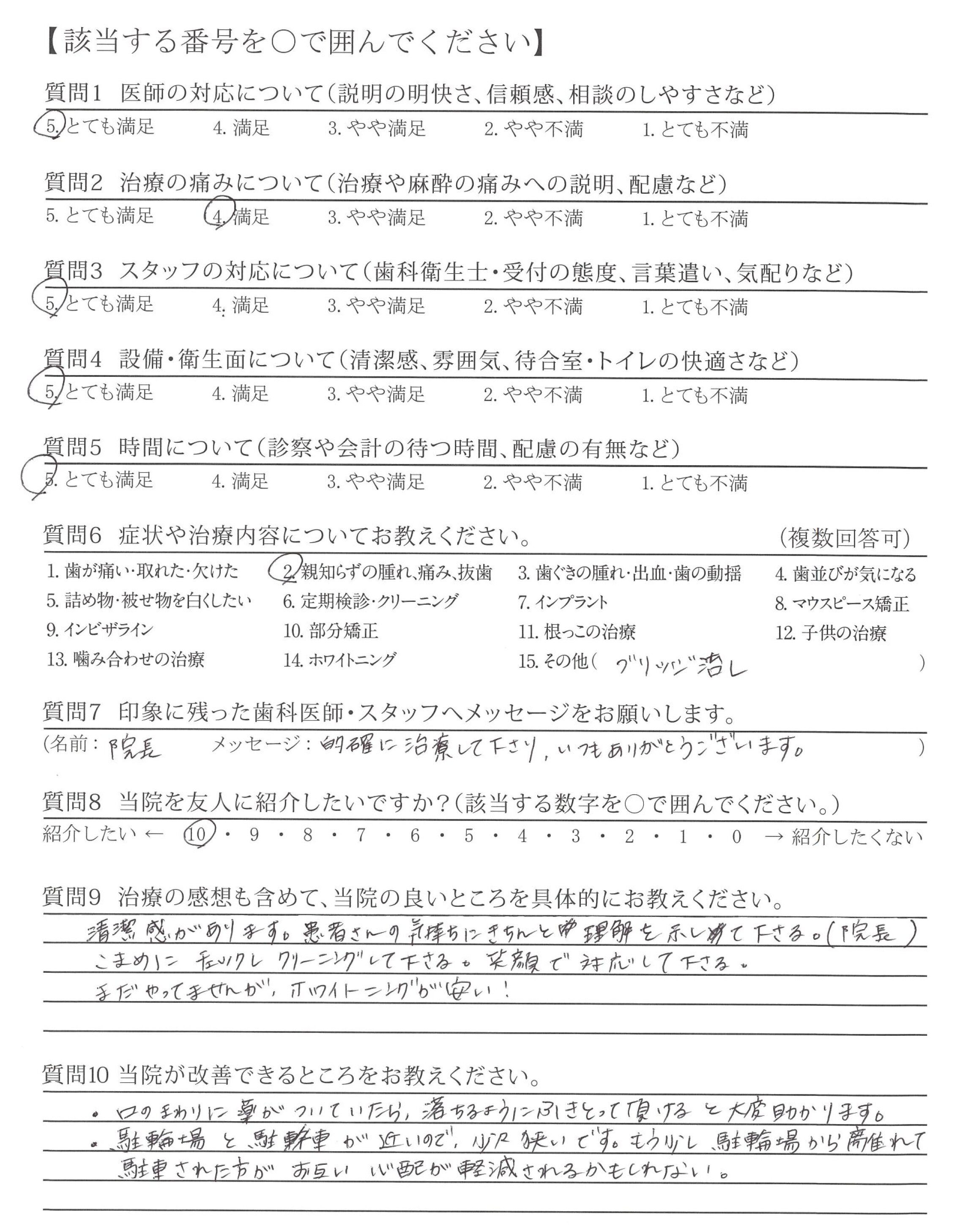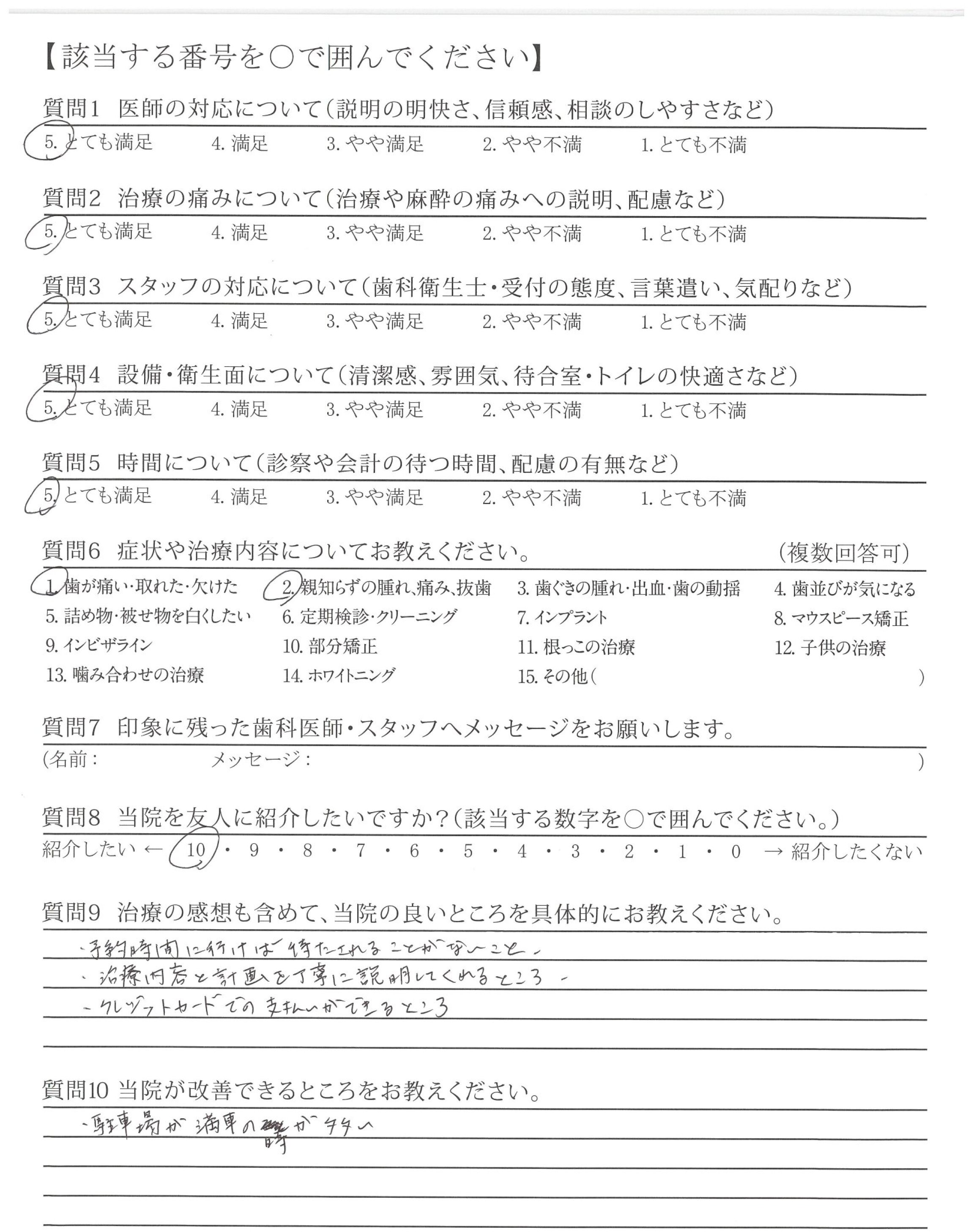 抜き終わった後もきちんと対応してくださり、好印象でした。また、ネット予約のシステムが進んでいて、予約が取りやすく、受付もスムーズで良いと思いました。
