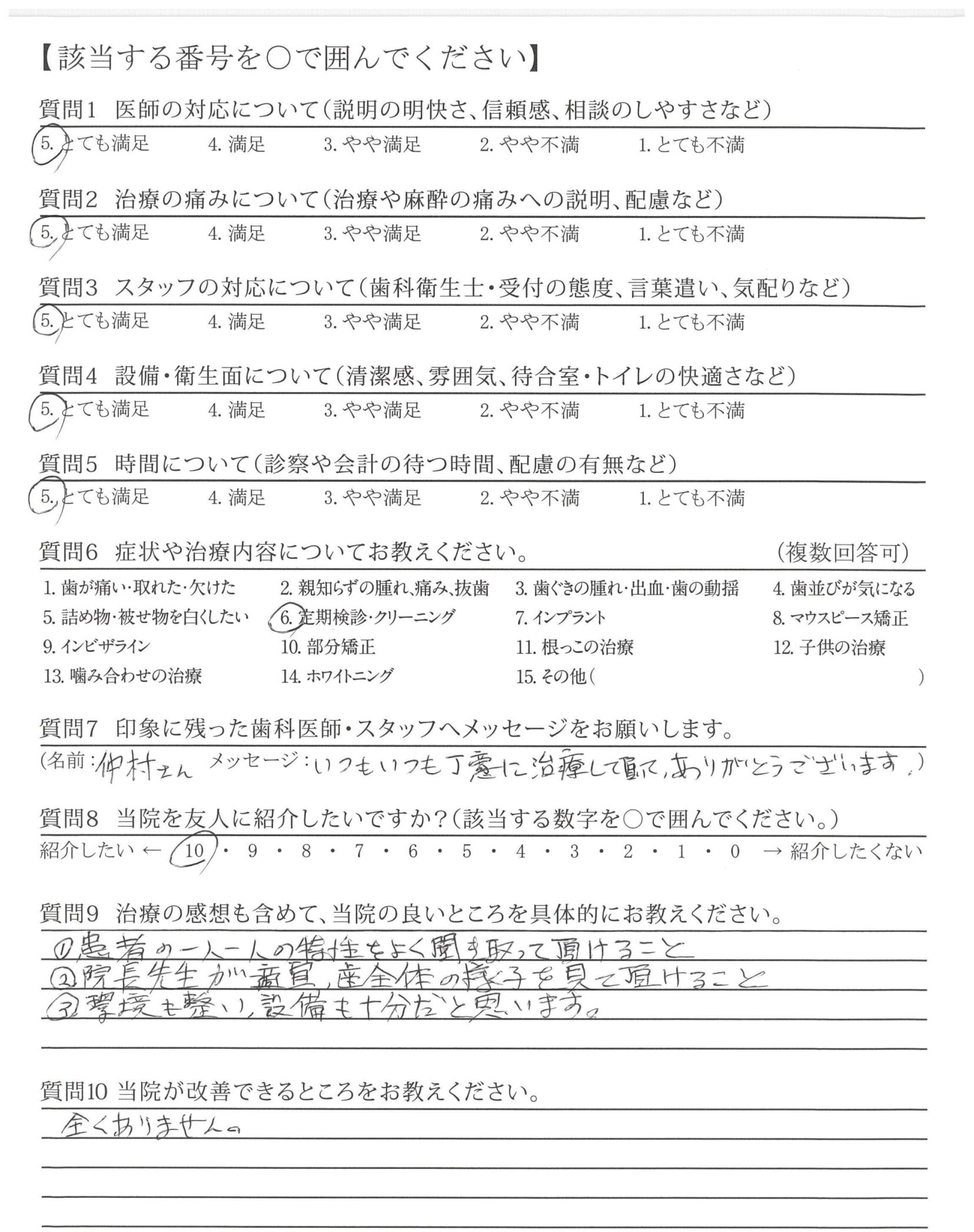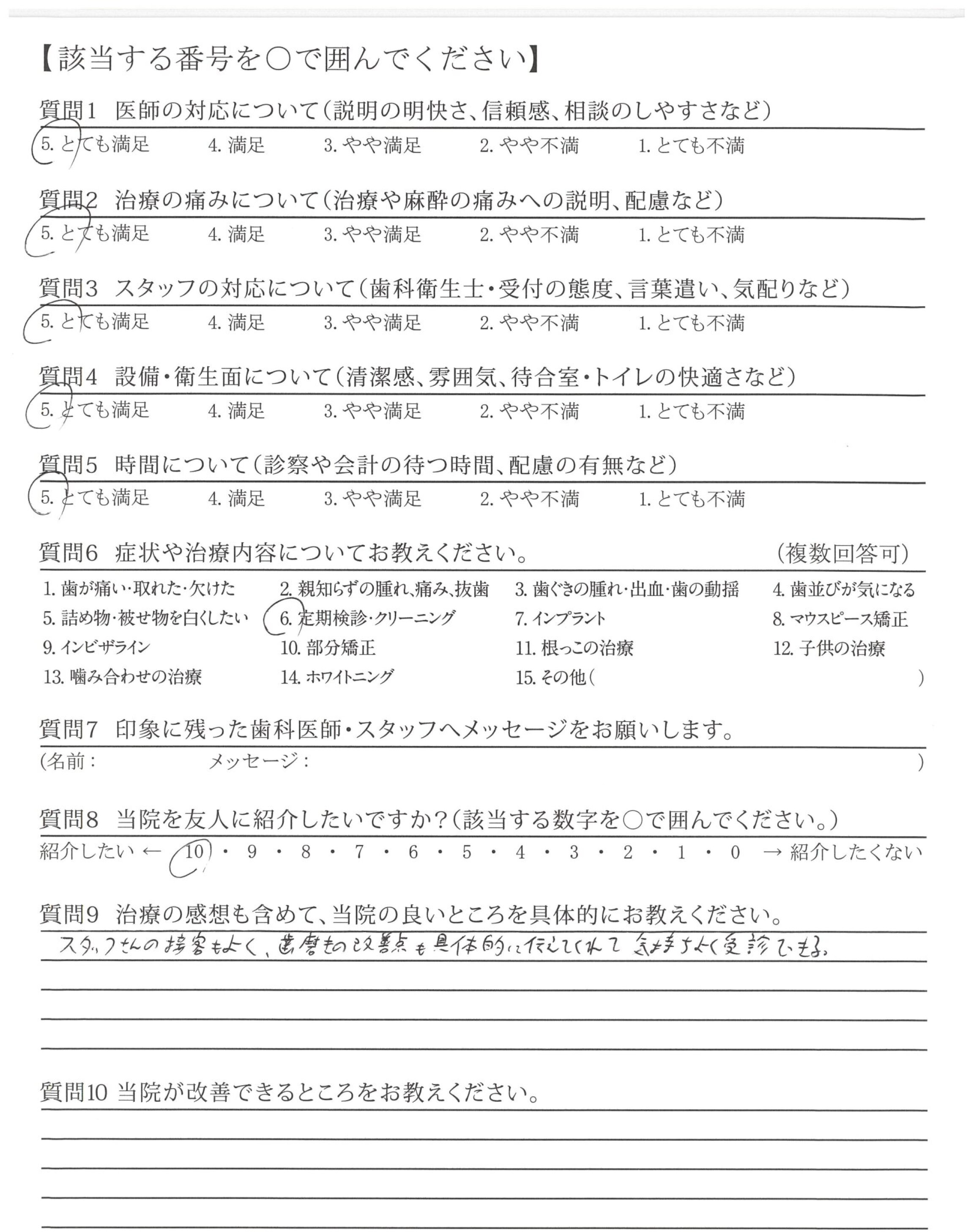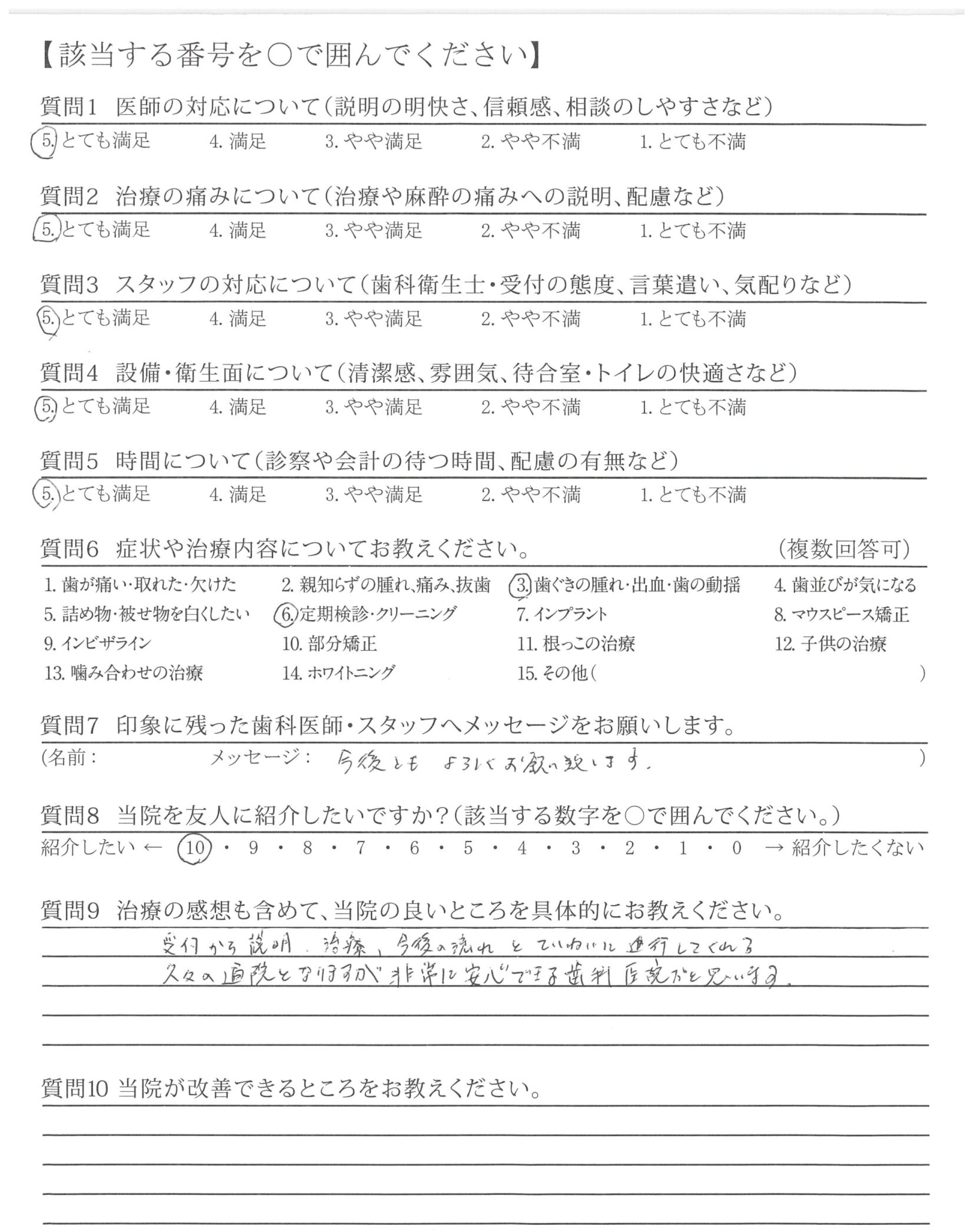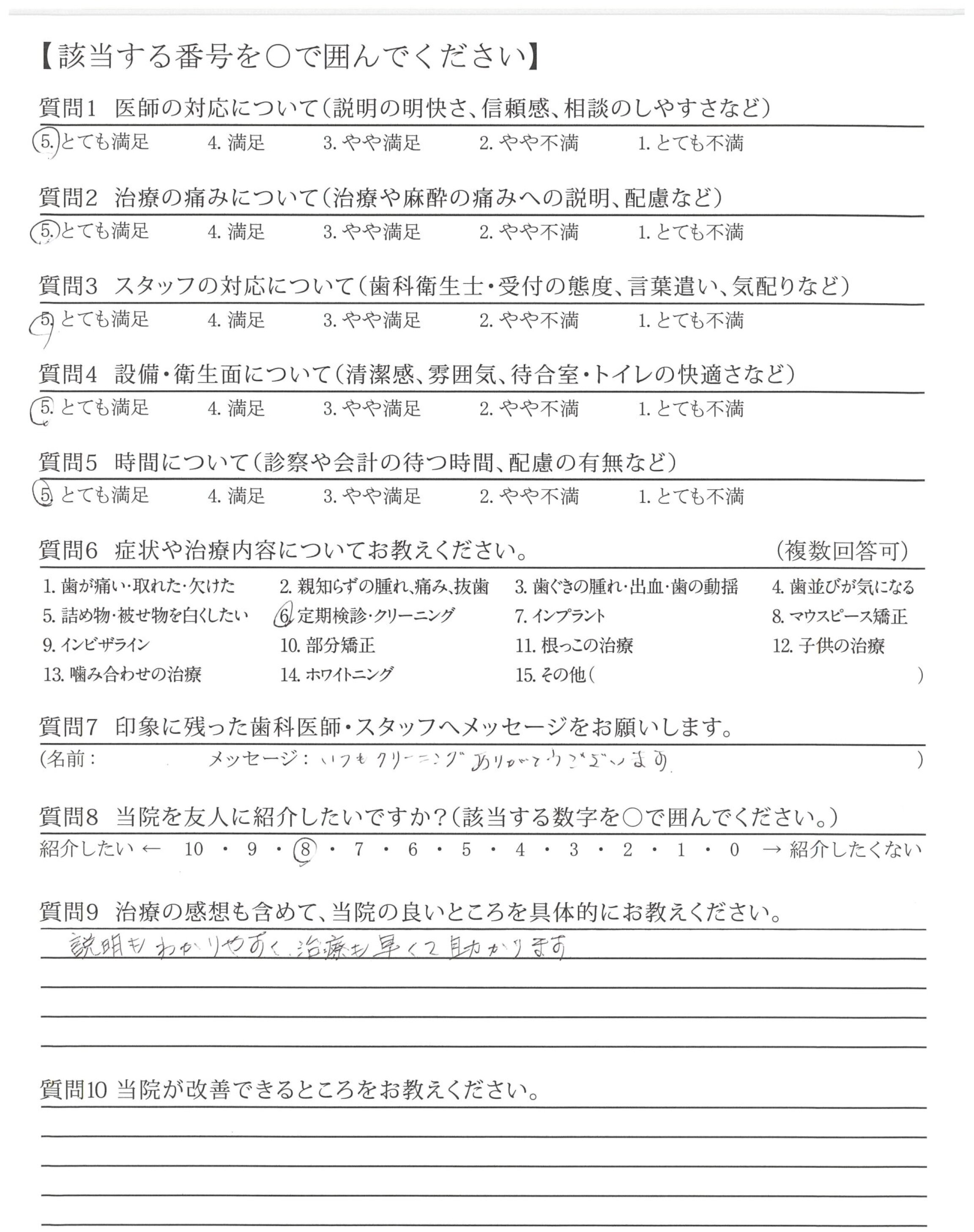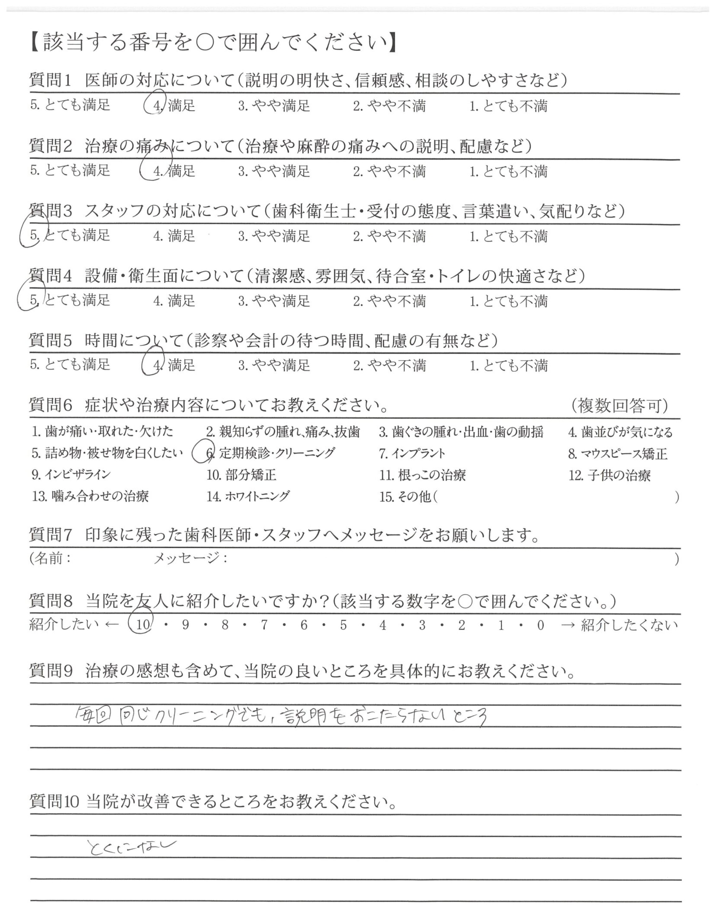 いつもお世話になってます、衛生士の先生が優しく、丁寧でとても良いと思います。