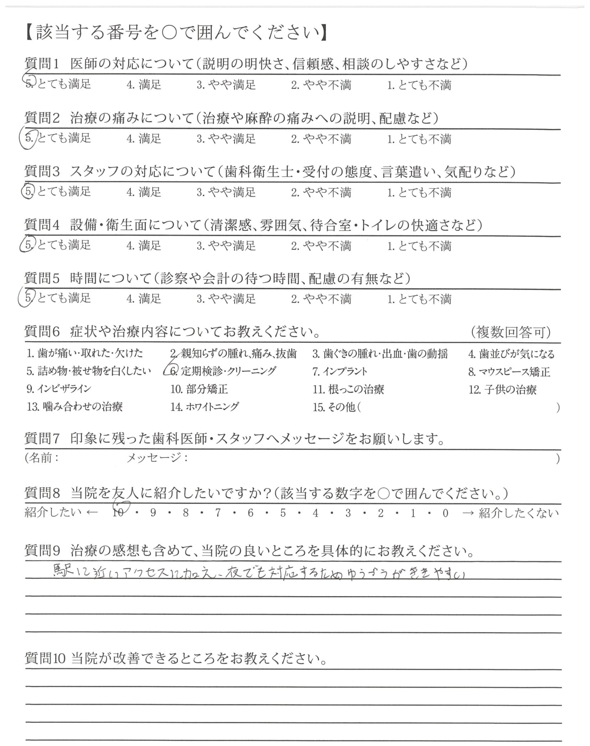 治療もすぐ行って頂き痛みがあるとすぐ止めてくれとても安心感がありました。