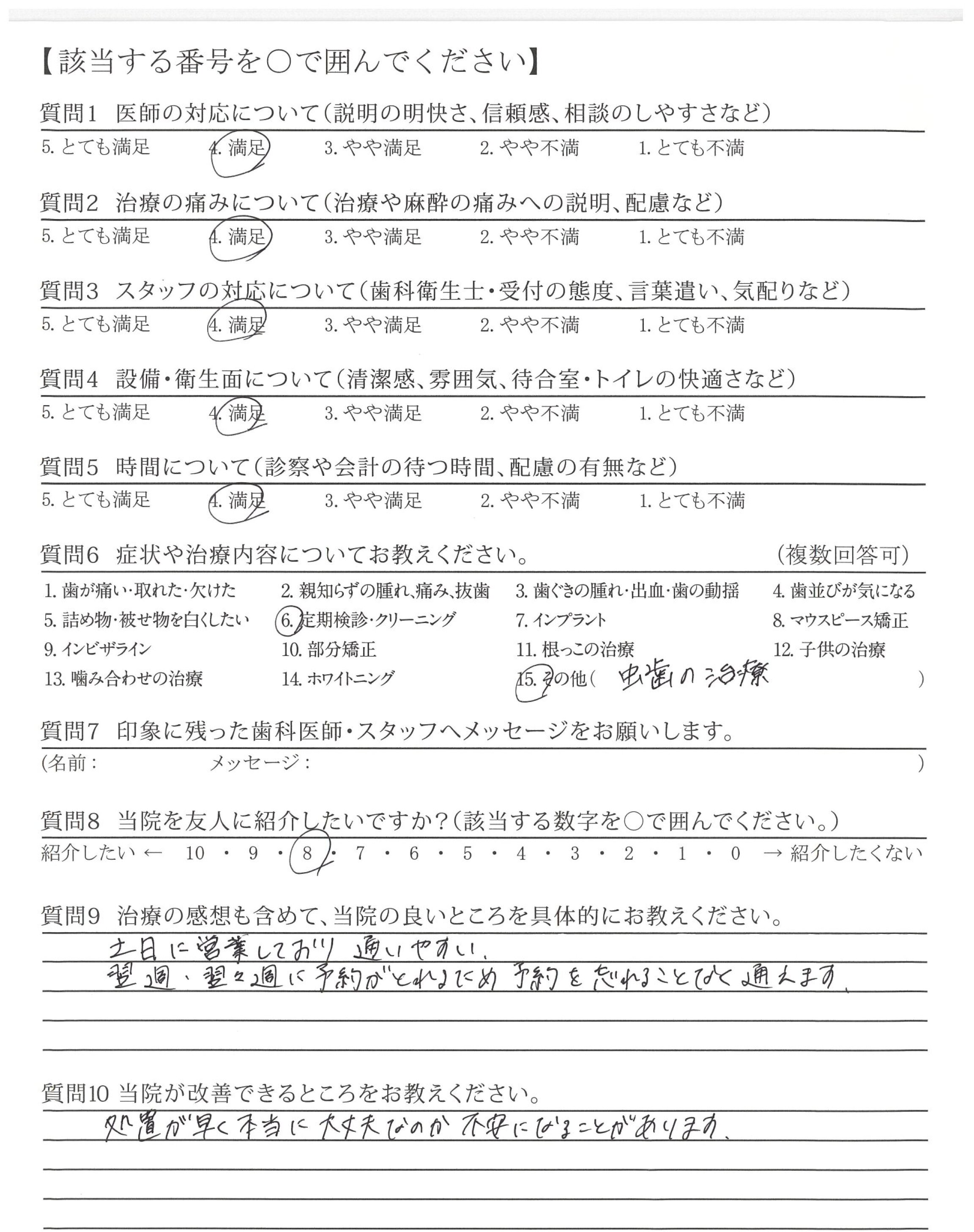 他院の治療で長い間痛みを感じていた所をすぐに治していただけてとても満足しています。