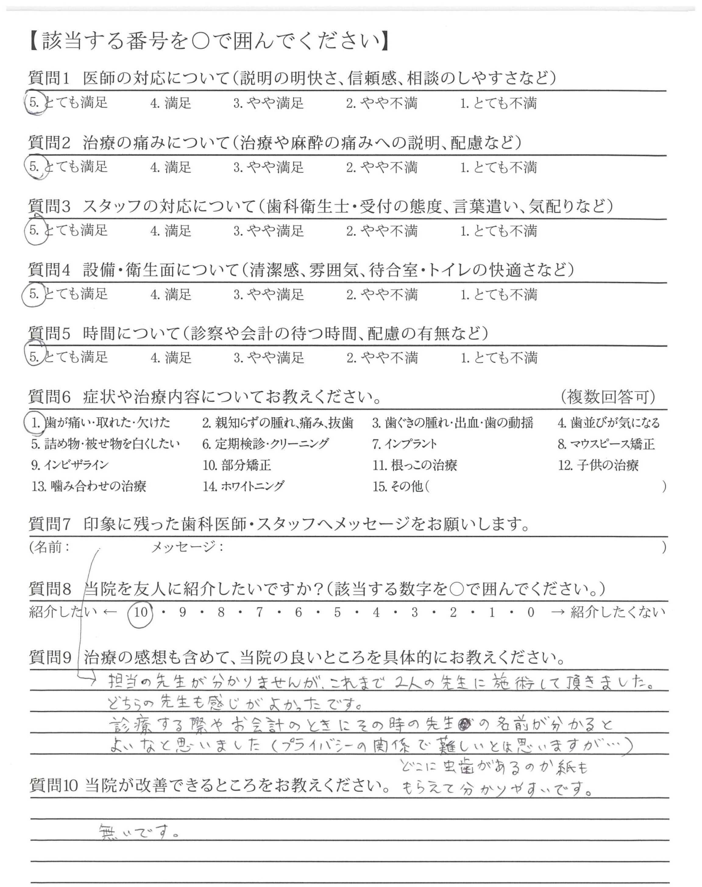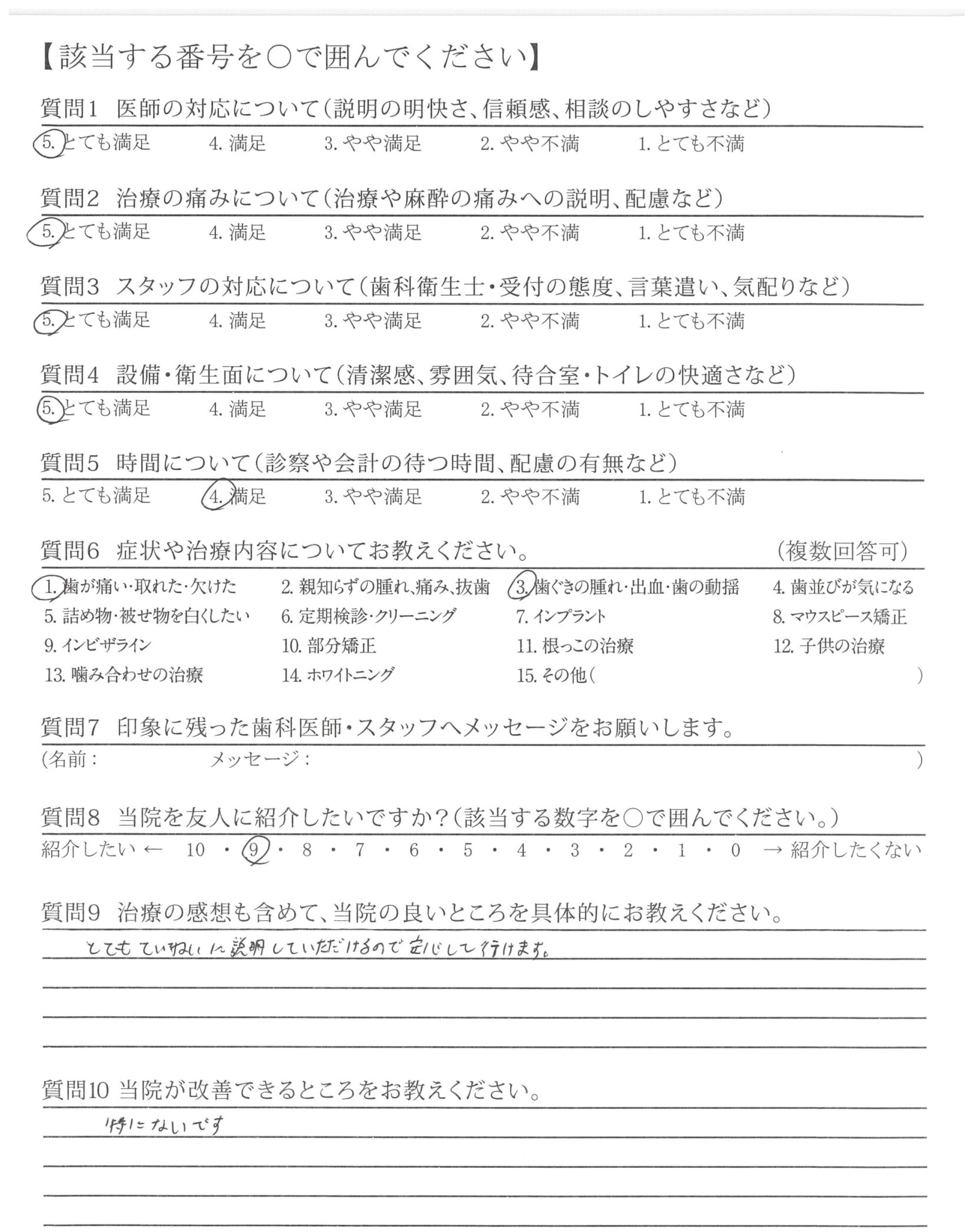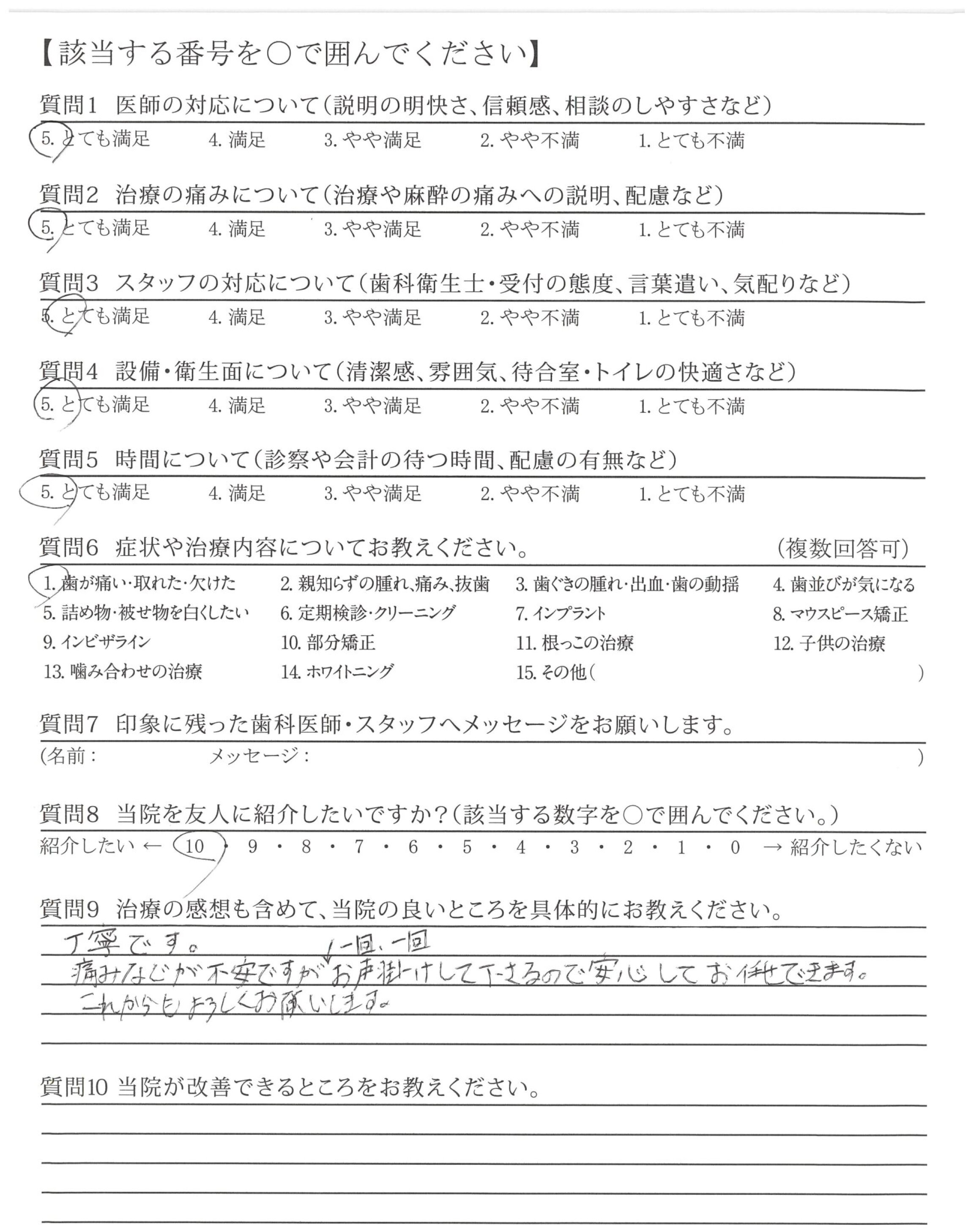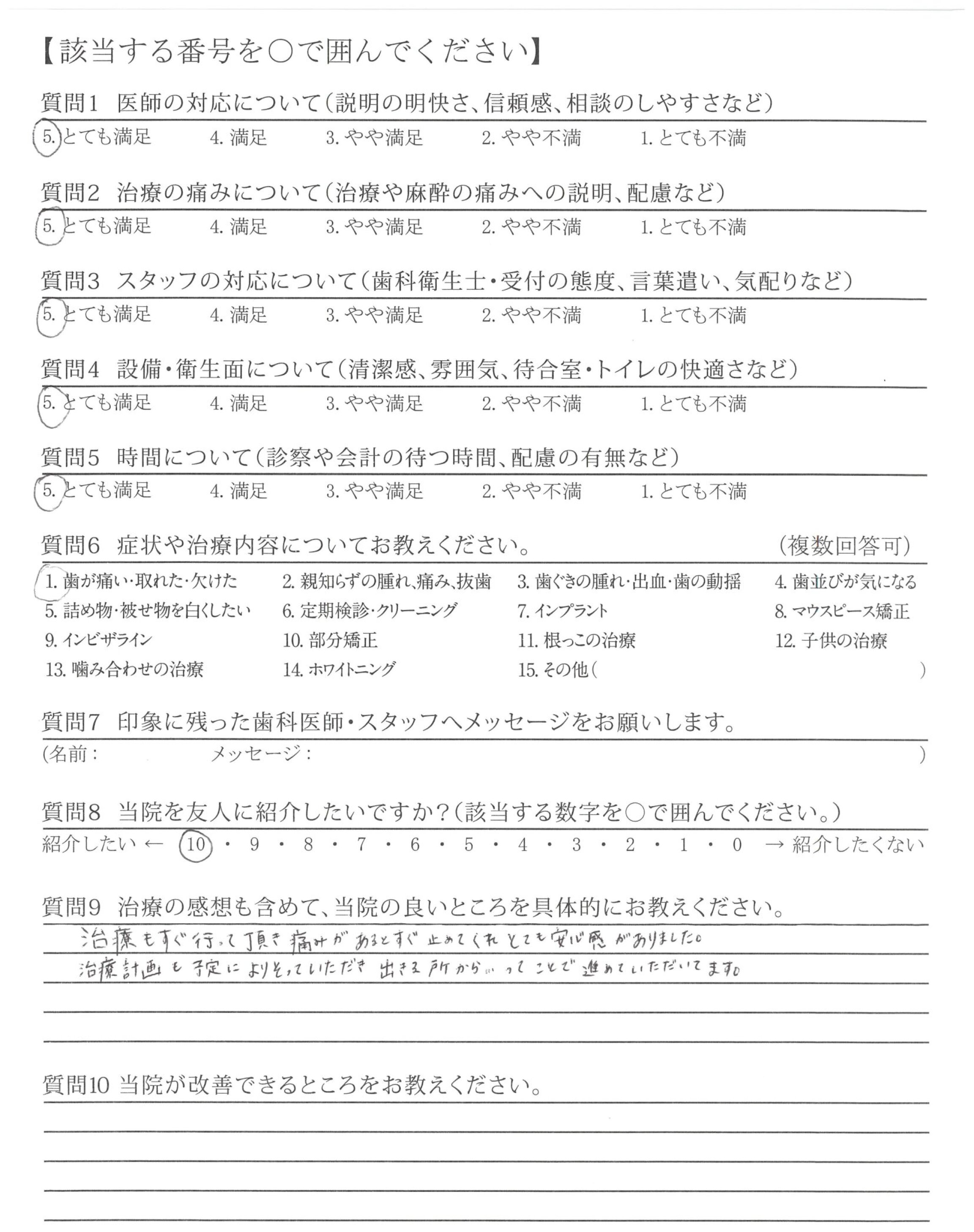 治療もすぐ行って頂き痛みがあるとすぐ止めてくれとても安心感がありました。