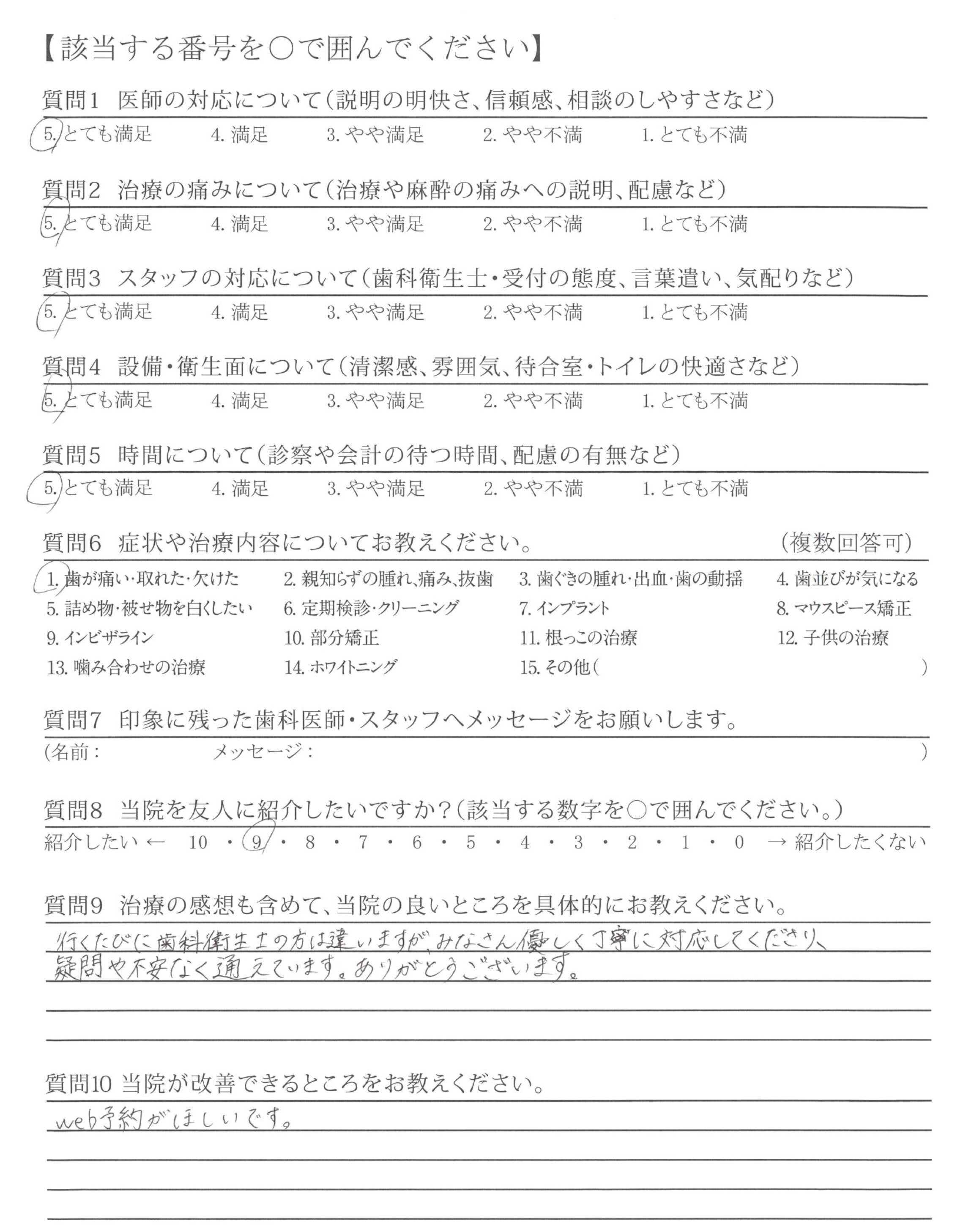 ①診さつと治りょうの両方とも対応がていねいで治りょうの痛みも少なくよかった