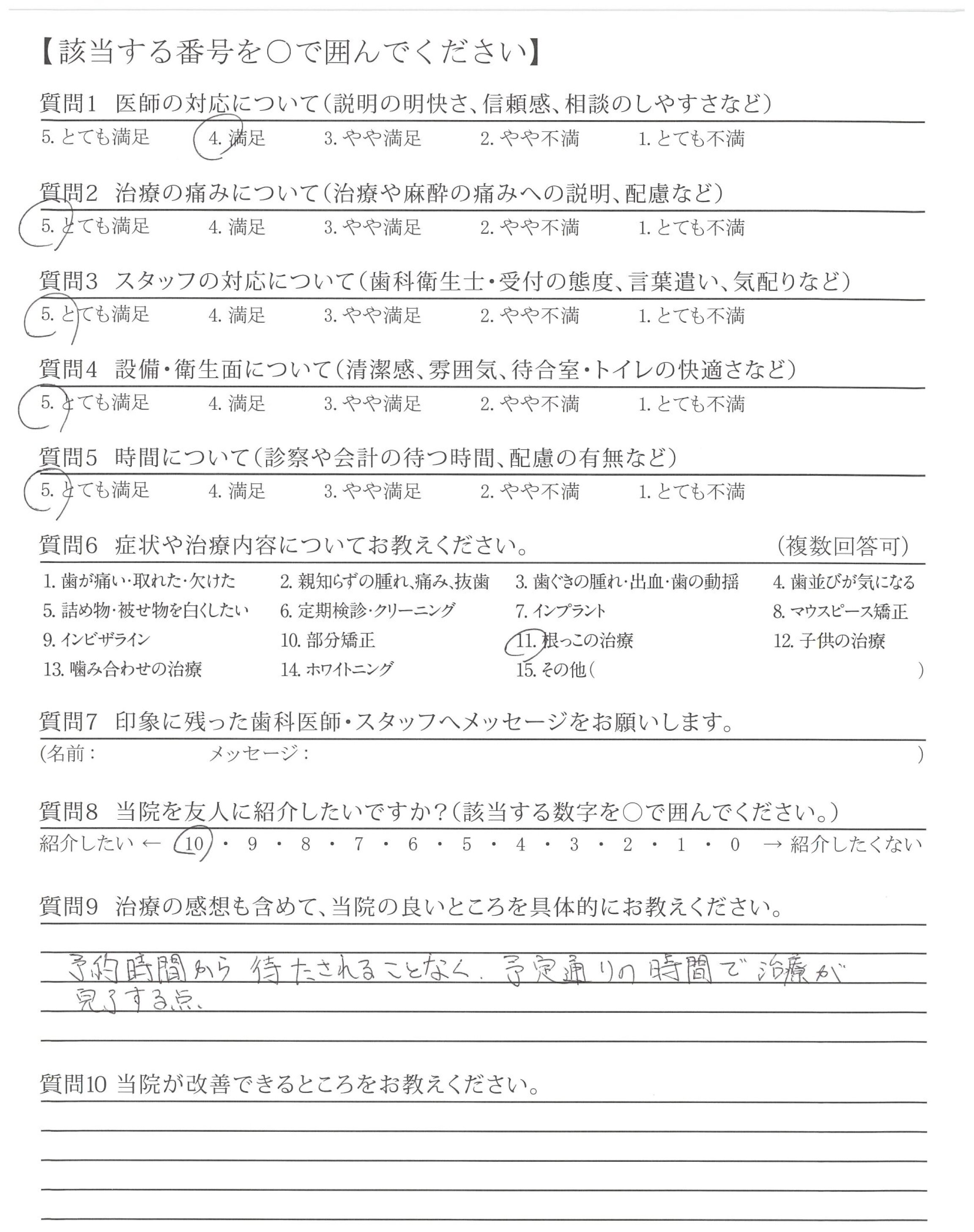 小さなことですが、処置中に、口や首のところへ水がはねたり口元にタオルをのせる時など、少しざつに扱われているなと感じた。(ほんの少しです)