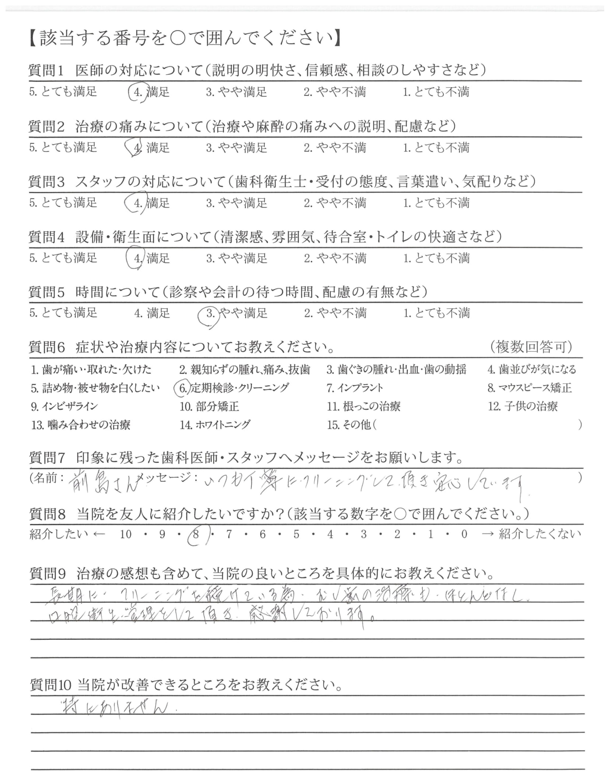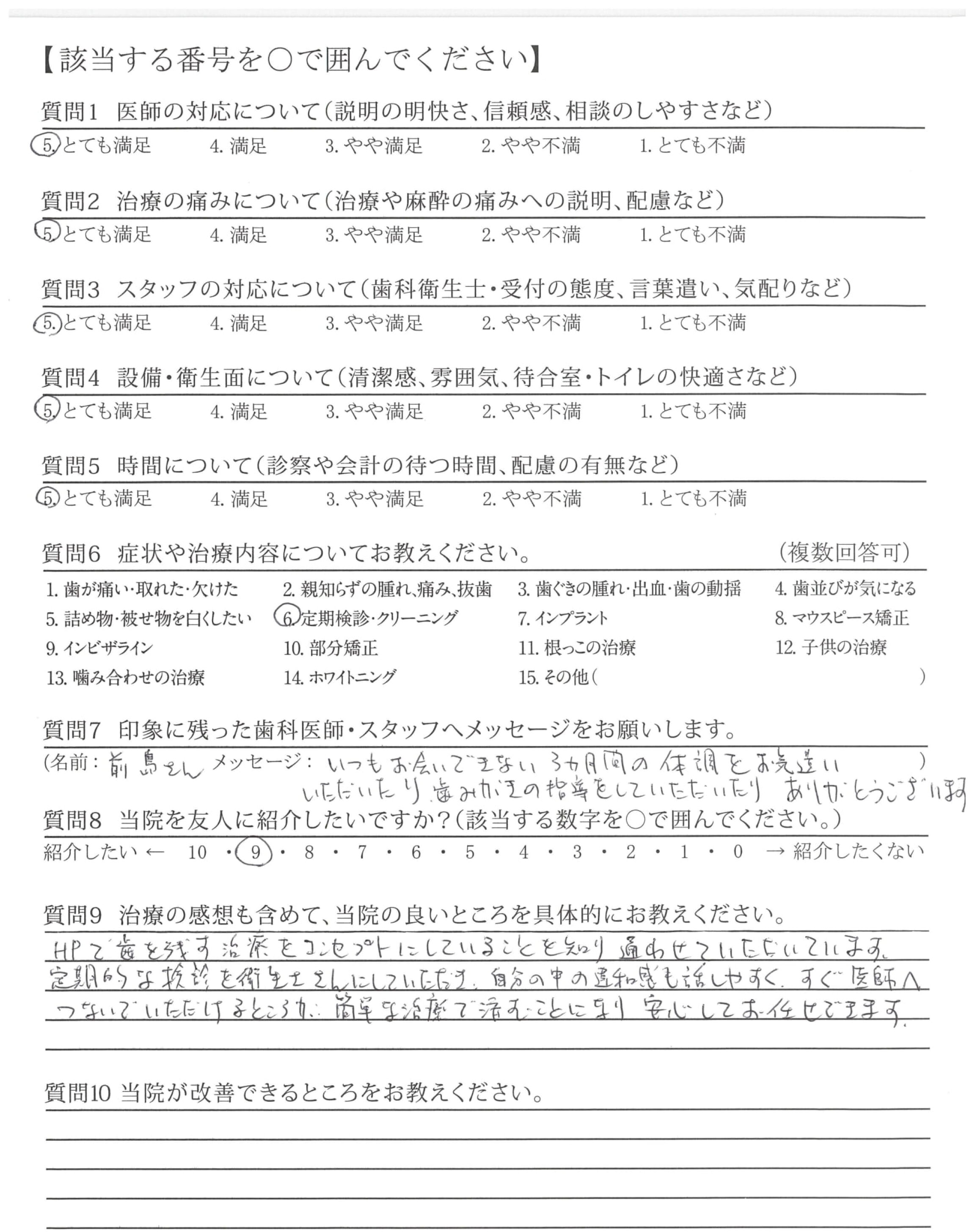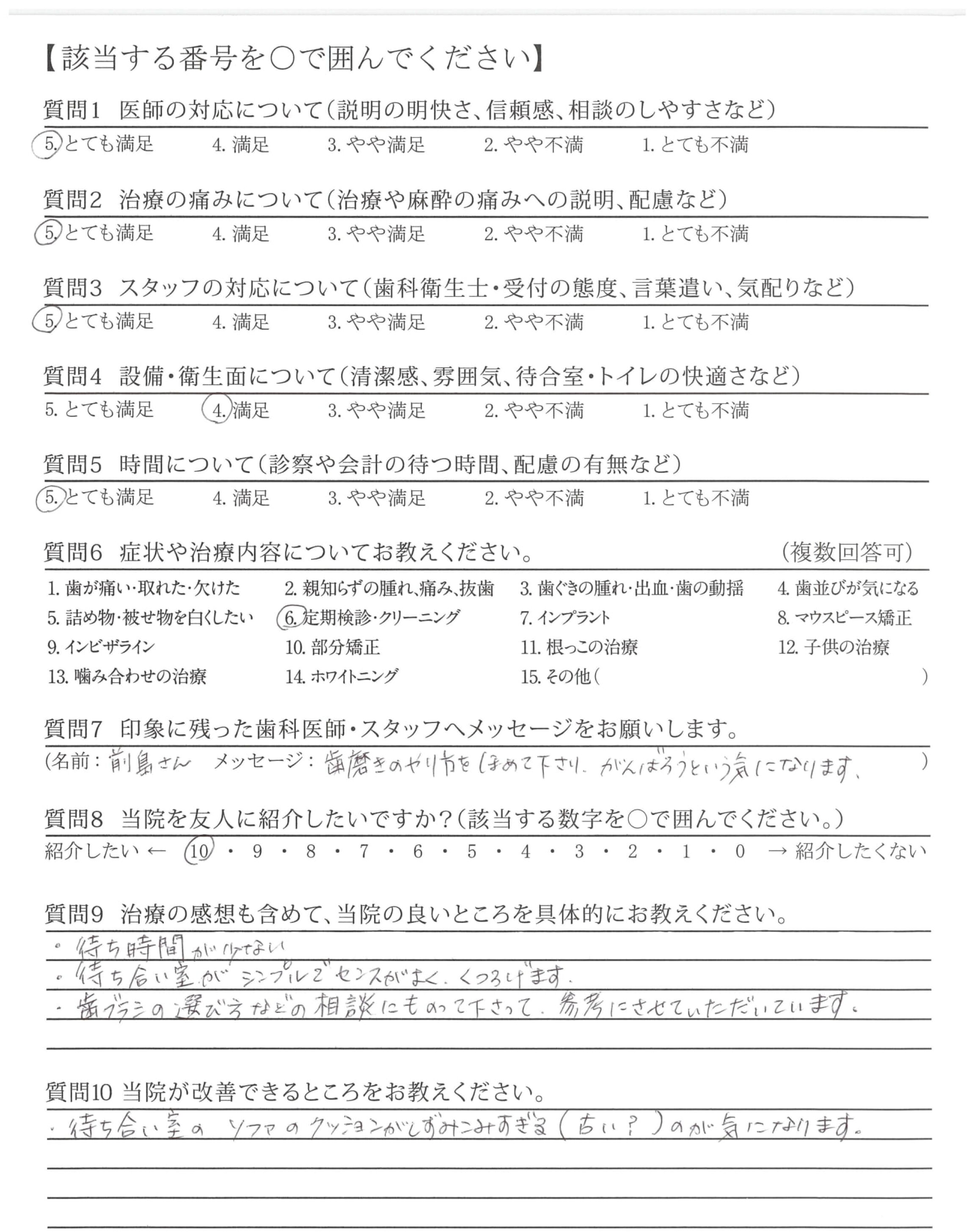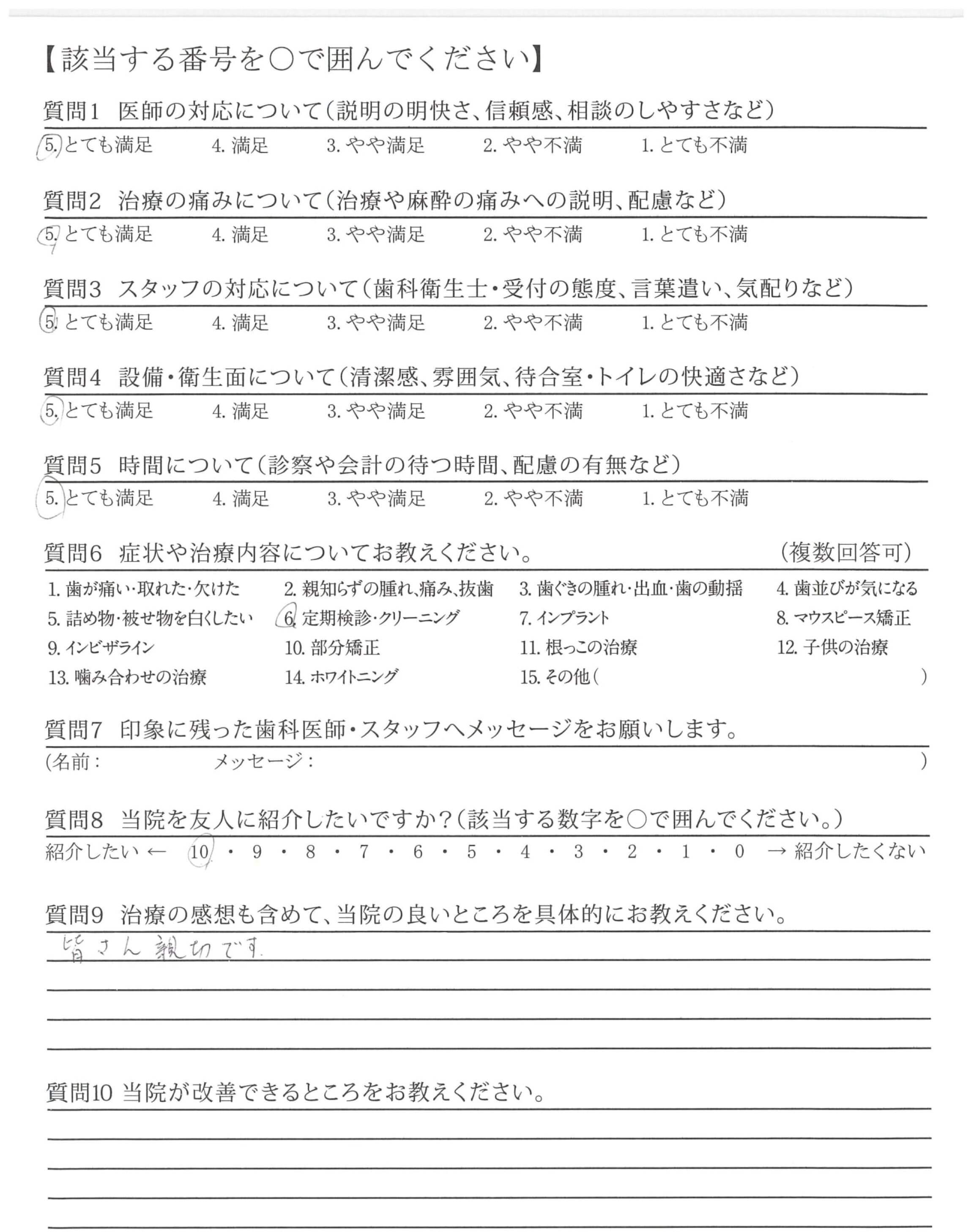 いつも丁寧な歯科クリーニングをしていただきありがとうございます