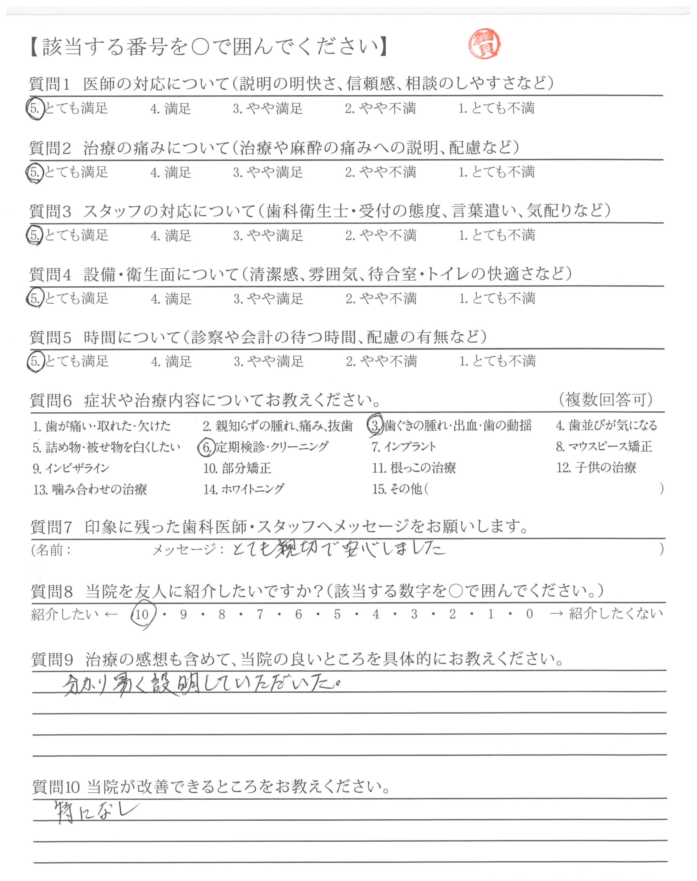 ・事前の予備検査の内容も、書面で提出していただき安心して通院出来る点。
