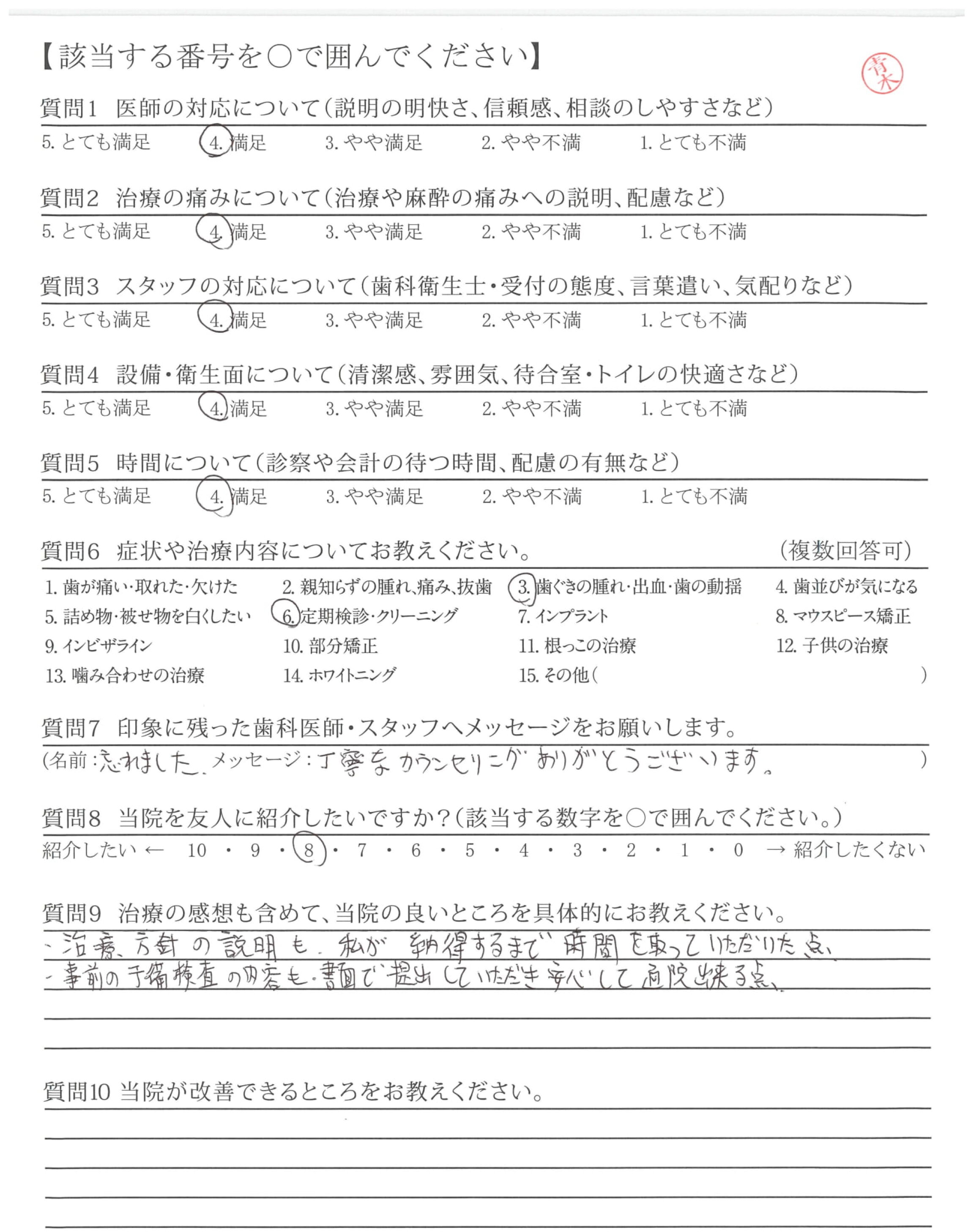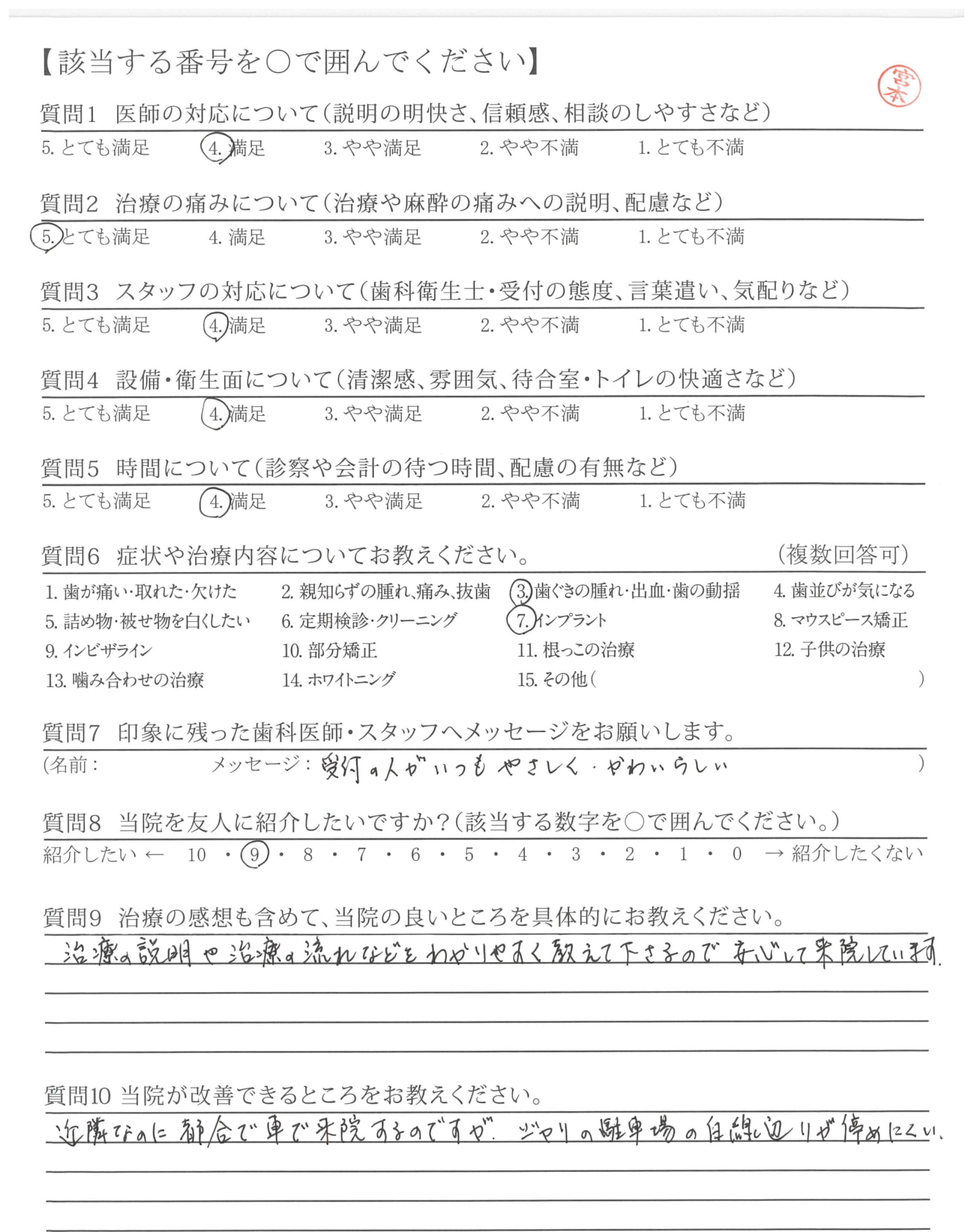 | 歯科医師の対応 | ![]() ![]() ![]() ![]() 4.51 |