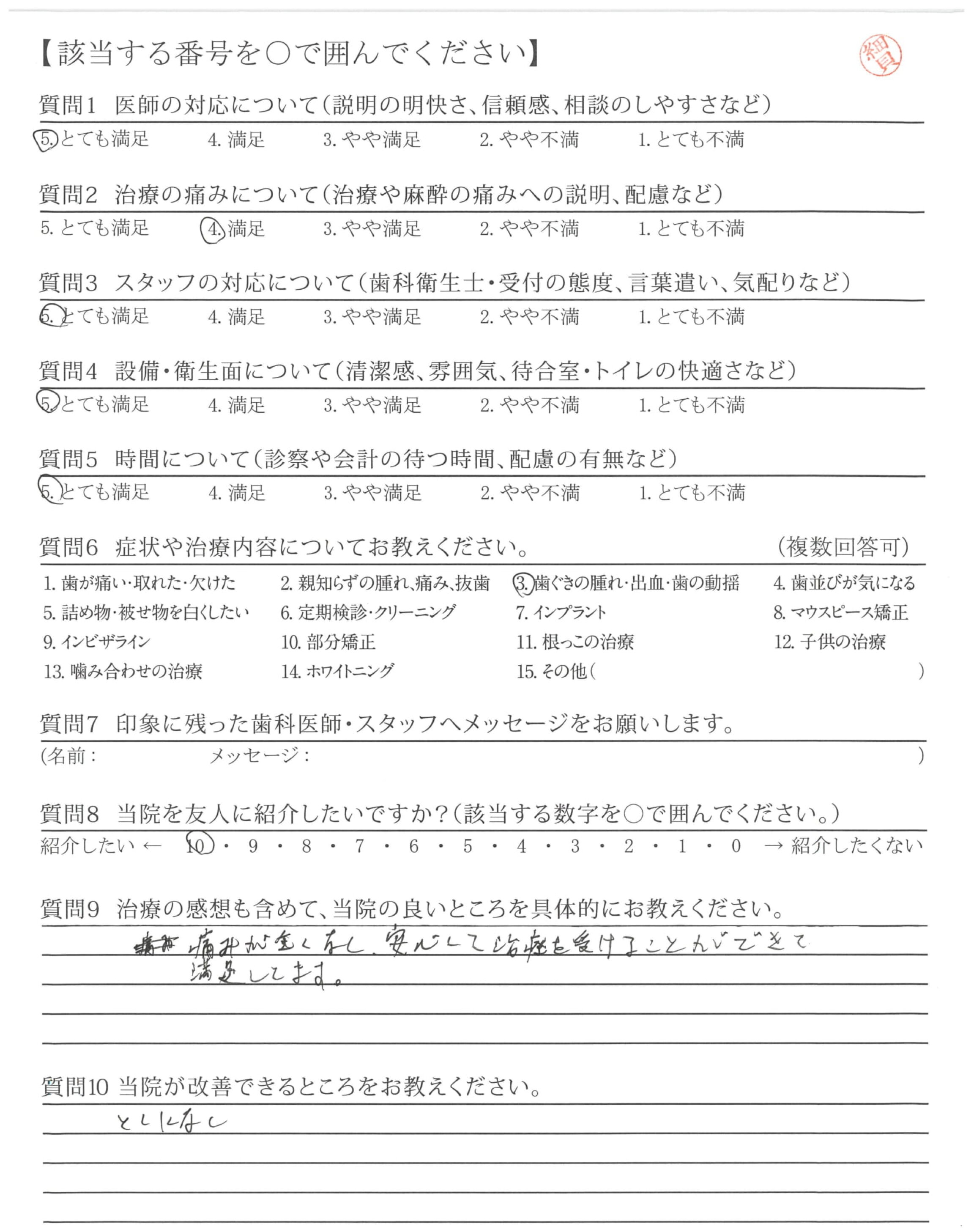 痛みが全くなく、安心して治療を受けることができて満足してます。