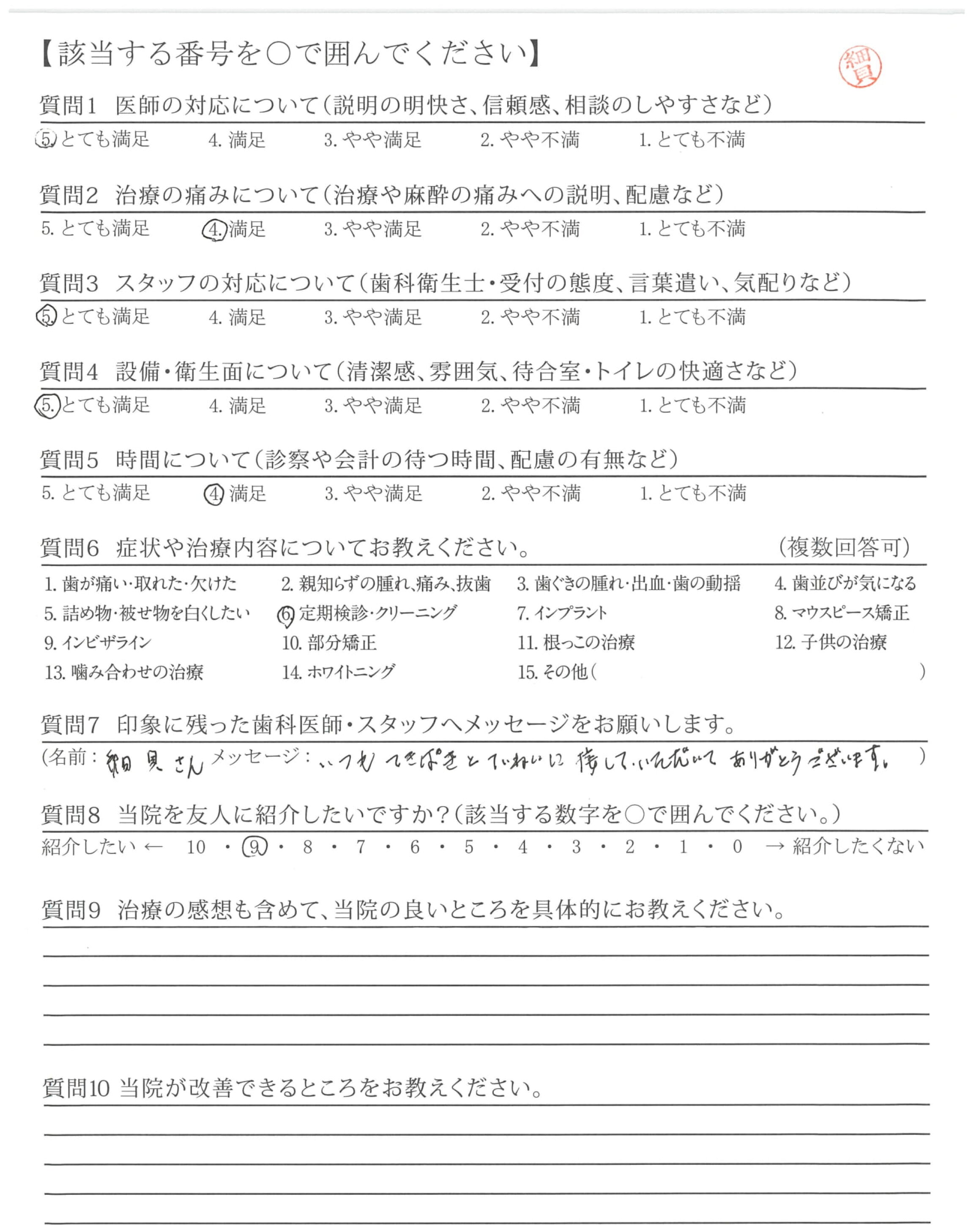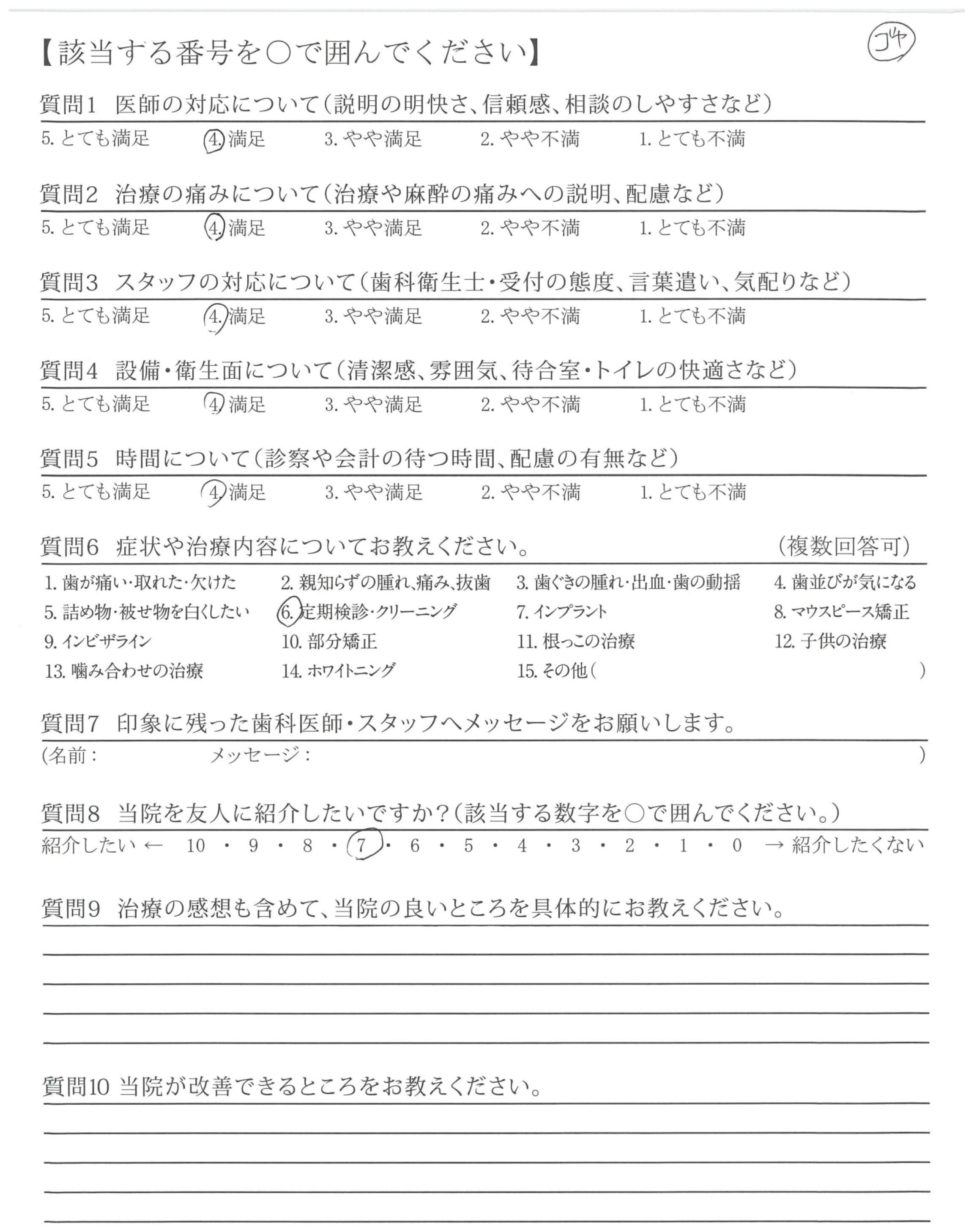 初めは不安がたくさんでしたがここの歯医者を選びよかったと思います。ありがとうございました。